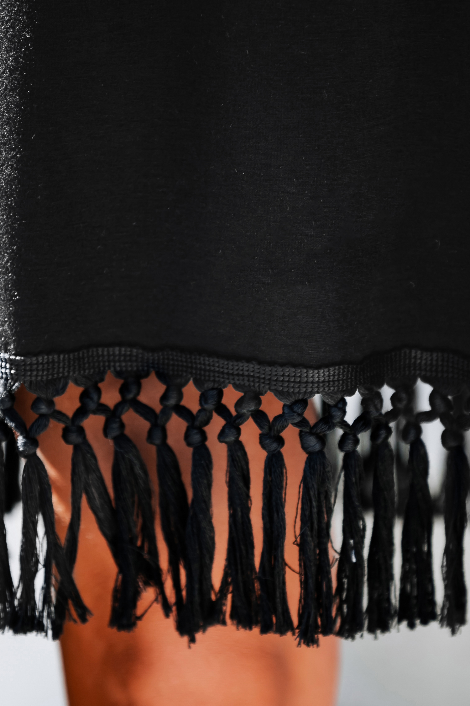 Renditi splendida sulla spiaggia con questo abito midi in maglia con scollo rotondo, spalline, nappe e vestibilità comoda.