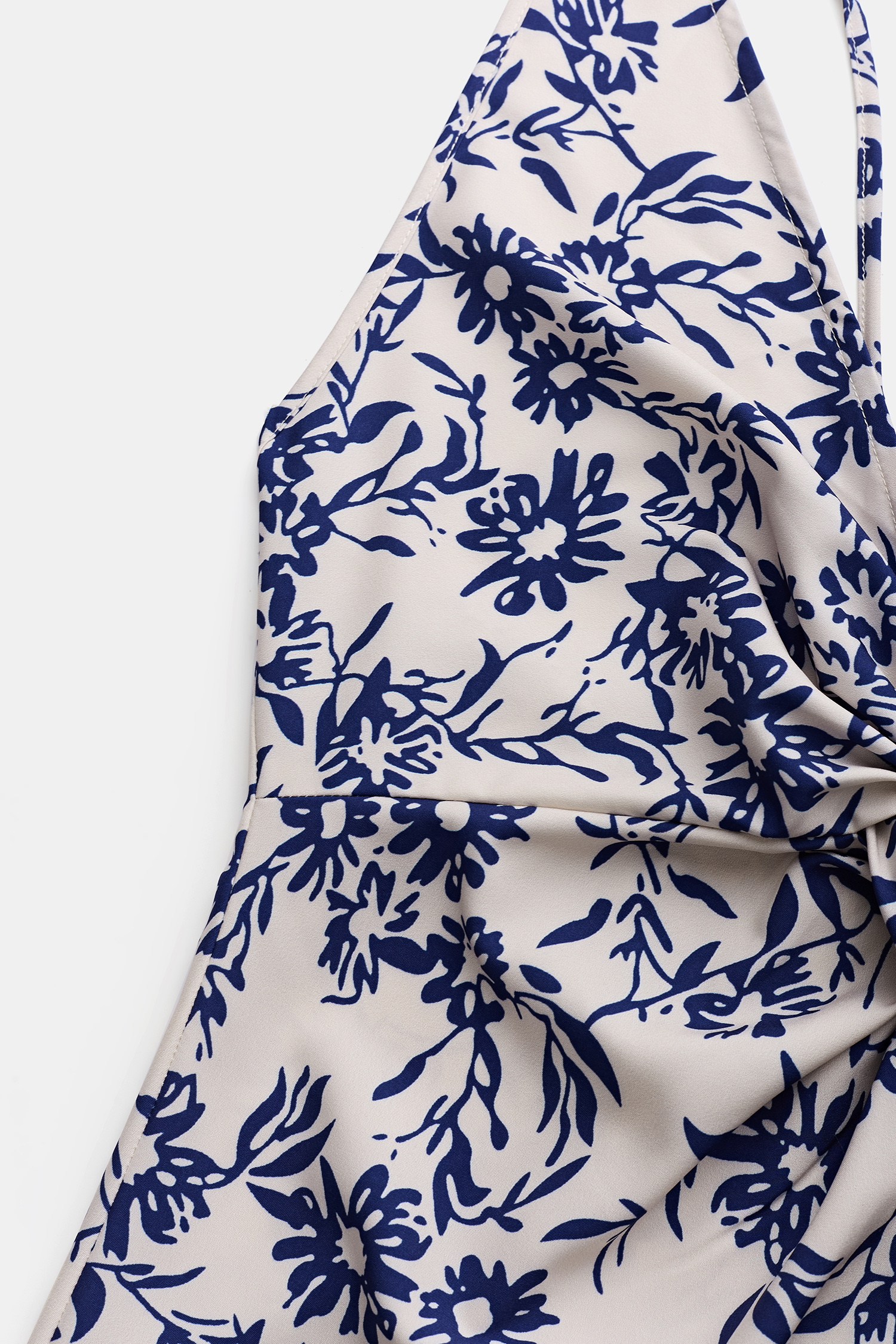 Concediti l'incantevole bellezza dell'abito intrecciato con stampa floreale! Con il suo accattivante motivo floreale e una scollatura allacciata attorcigliata alla moda, questo vestito irradia eleganza e grazia. Perfetto per feste in giardino o serate romantiche, unisce senza sforzo il fascino femminile con un tocco di raffinatezza.