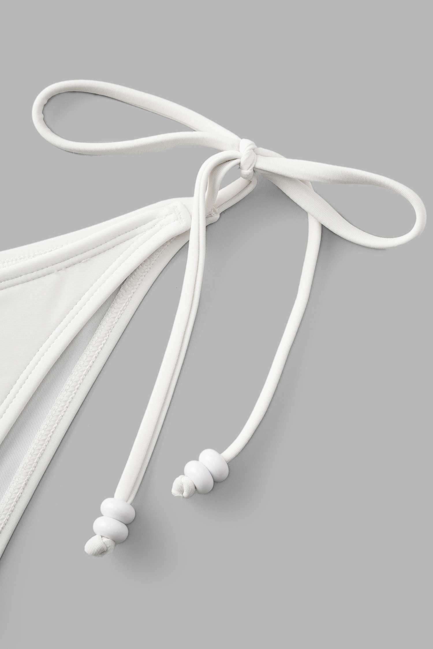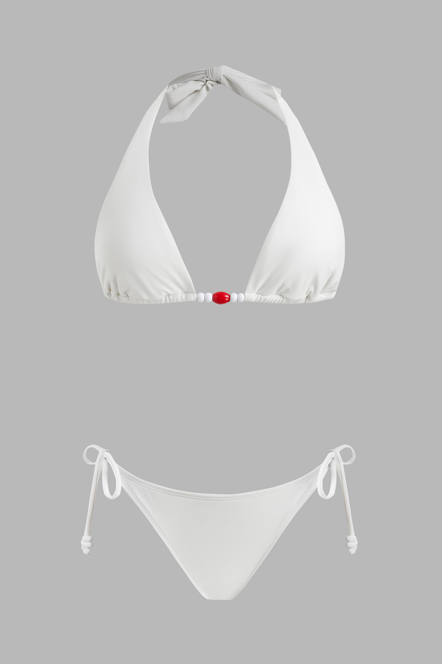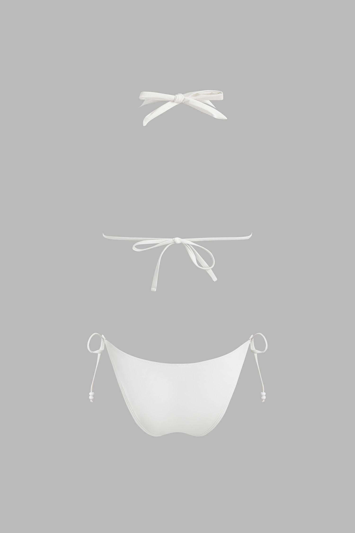 Il set bikini bianco Alabaster Waves è il tuo capo preferito per i momenti di sole! Con spalline a collo alto e chiusura posteriore con lacci, questo bikini assicura una vestibilità comoda e lusinghiera. La vita bassa, la gamba extra alta e la copertura extra sfacciata del sedere completano questo look audace e giocoso.