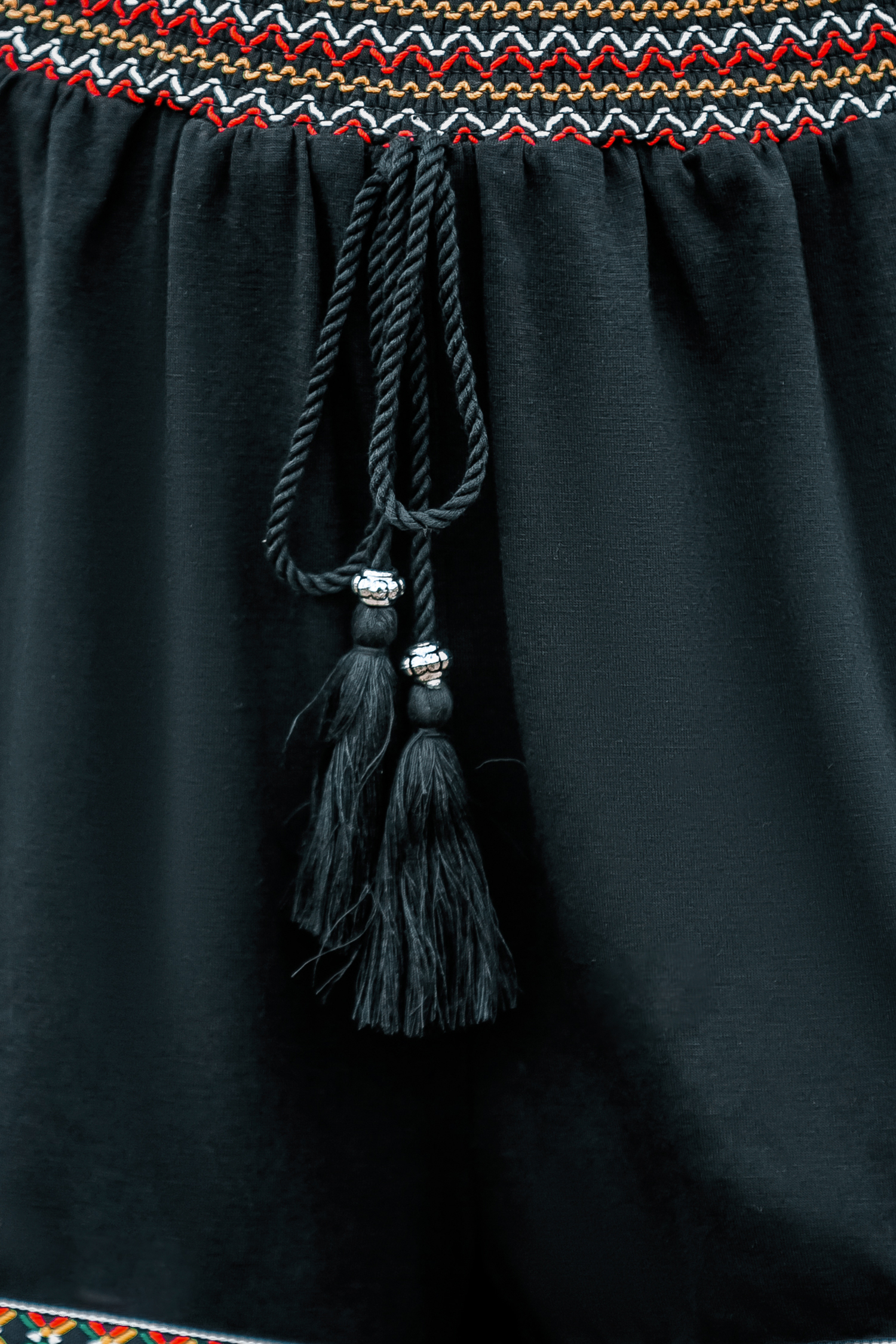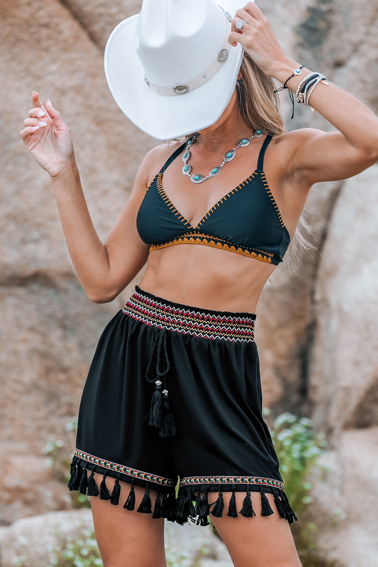 Pantaloncini a gamba dritta con elastico in vita nero con nappa