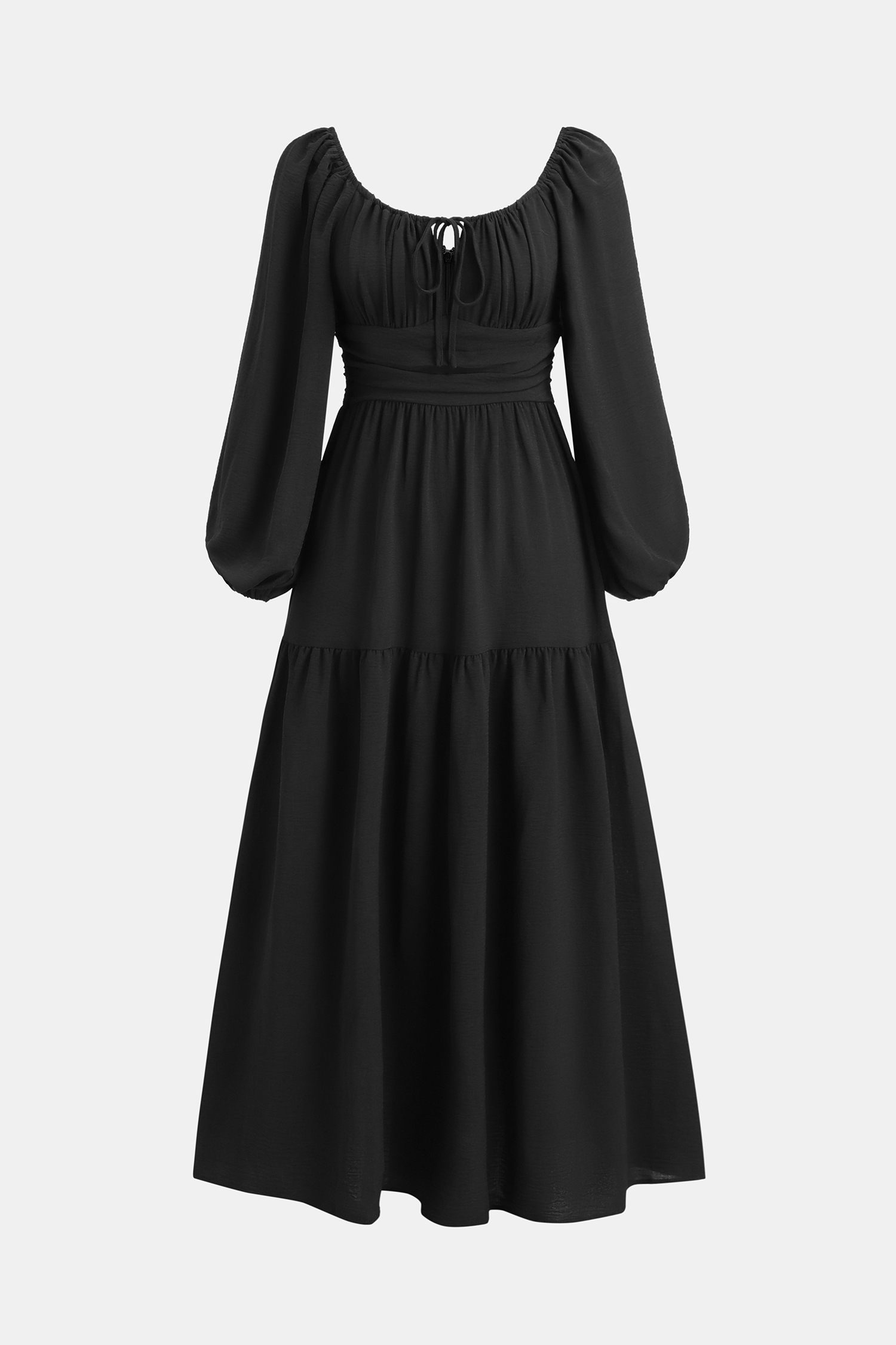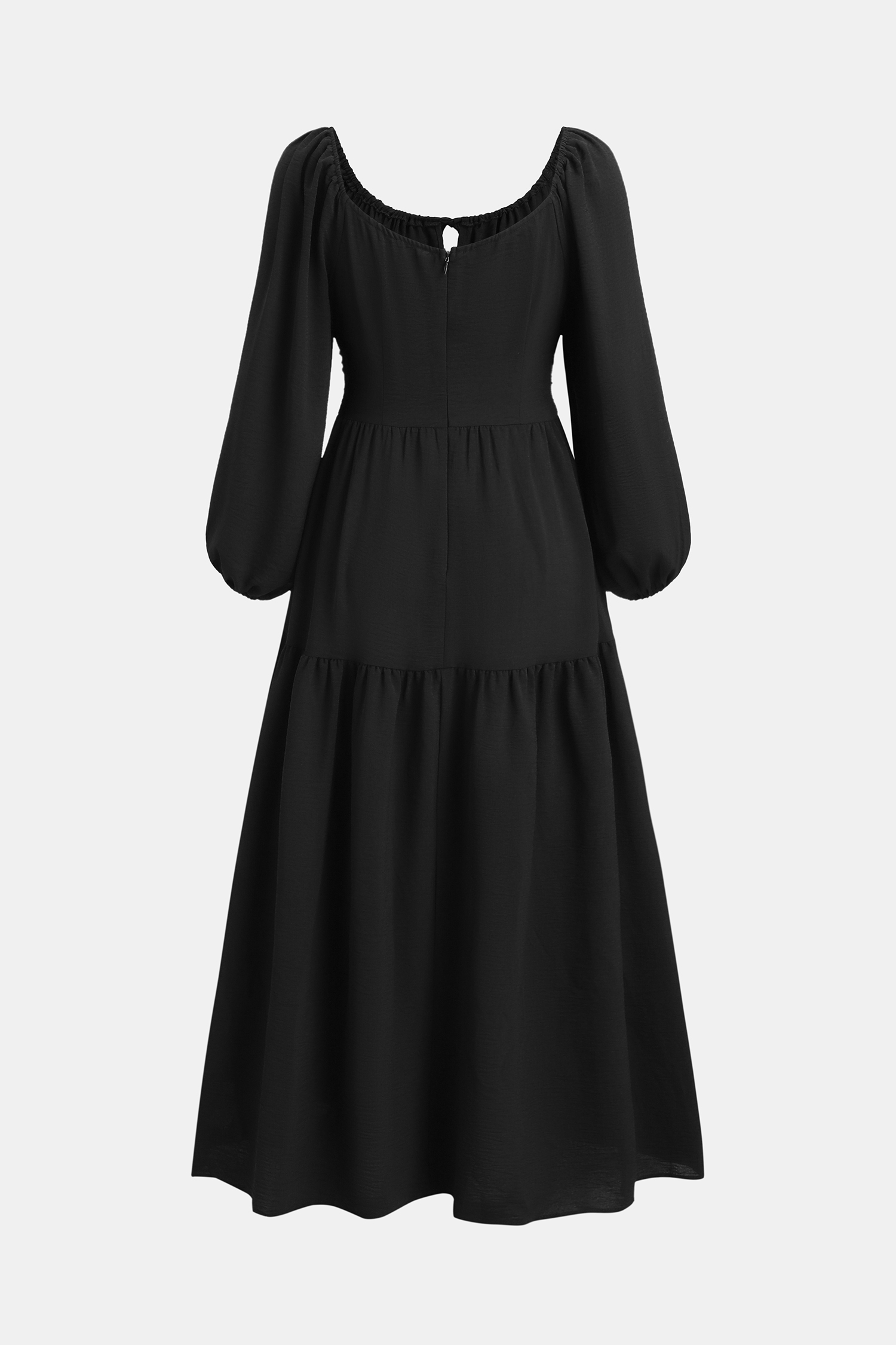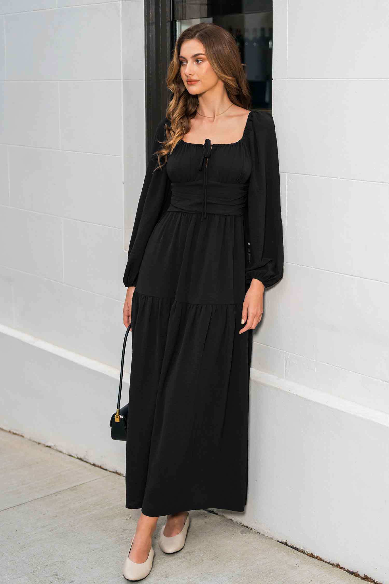 Abito lungo nero a maniche lunghe con scollo quadrato