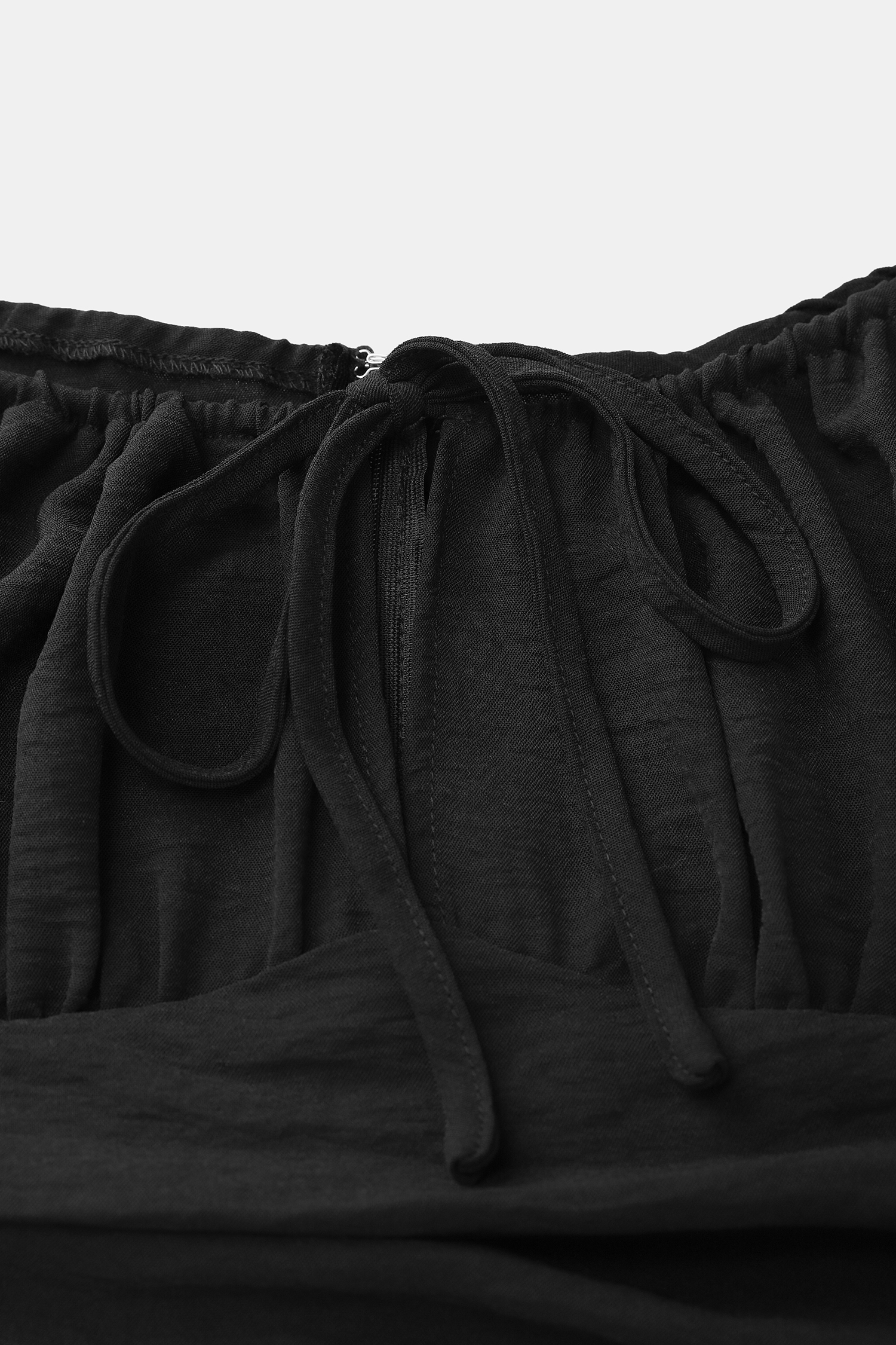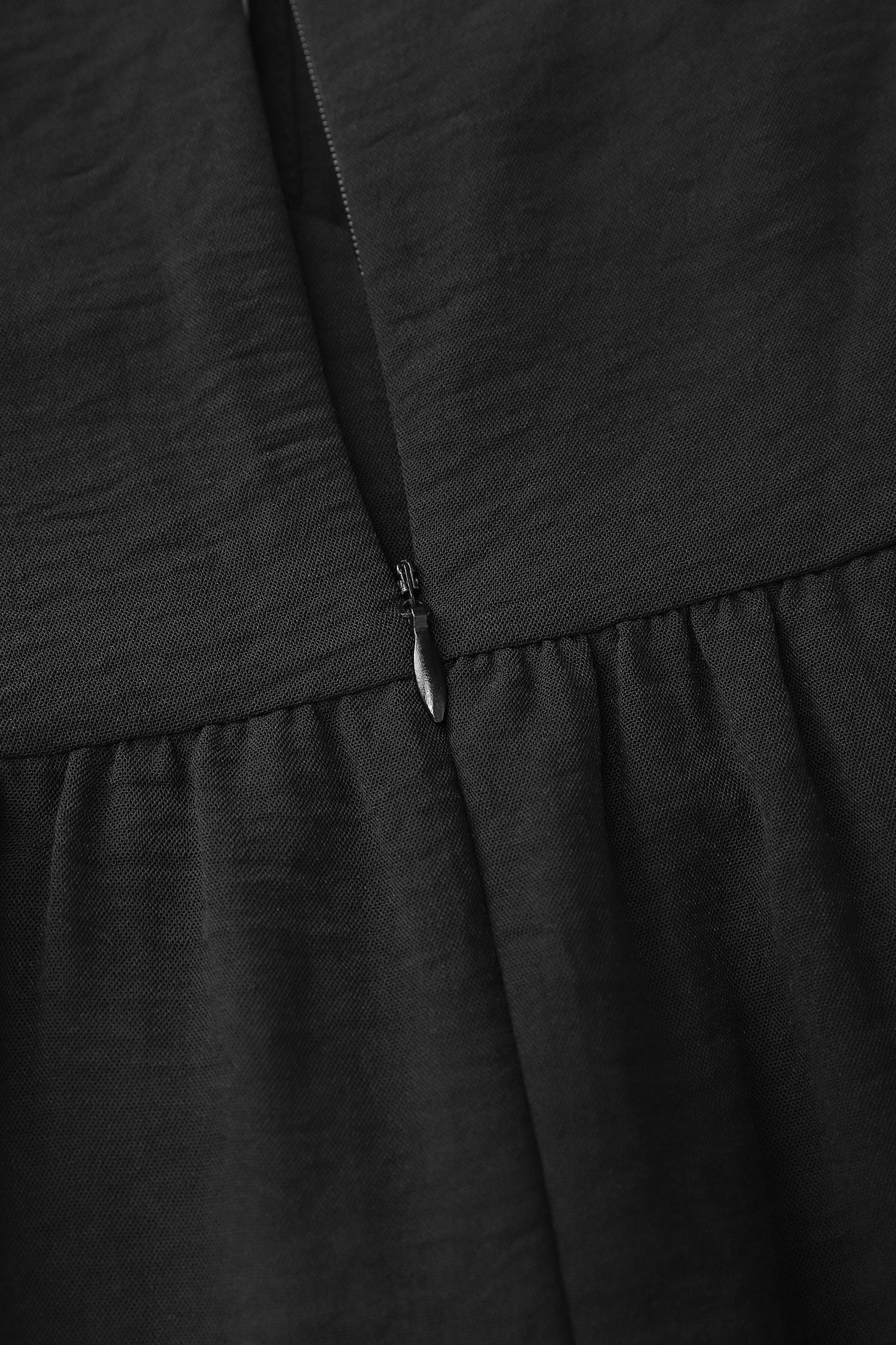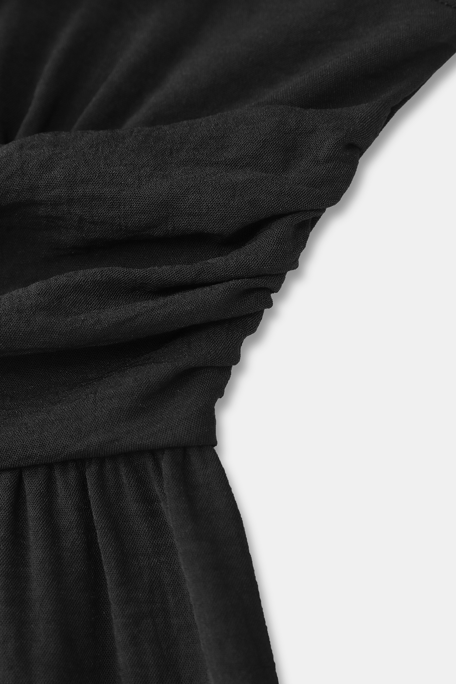 Abito lungo nero a maniche lunghe con scollo quadrato