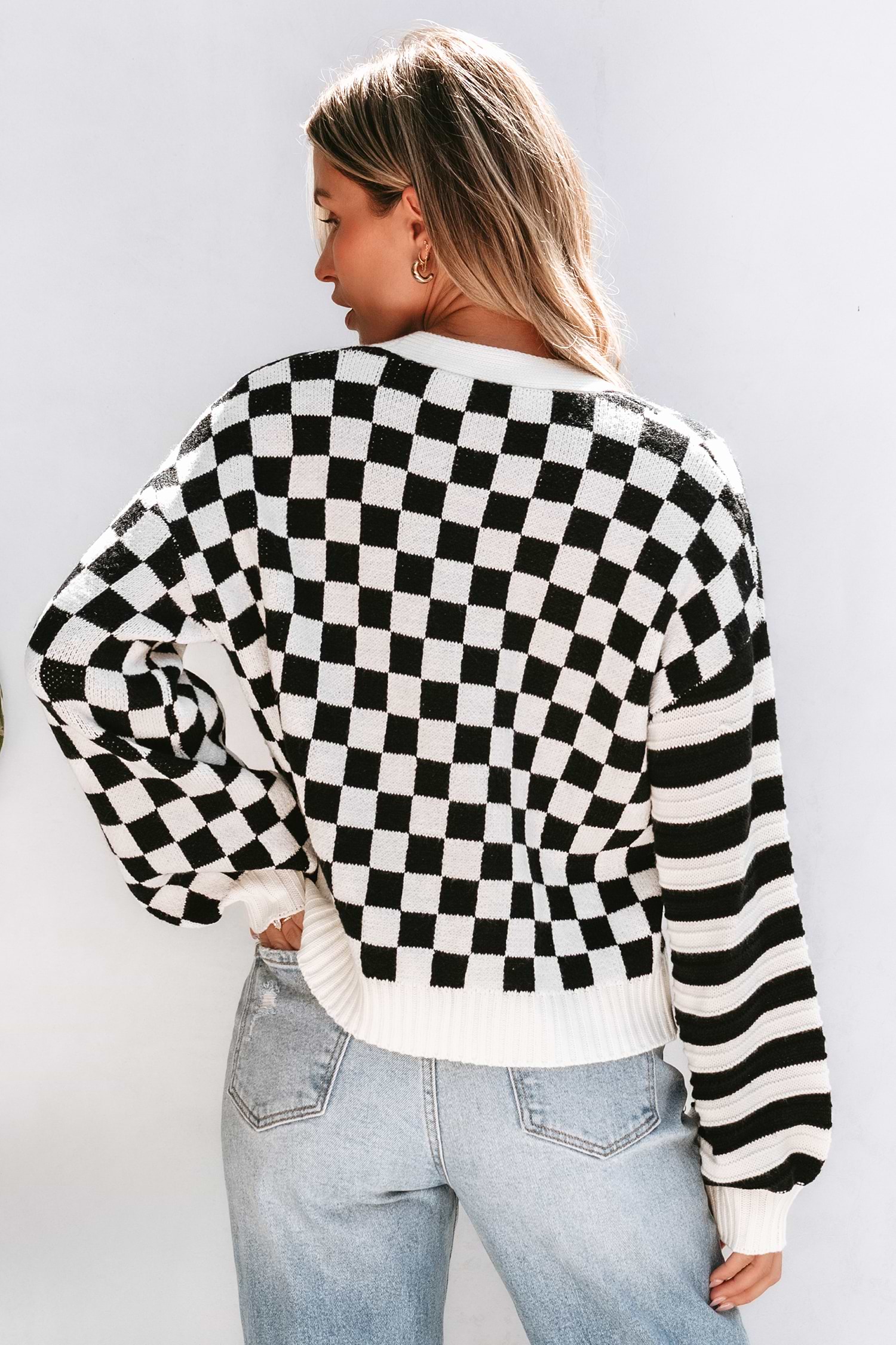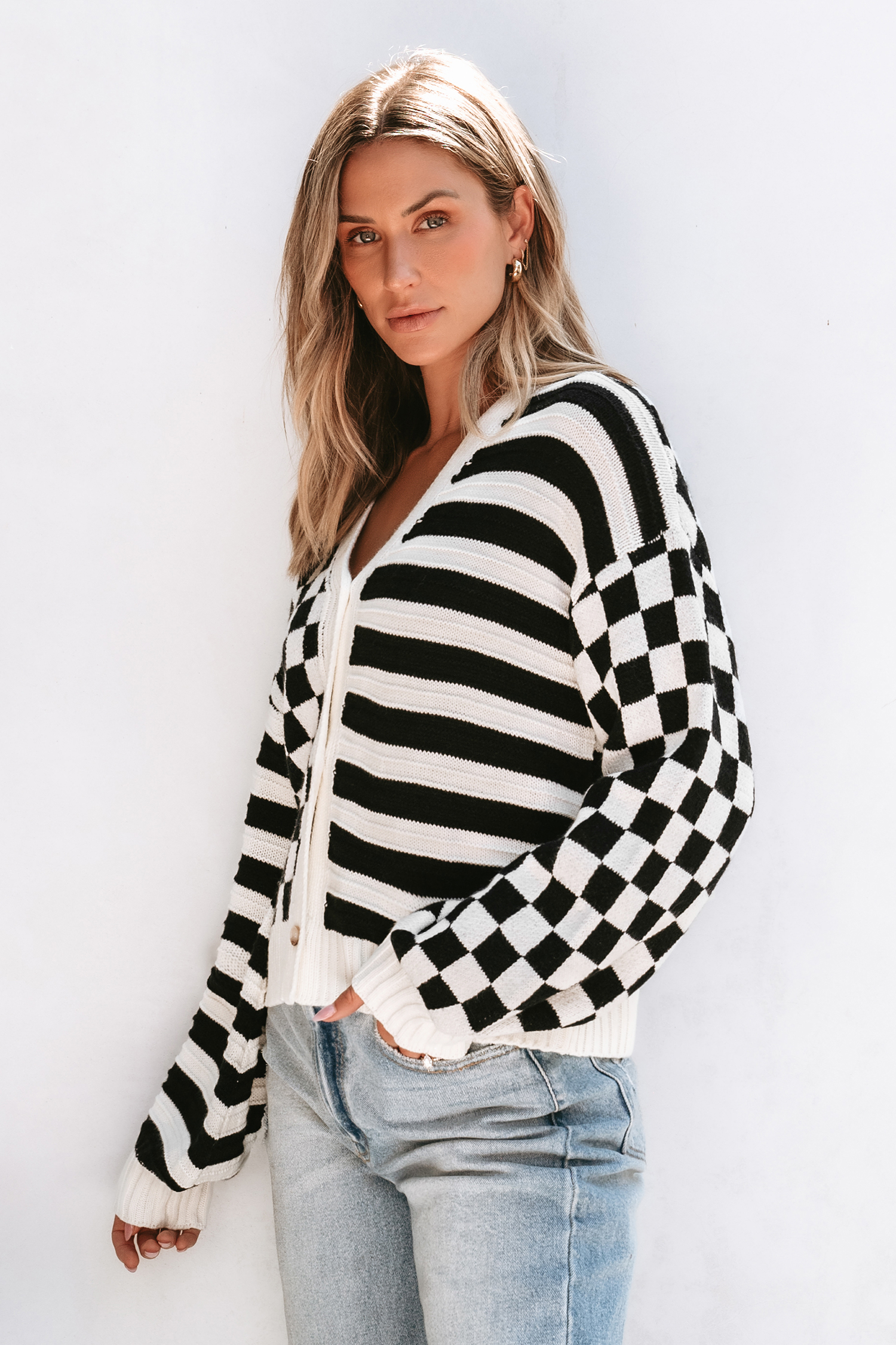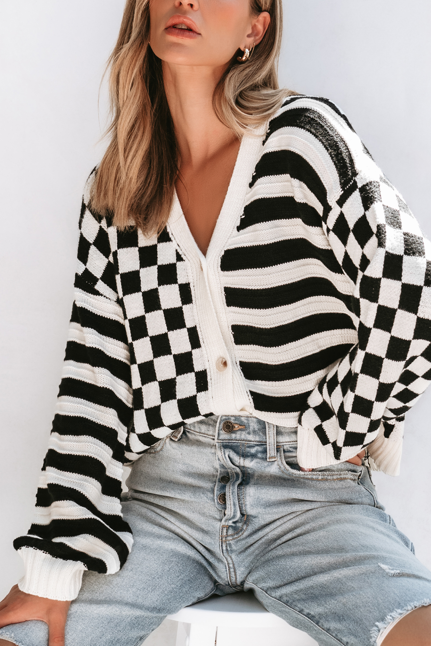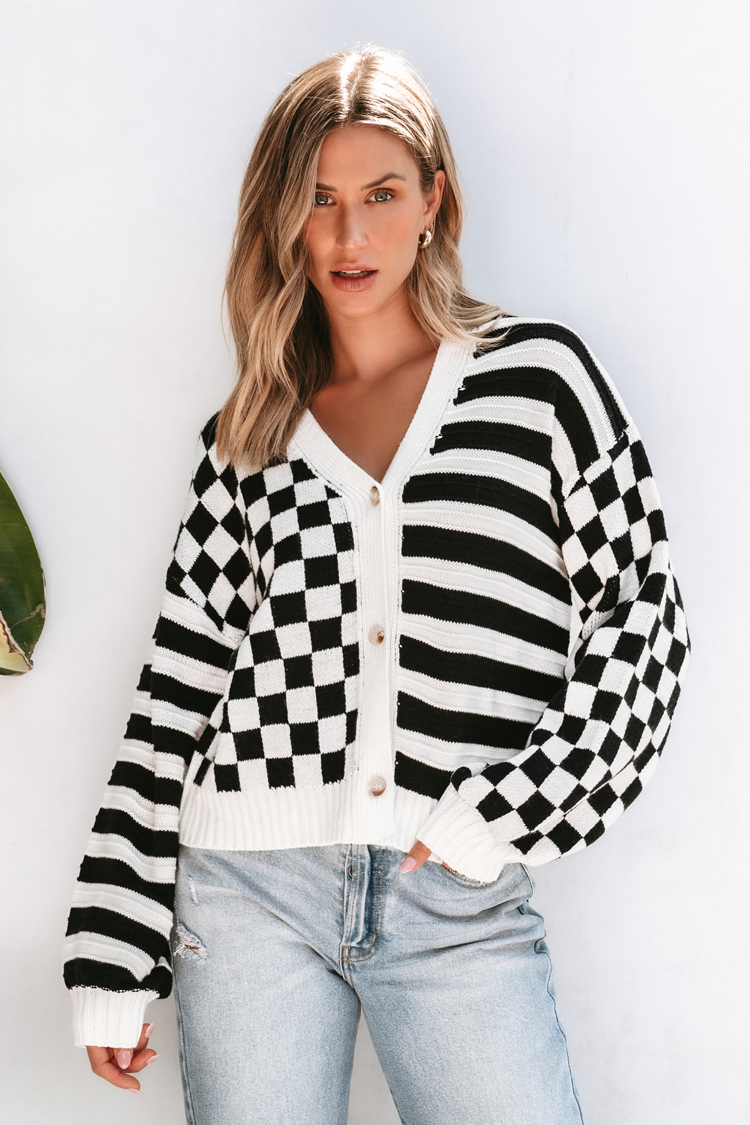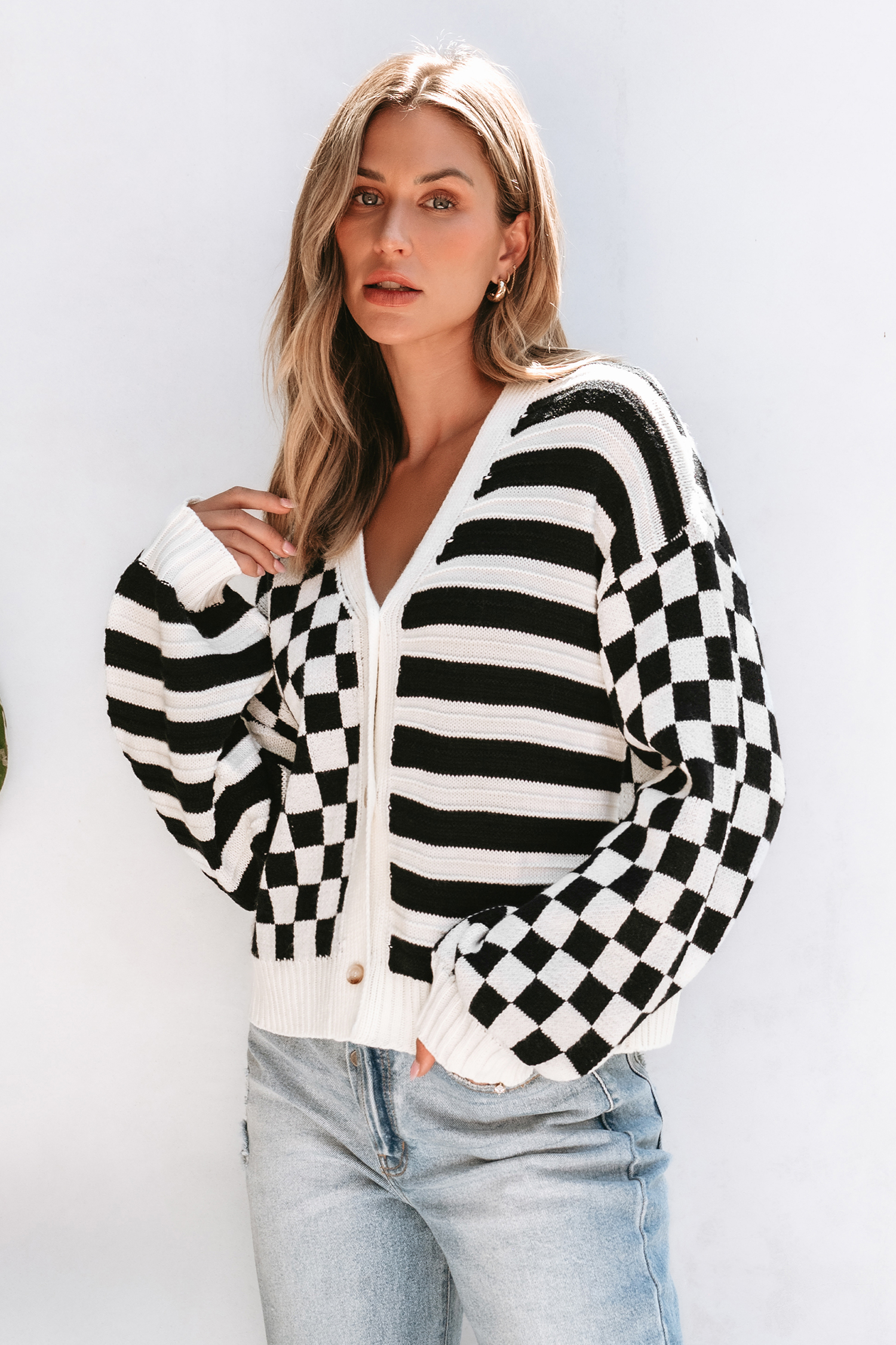 Cardigan a maniche lunghe con motivo misto bianco e nero