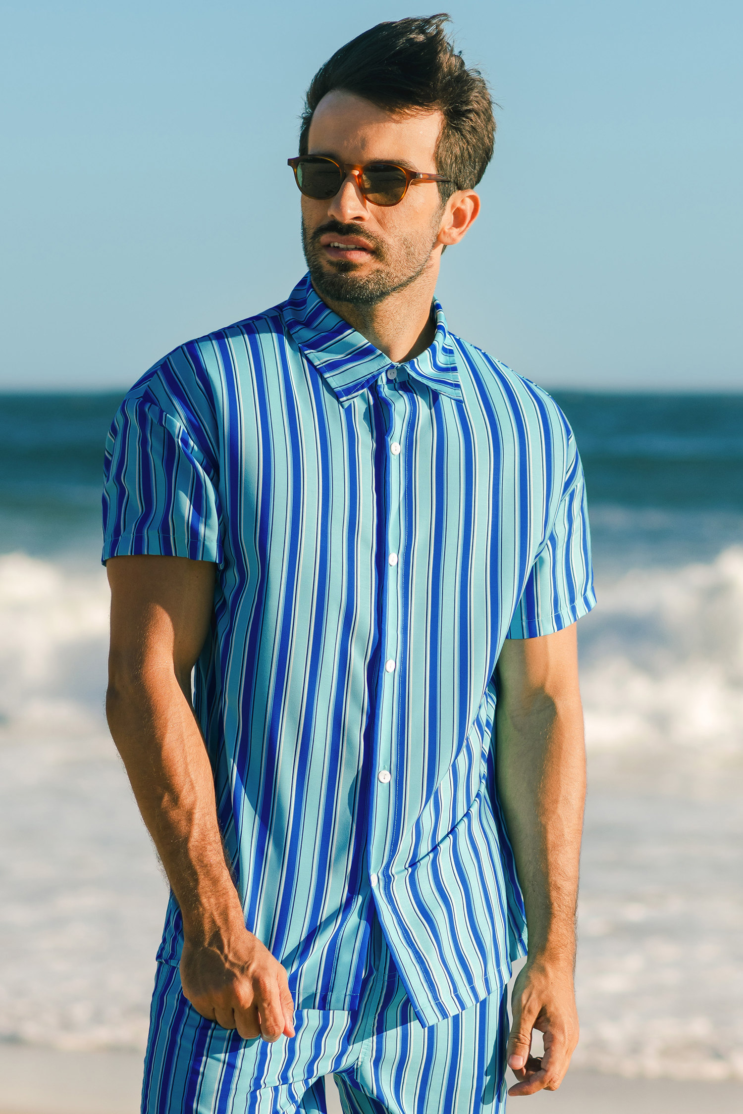 Cerchi una nuova interpretazione dello stile classico? La Blue Striped Men's Button-Up è la risposta che fa per te. Con le sue strisce nitide e la vestibilità versatile, è perfetta per tutto, dalle uscite informali ai weekend rilassati.