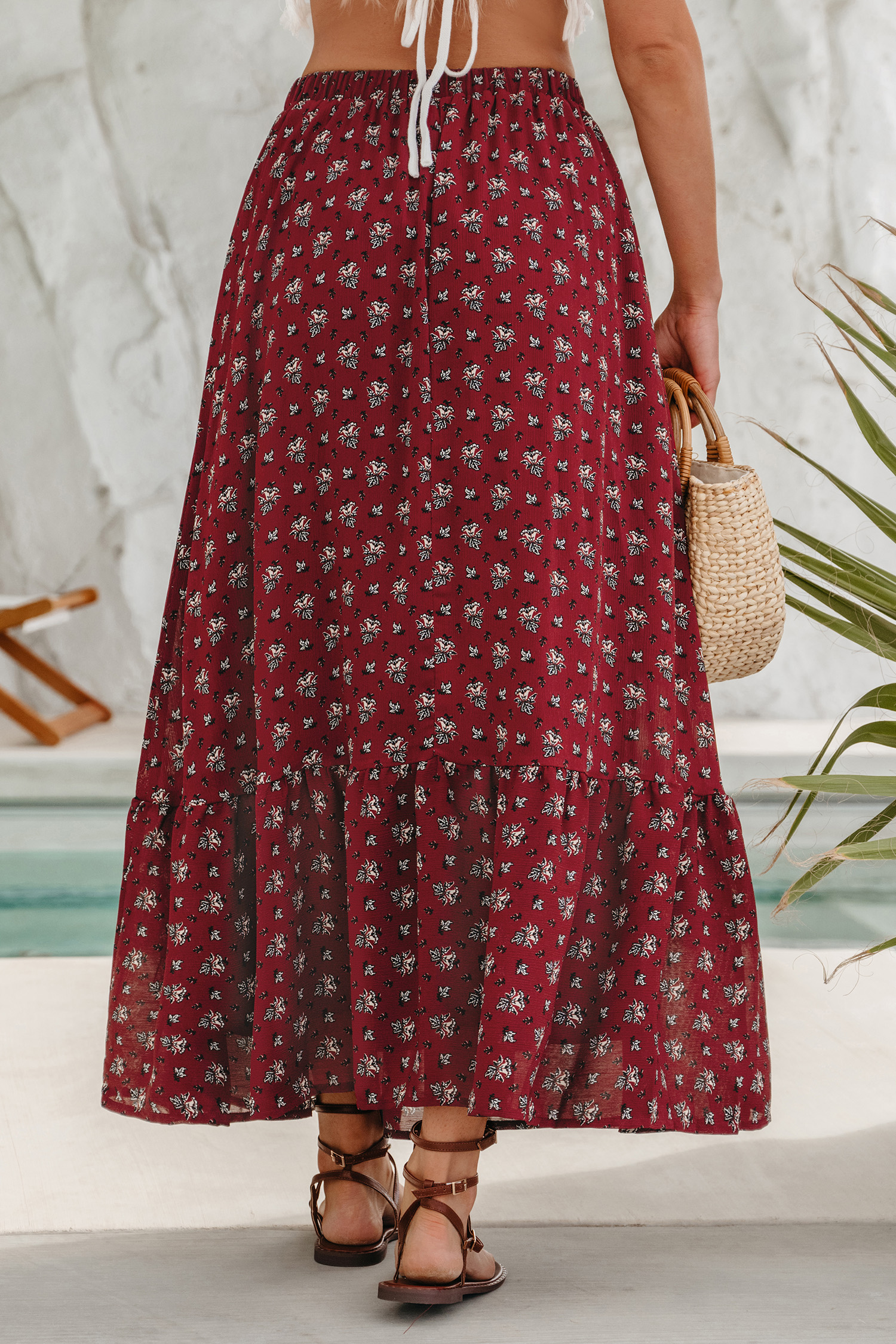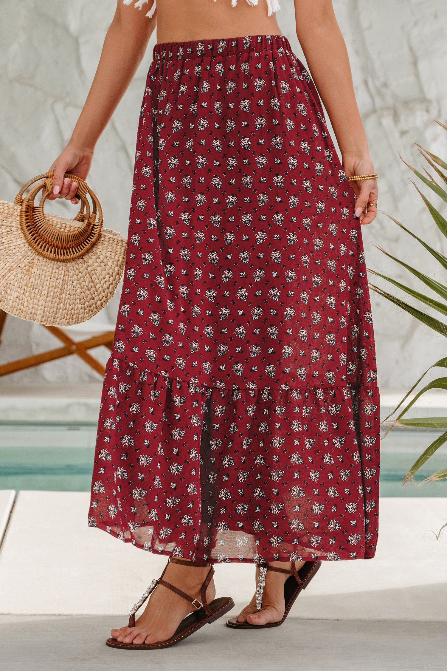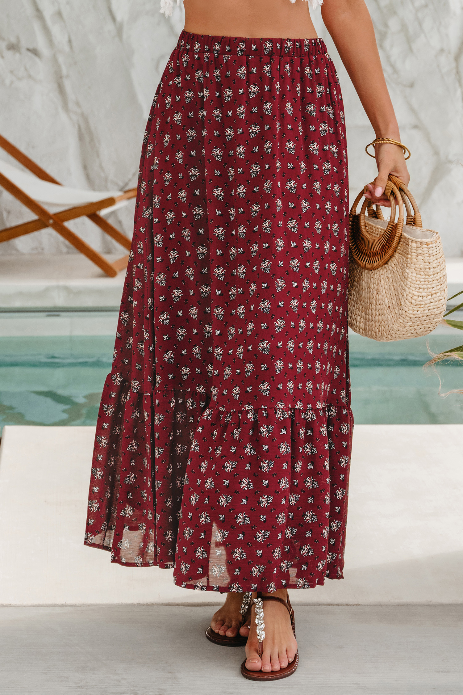 Gonna lunga con orlo arricciato e motivi floreali Boho