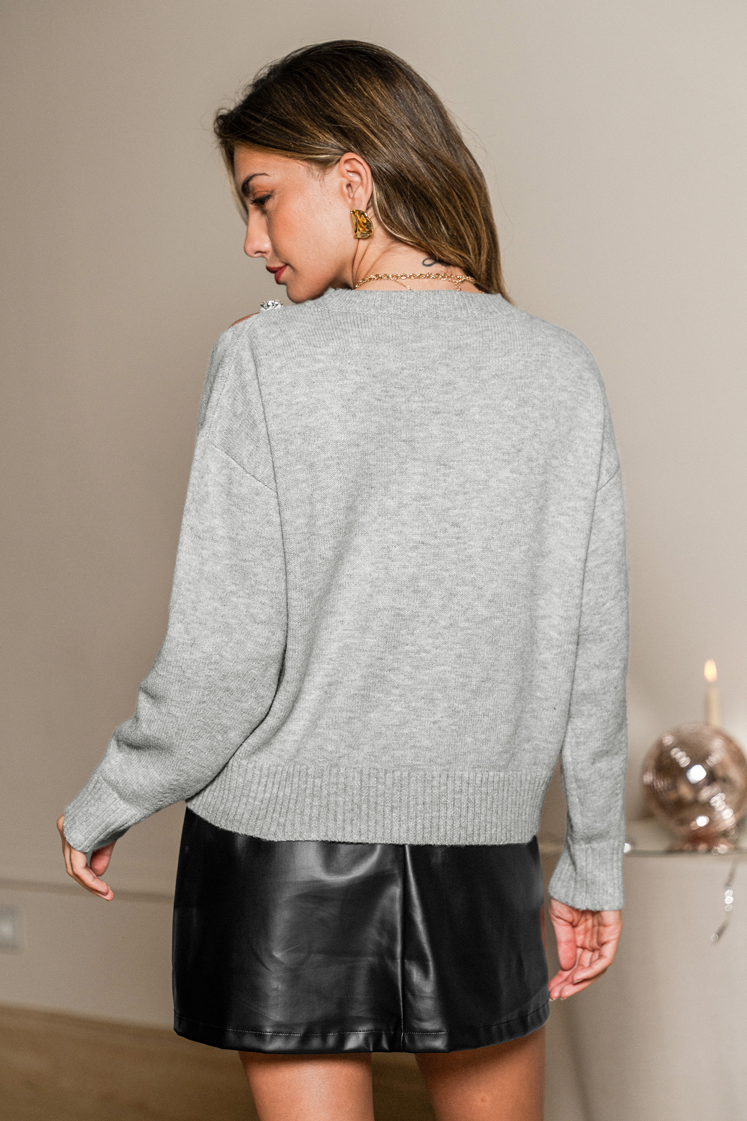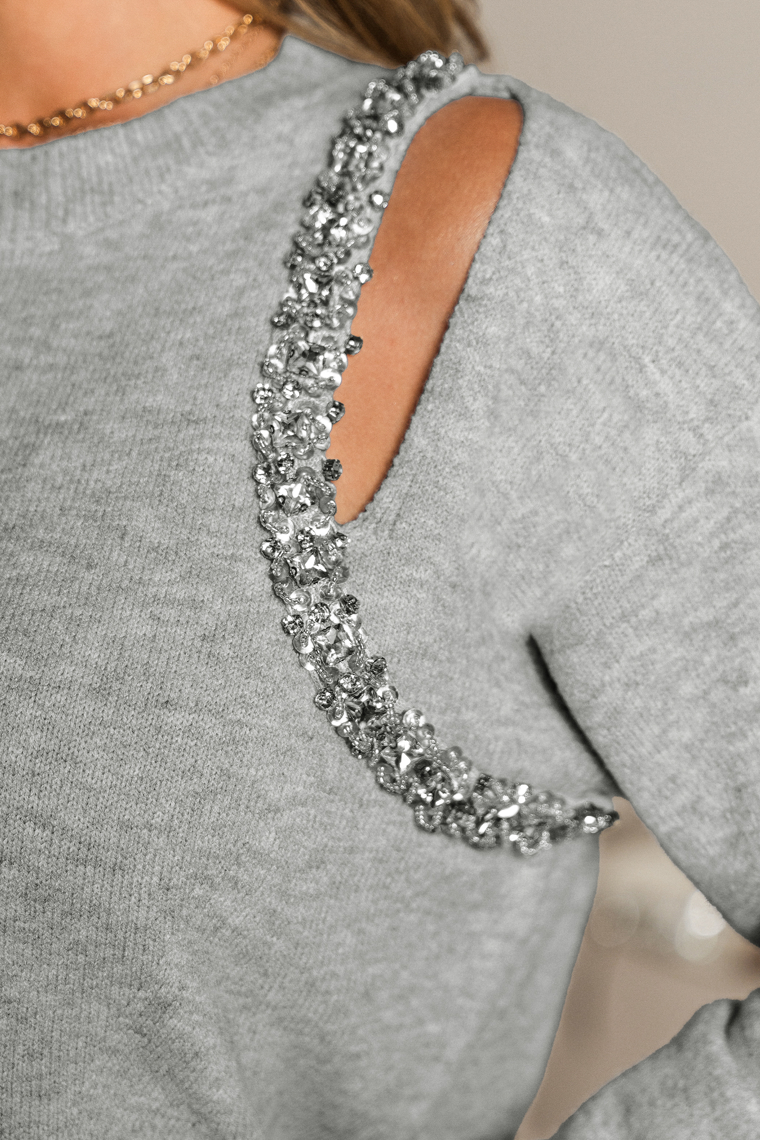 Il maglione grigio brandy aggiunge un tocco giocoso e delicato al tuo outfit! Presenta scollo rotondo, maniche lunghe e un elegante ritaglio per un tocco moderno.