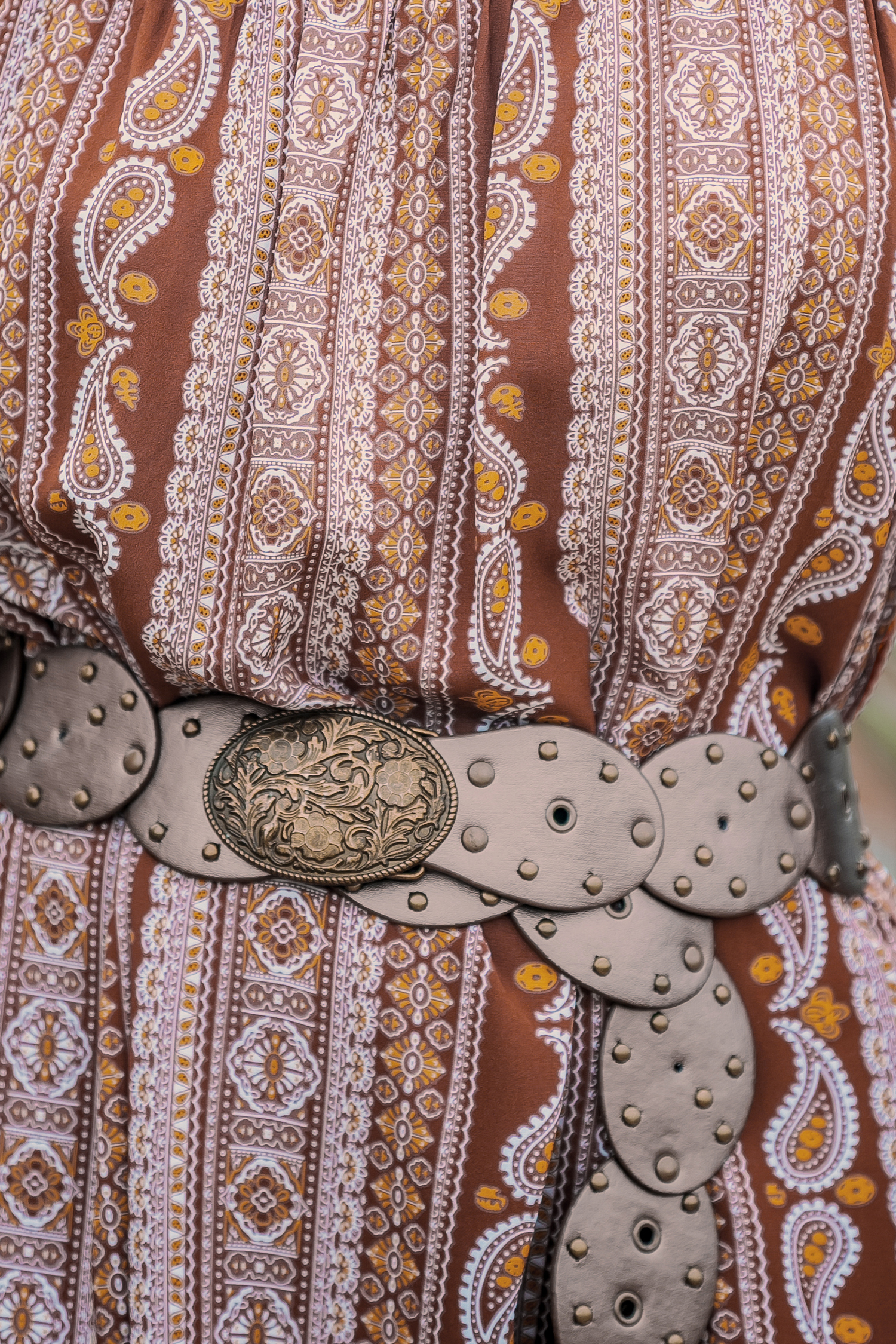 Mini abito senza maniche con scollo quadrato marrone Paisley