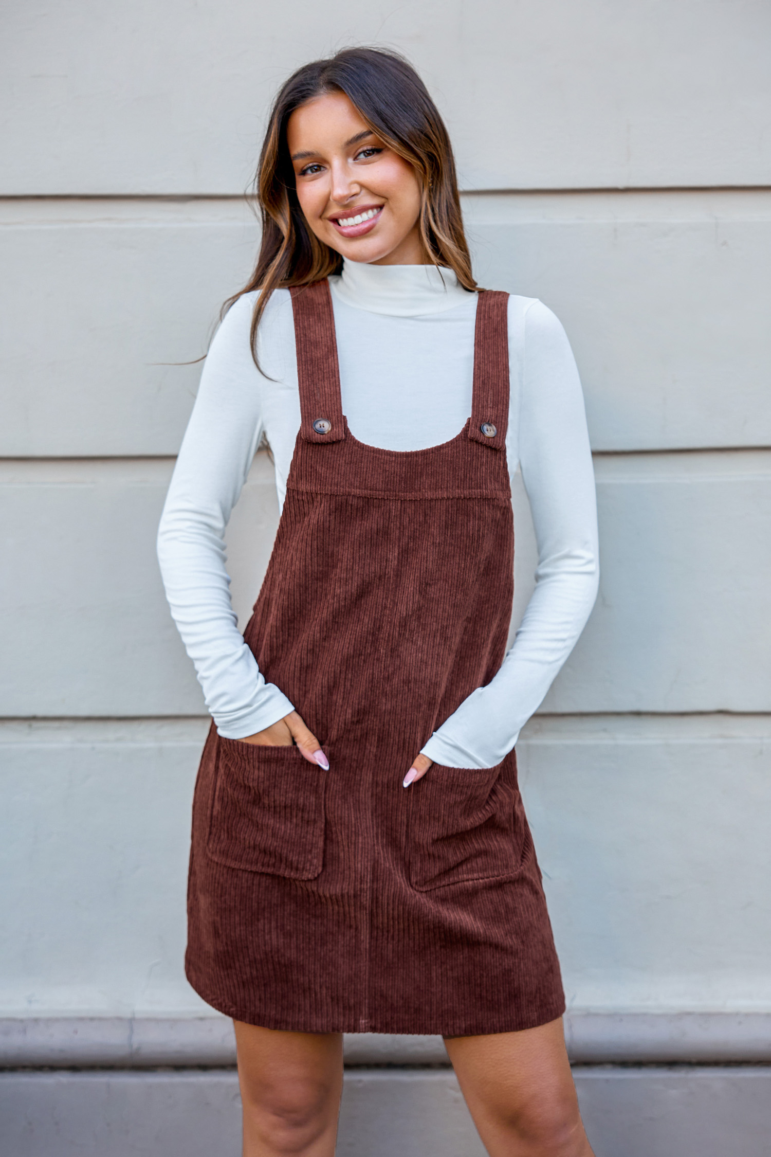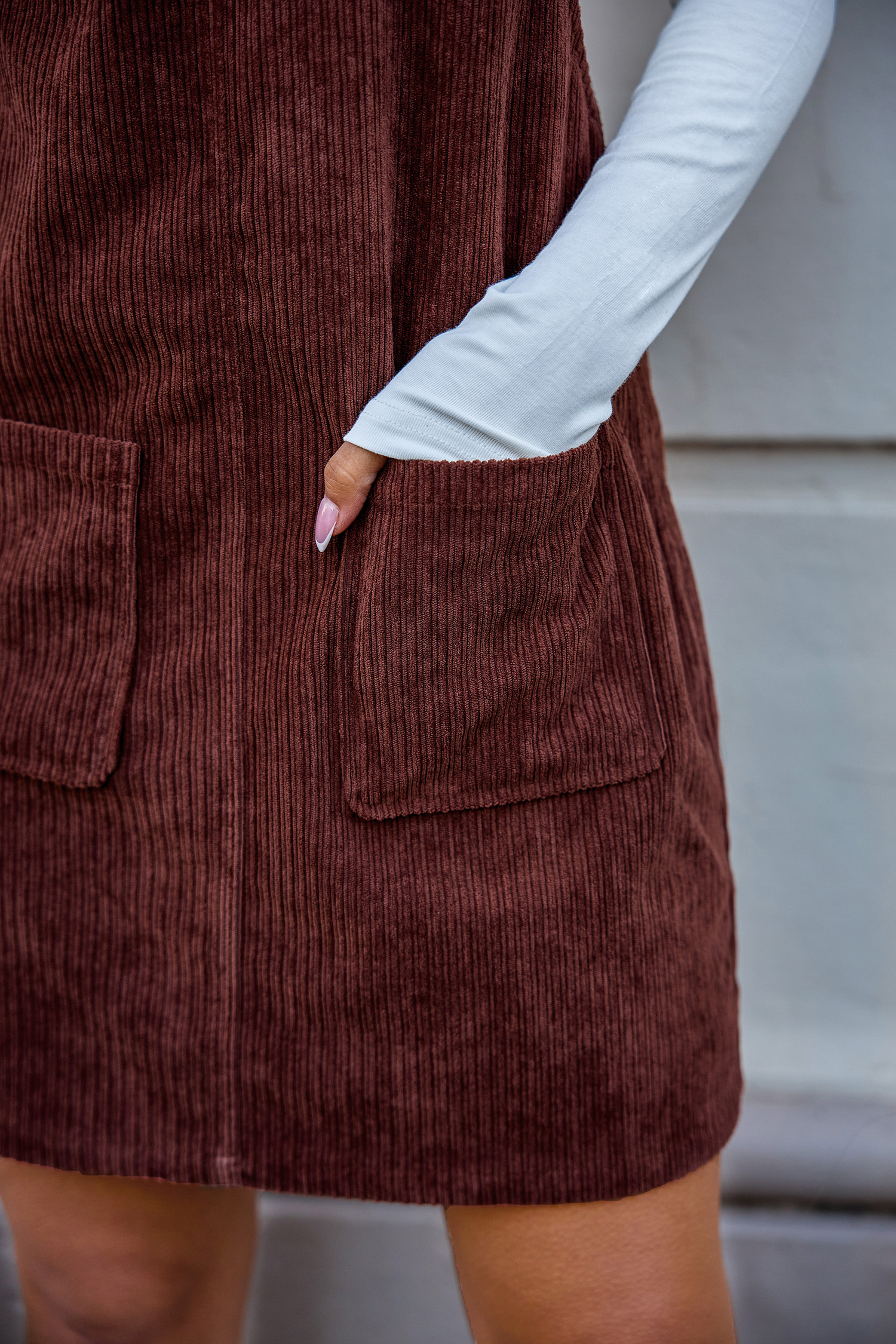 Chi ha detto che non puoi essere comoda ed elegante? Il Brown U-Neck Sleeveless Corduroy Pinafore dimostra che puoi avere entrambe le cose. Il suo design minimalista e l'atmosfera easy-going lo rendono il capo perfetto da indossare e da mettere insieme senza sforzo.