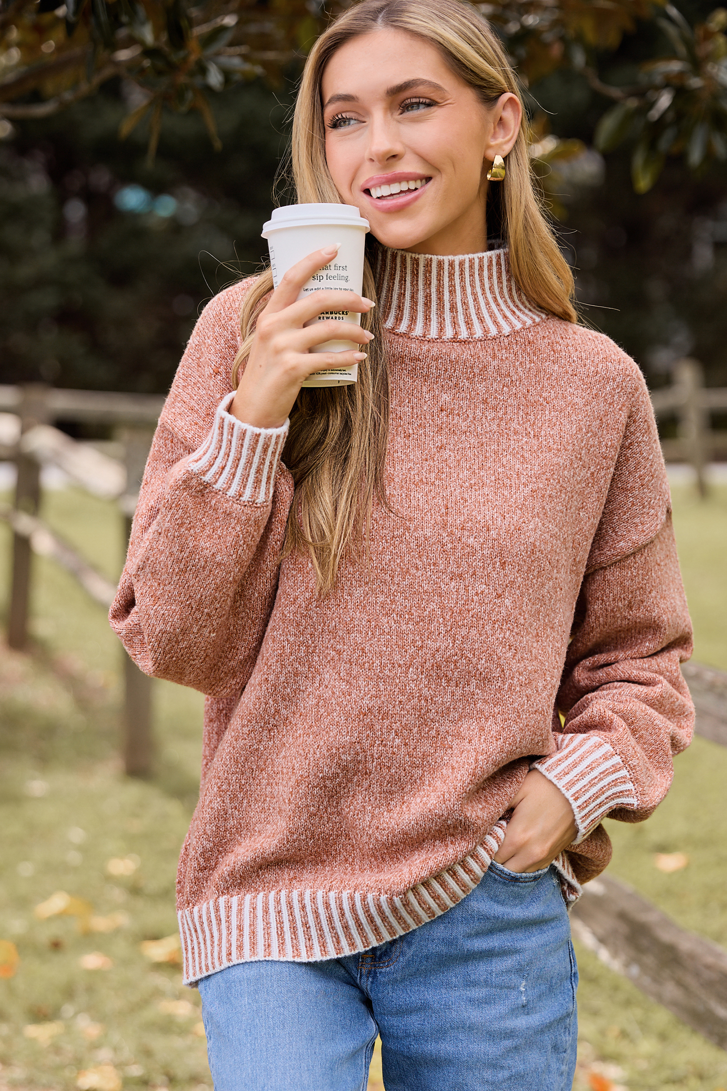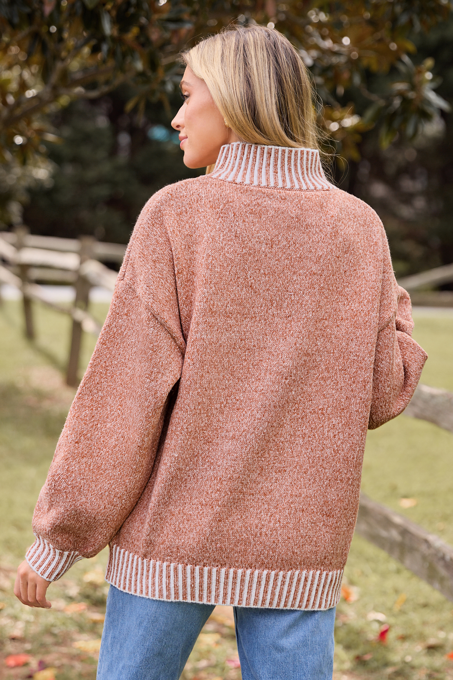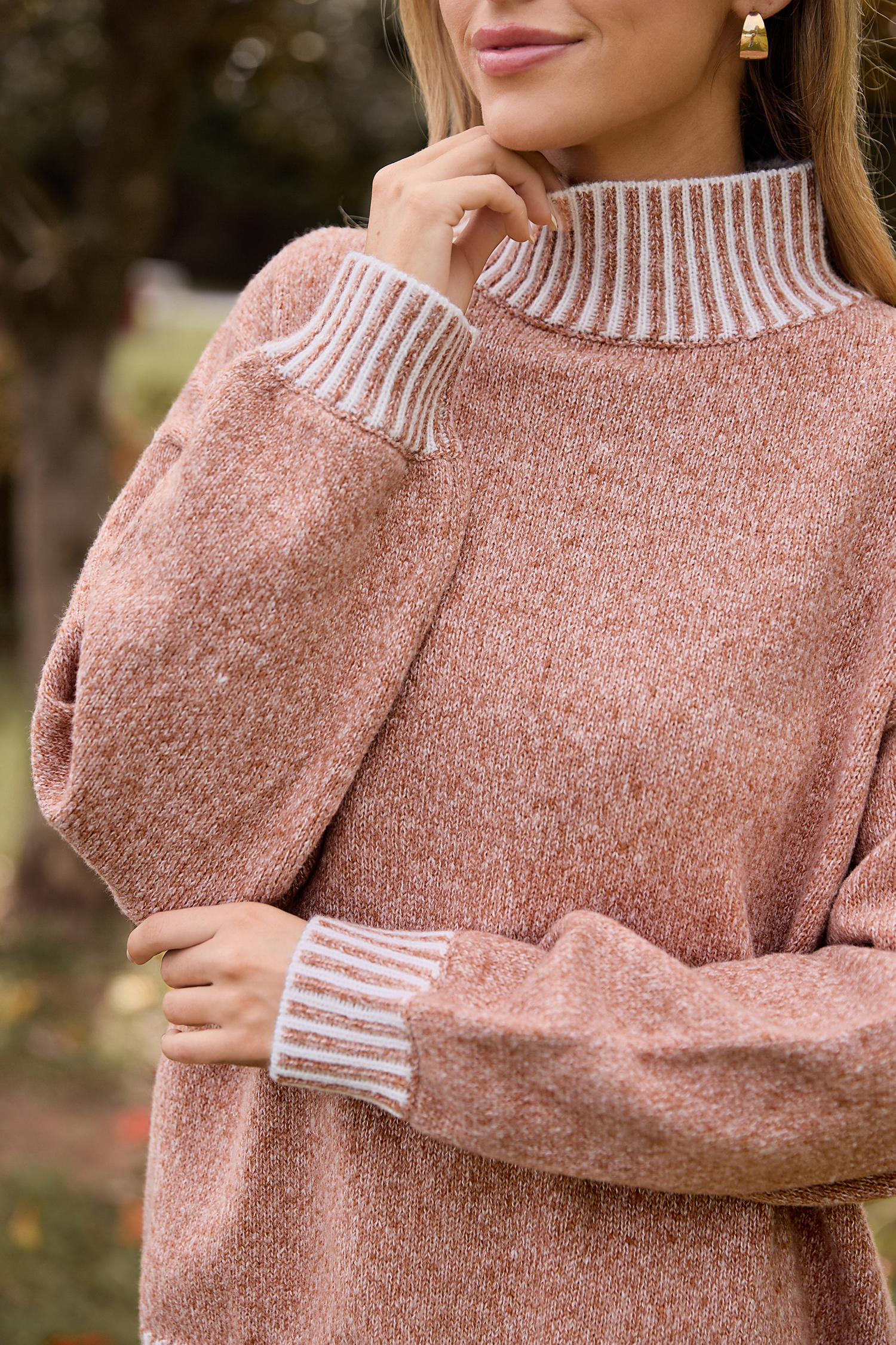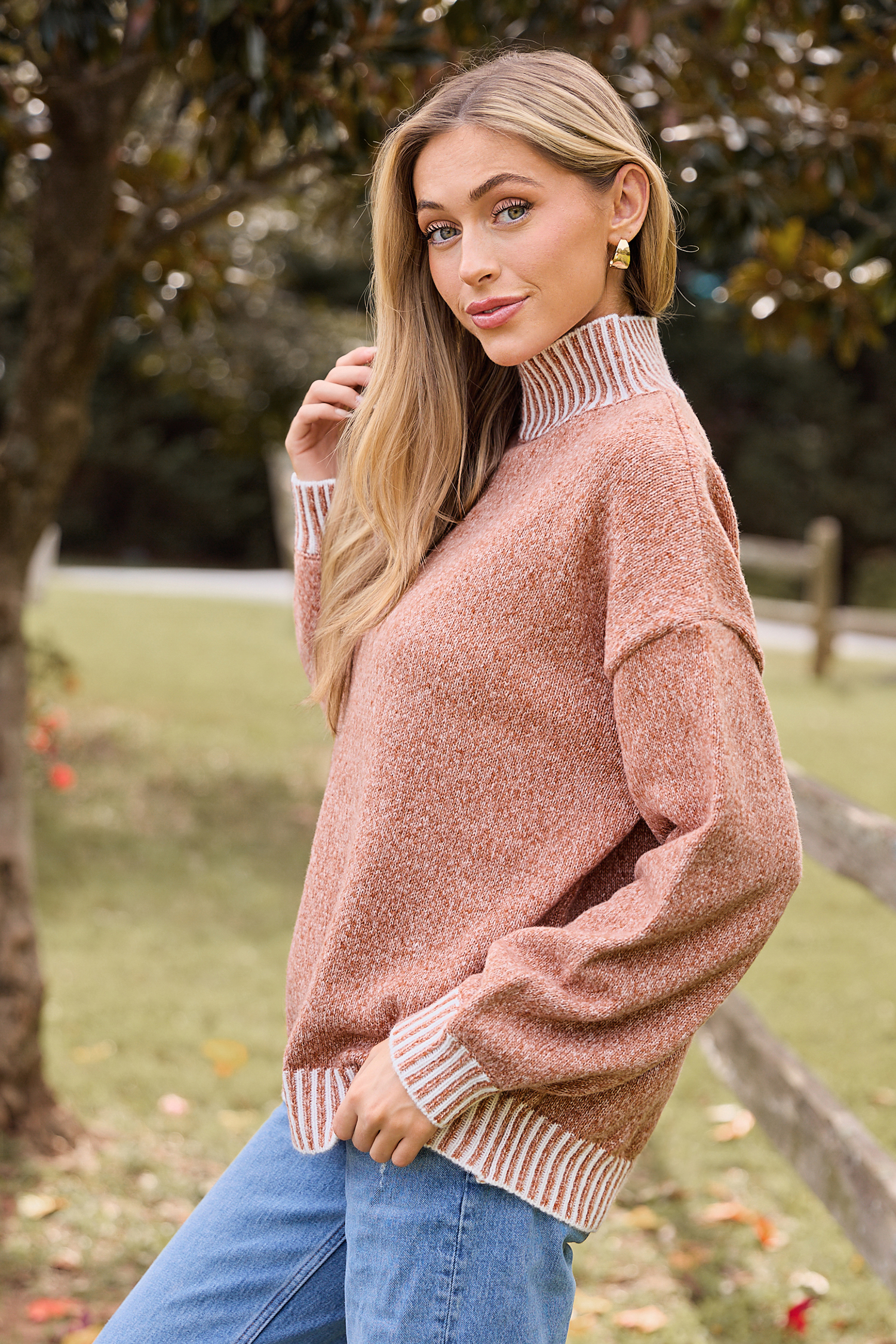 Maglione a collo alto a maniche lunghe color arancione bruciato