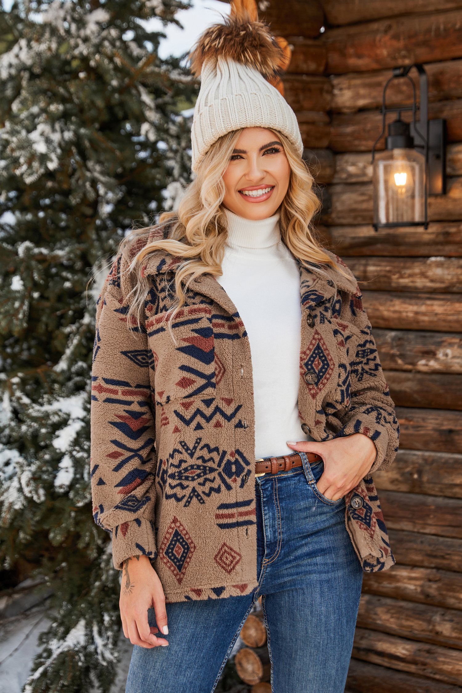 La giacca Camel Southwestern Button Up Jacket è la combinazione perfetta di stampe audaci e comfort accogliente. Con le sue vibrazioni western e il design abbottonato, è pronta a portare il tuo stile a un livello superiore.