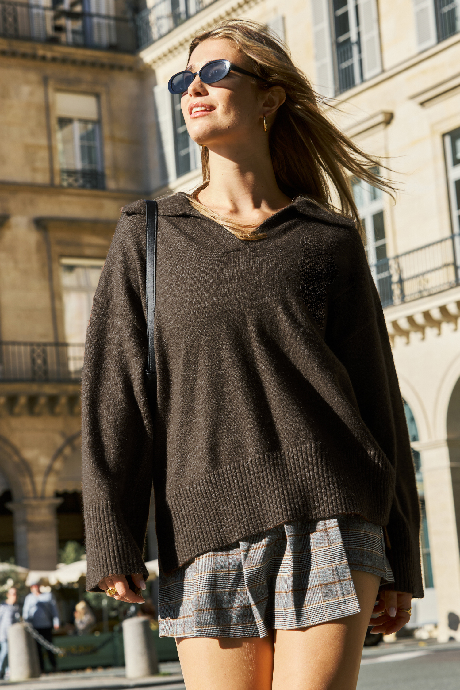 Maglione a maniche lunghe con colletto marrone caffè