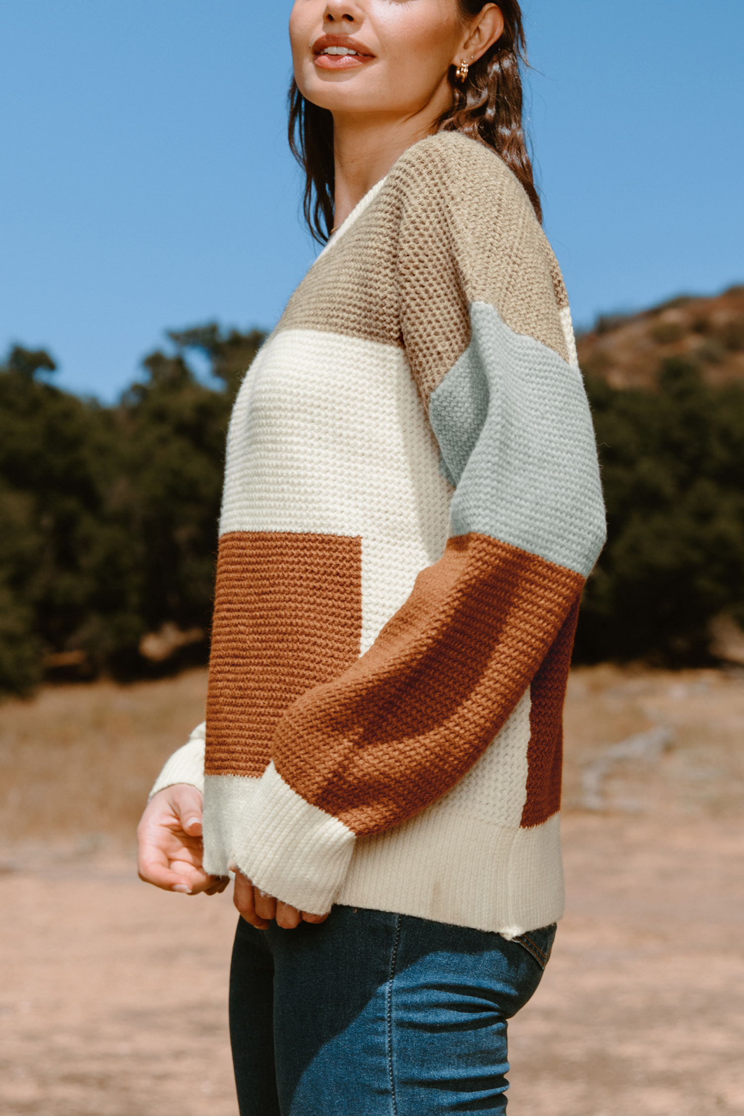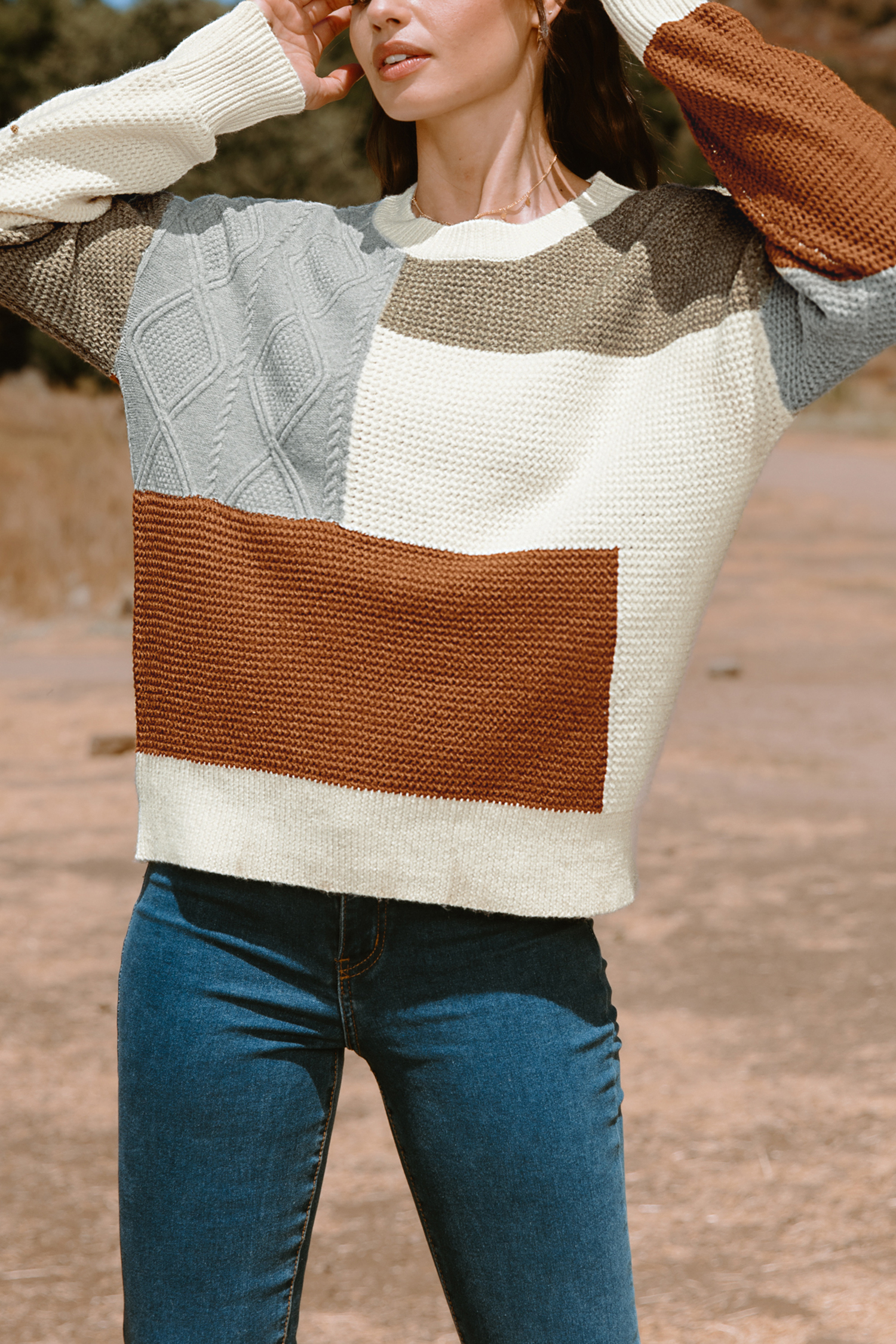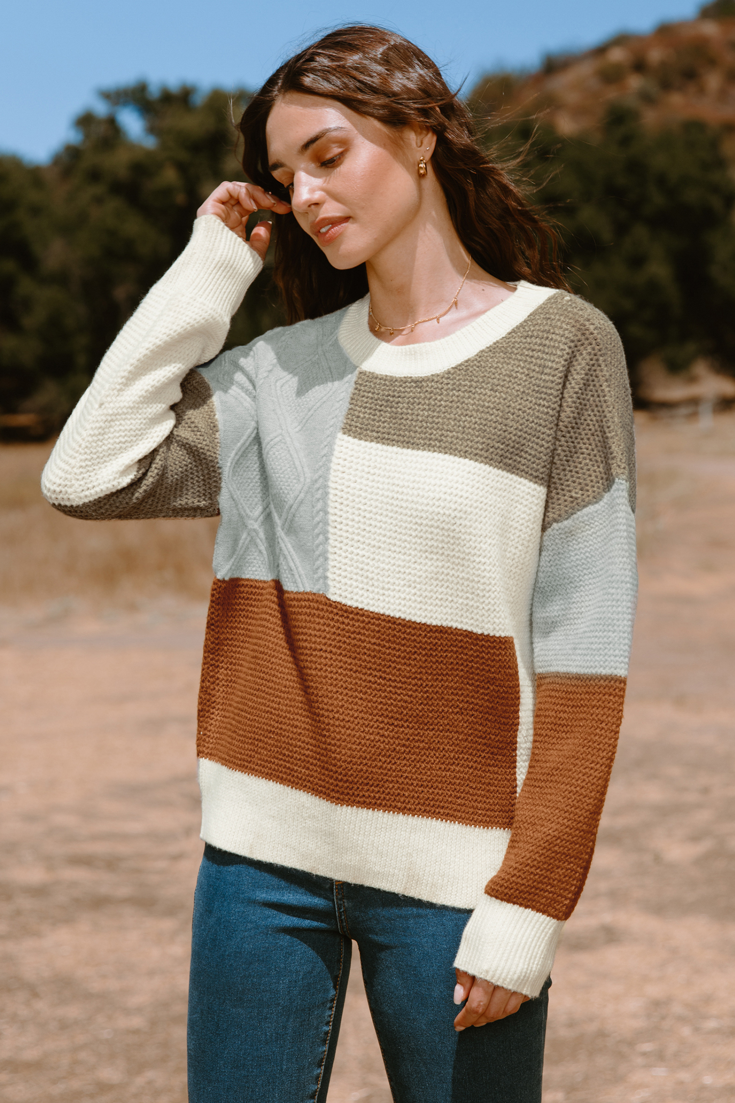 Maglione girocollo a maniche lunghe con spalle cadenti colorblock