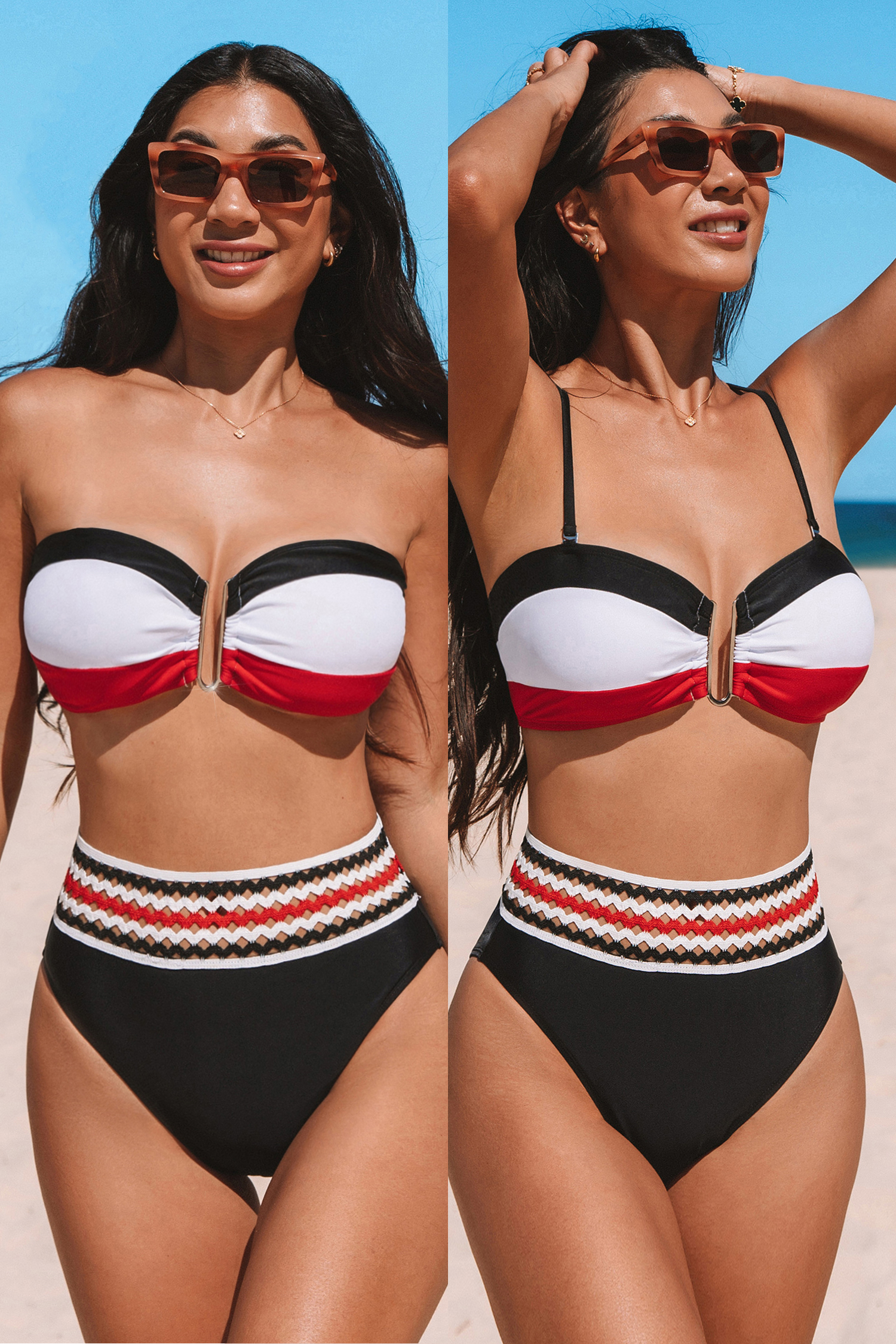 Set bikini con top e slip a vita alta colorblock sweetheart