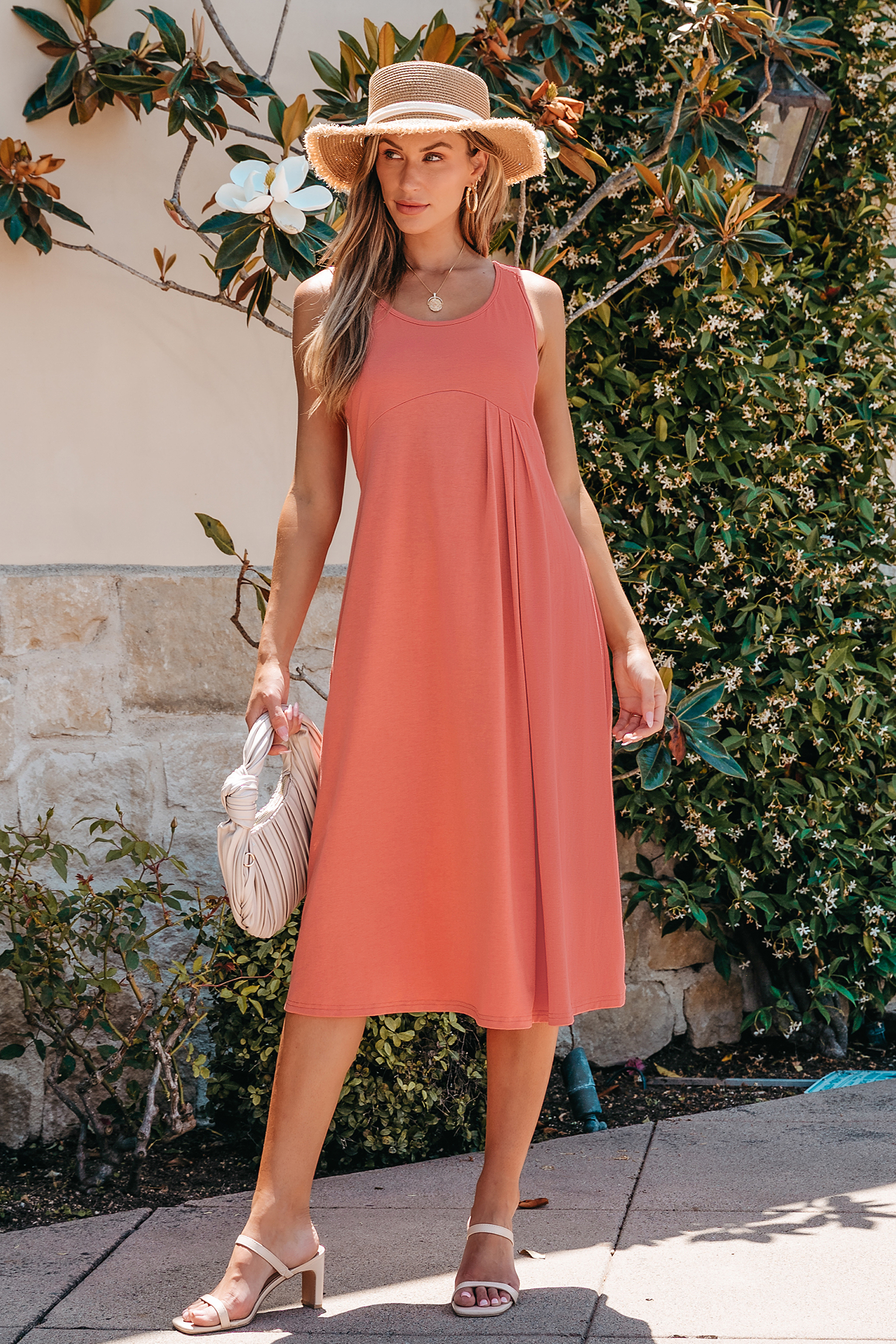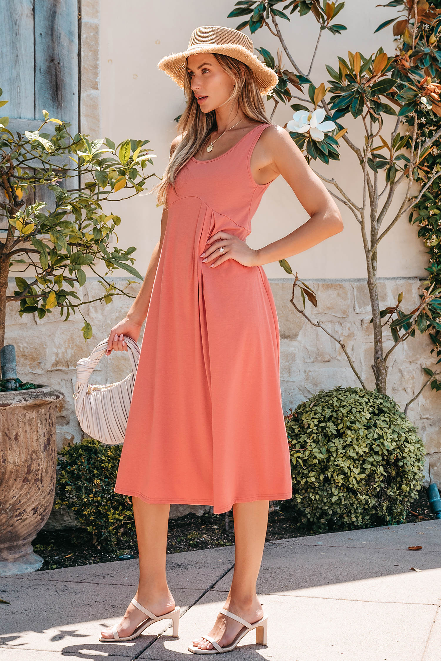 Abito longuette color corallo