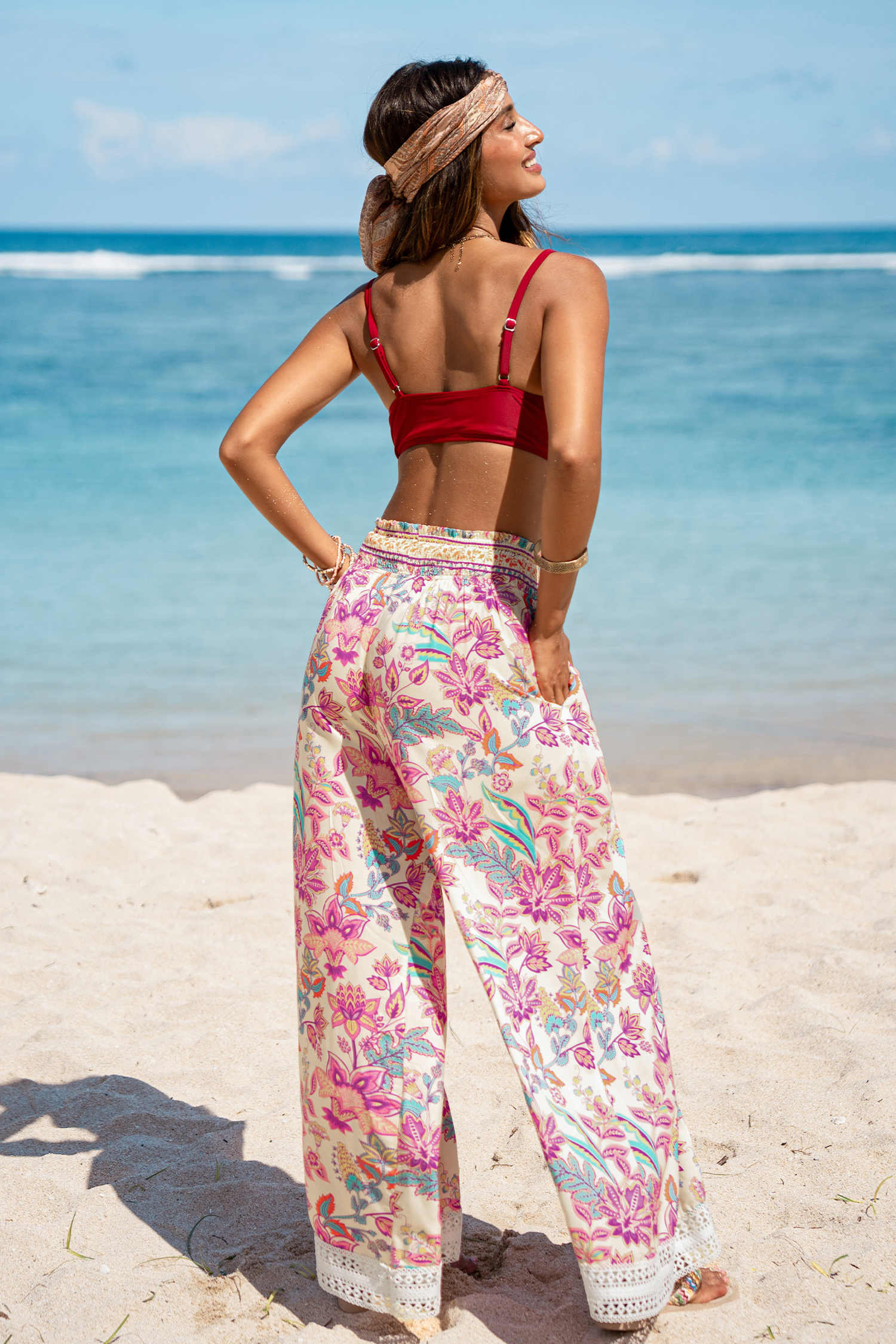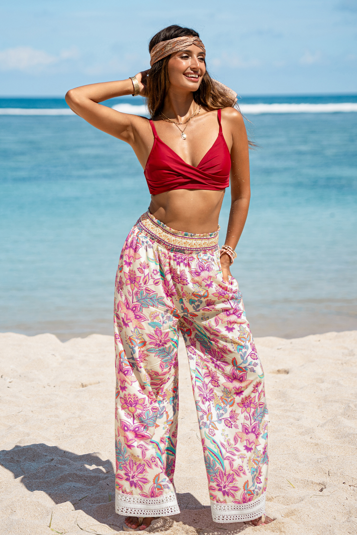Fluttuanti e pieni di stile, i pantaloni copricostume Desert Dreamer Floral sono perfetti per le giornate spensierate! Con vita arricciata, pratiche tasche e gambe ampie e ariose, per un'atmosfera vacanziera senza sforzo.