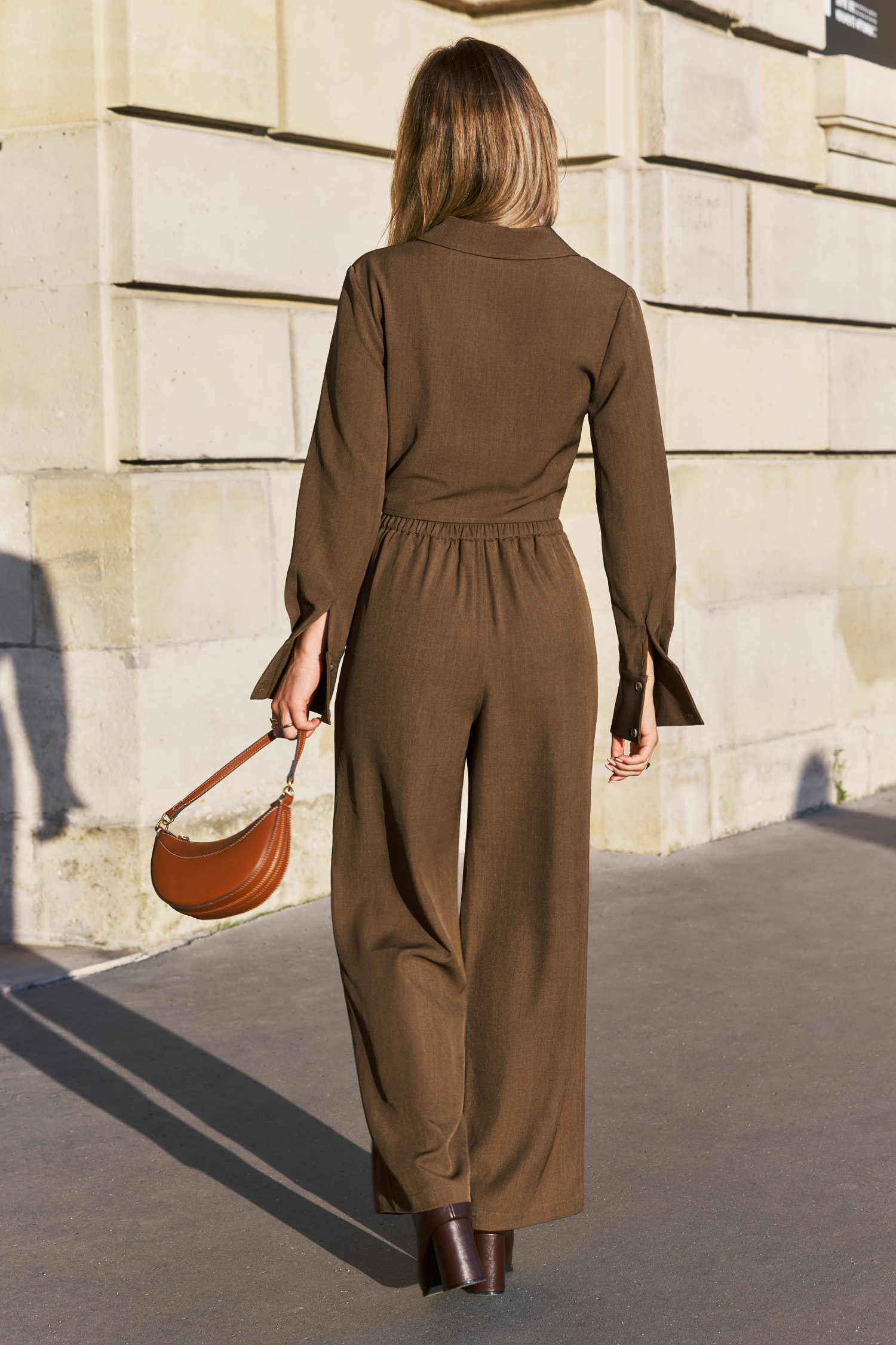Completo top corto marrone espresso e pantaloni a gamba dritta