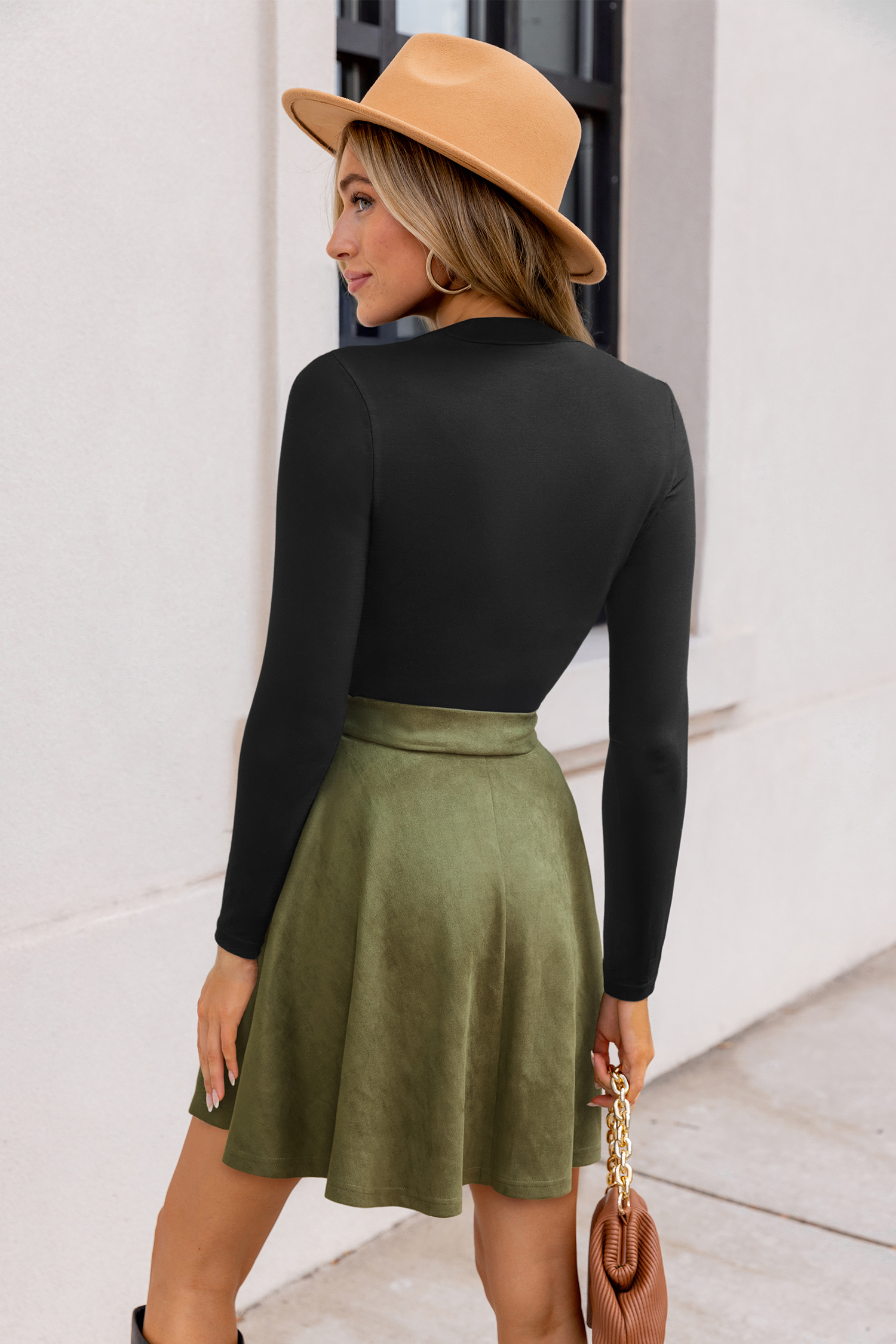 Il mini abito bicolore Evergreen Days porta con sé un'atmosfera autunnale e accogliente, con un tocco giocoso! Le maniche lunghe con scollo alto e la cintura in vita creano una silhouette lusinghiera, mentre la lunghezza mini lo rende attuale e divertente.