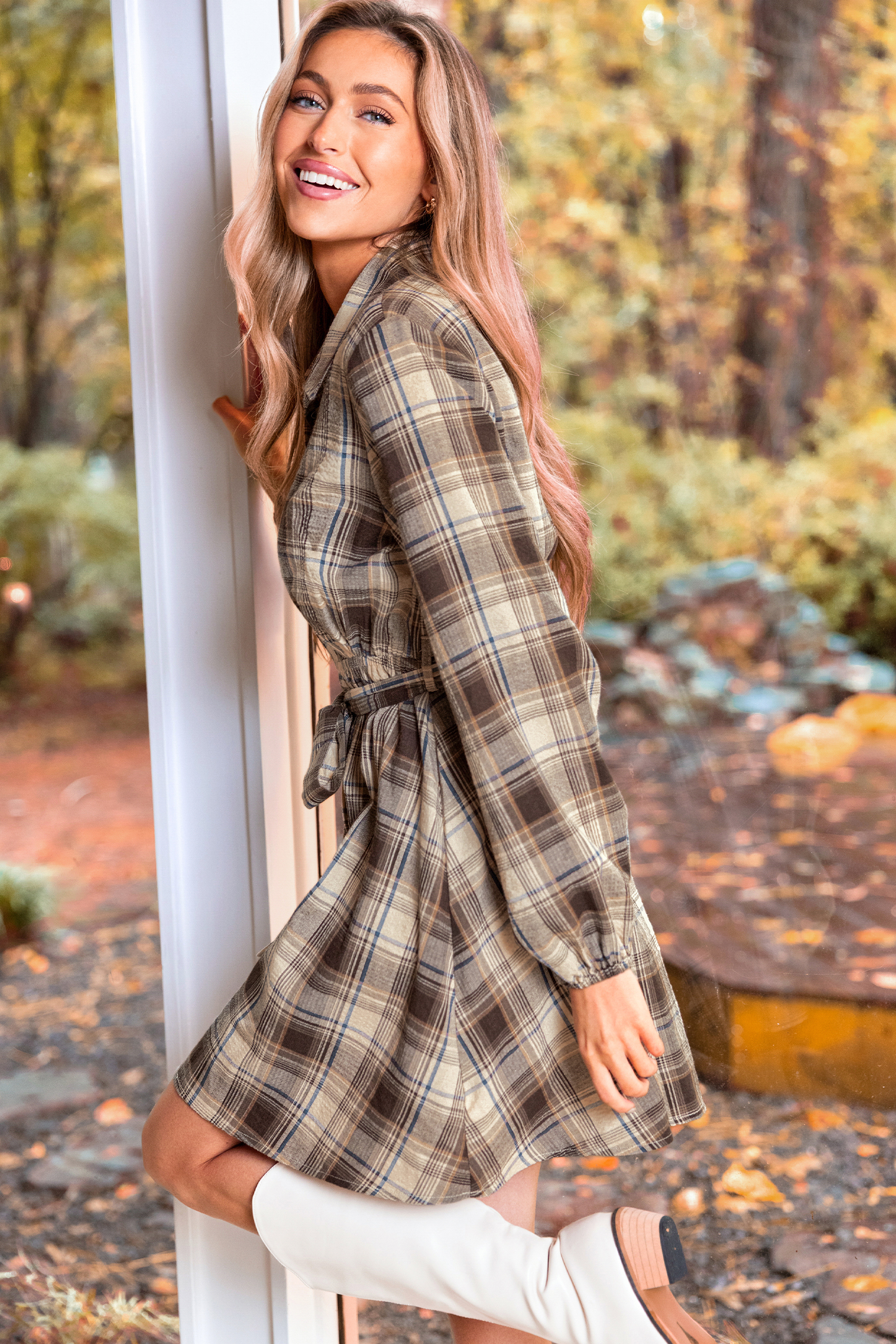 Il mini abito scozzese Fall Icon unisce l'energia classica e accogliente con un tocco moderno! Presenta scollo a V, maniche lunghe e laccetto in vita per una silhouette giocosa e lusinghiera.