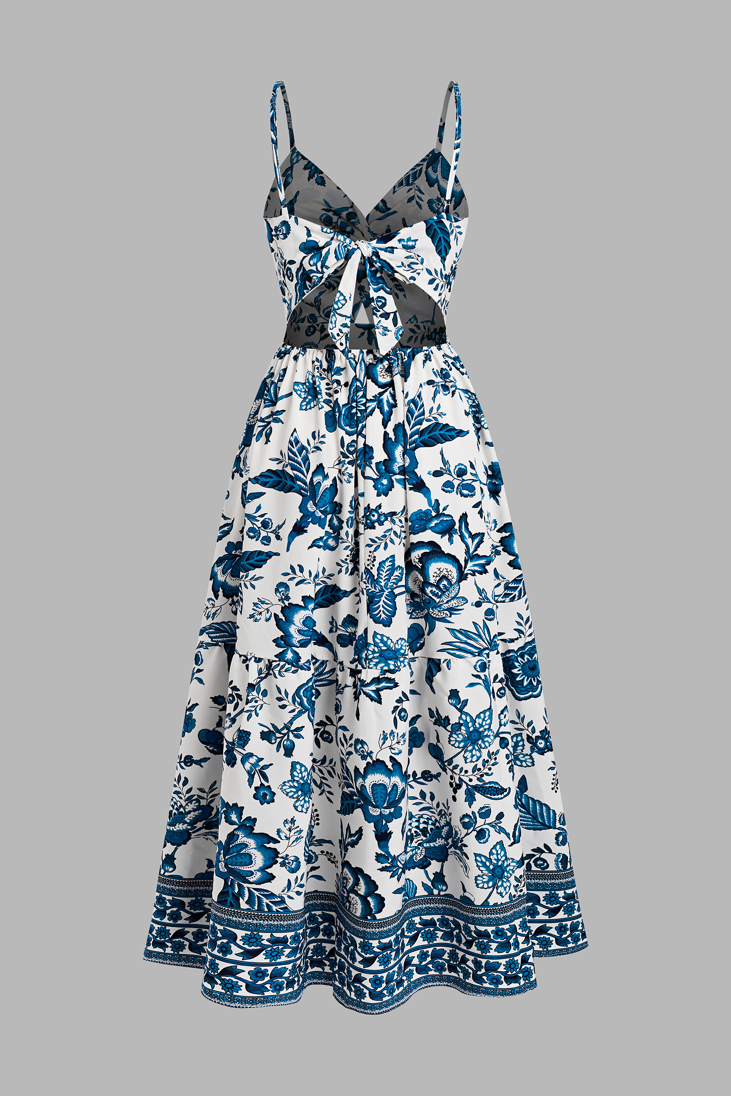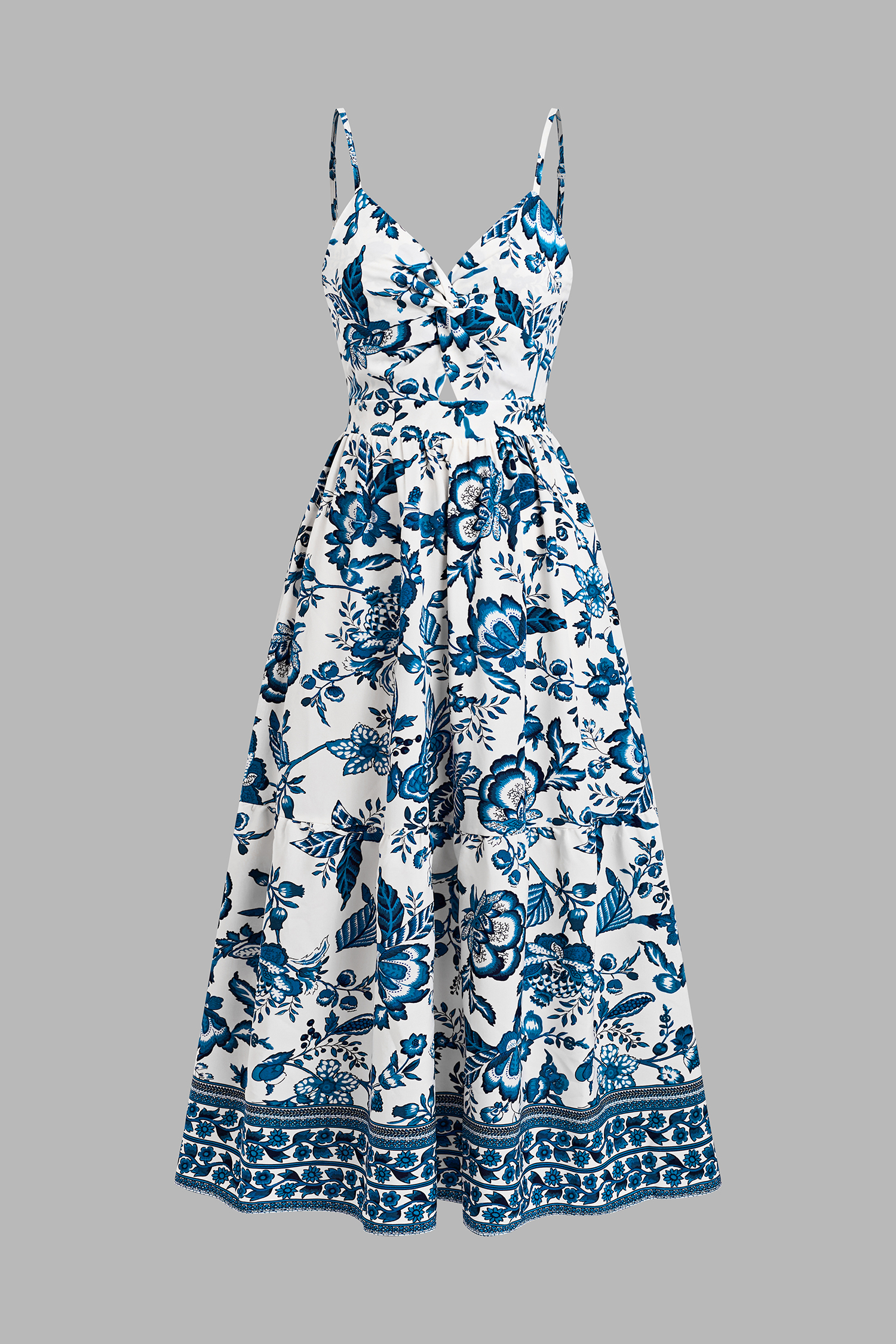 Abito maxi floreale con scollo a cuore e buco della serratura
