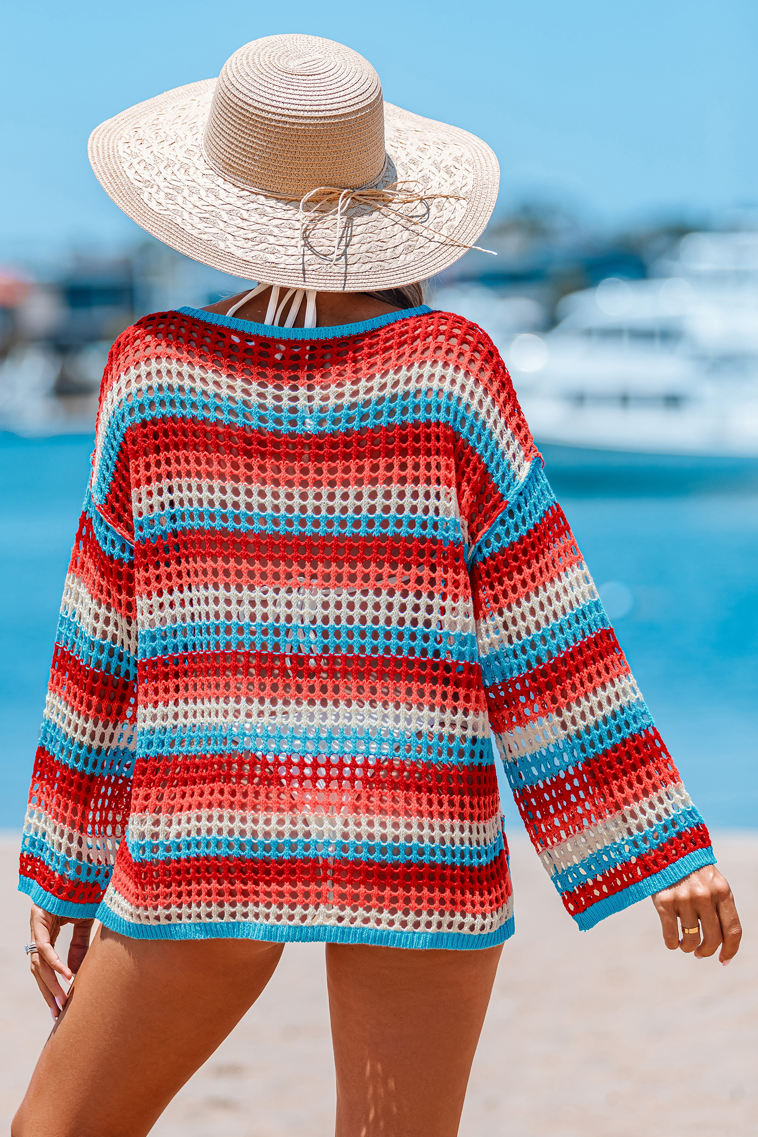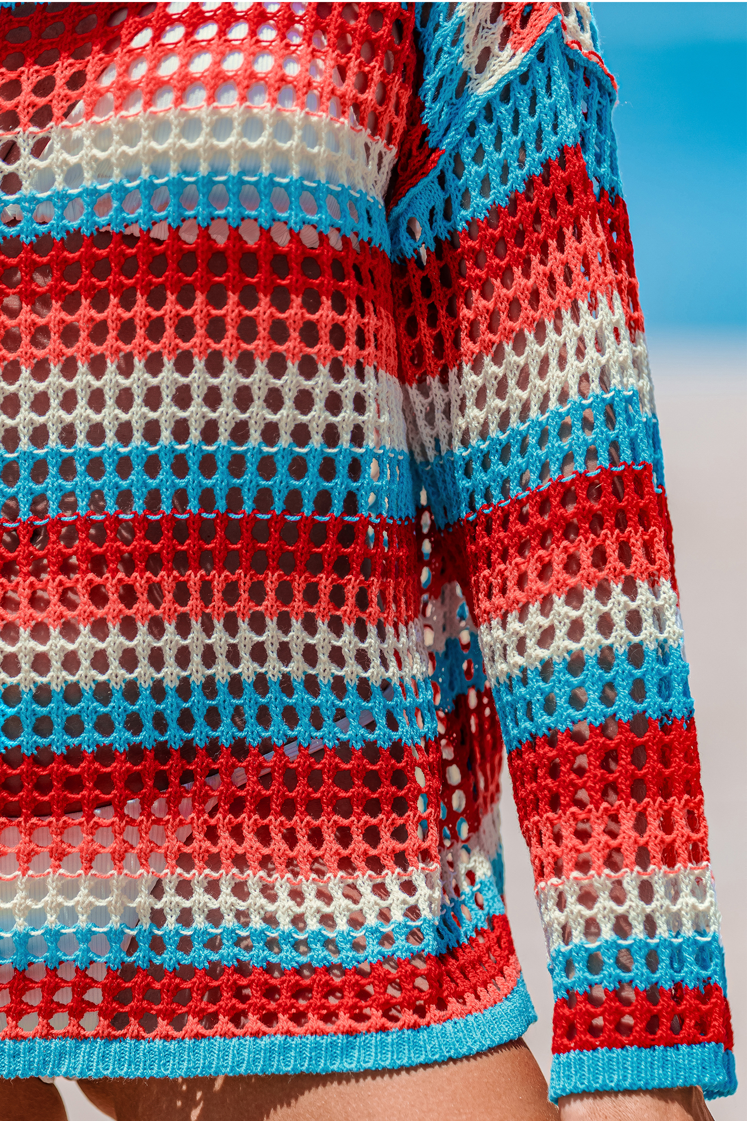 Il top a righe Good Energy offre colore e comfort in egual misura! Con la sua morbida scollatura rotonda e le maniche lunghe, è il capo perfetto per le giornate in spiaggia e non solo.
