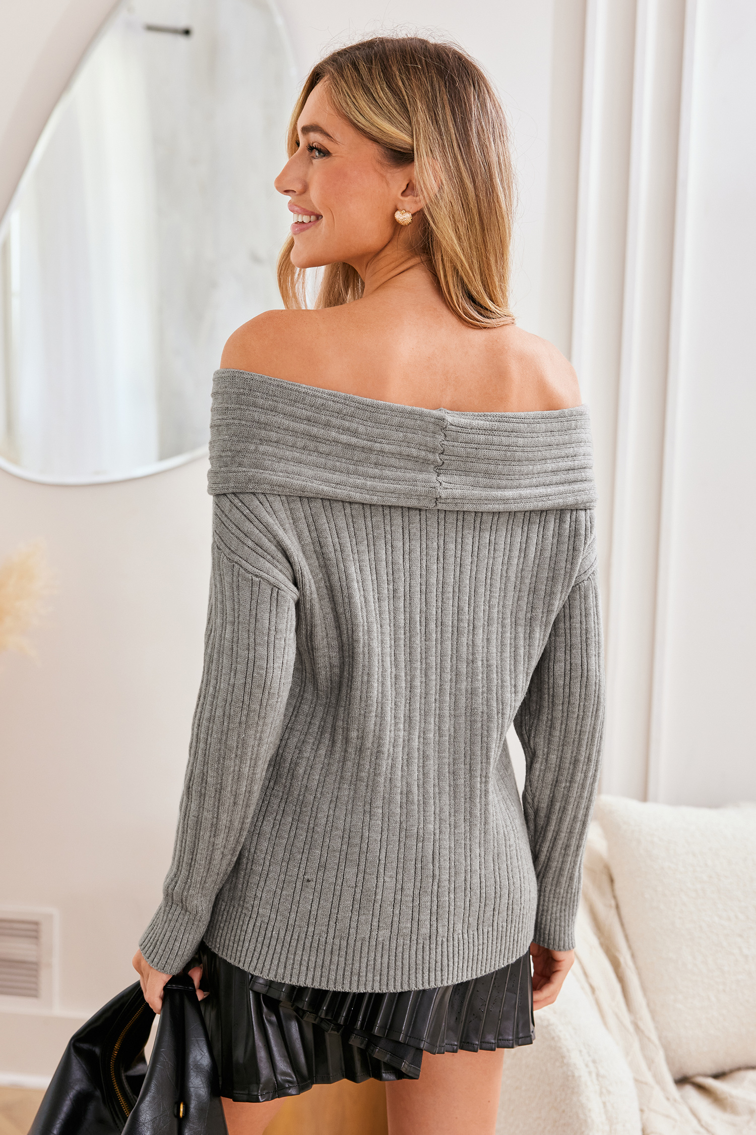 Il maglione grigio a maniche lunghe con spalle scoperte è qui per far girare la testa! Con la sua scollatura alla moda e il tessuto morbido, puoi indossarlo elegante per una serata fuori o mantenerlo casual per una giornata accogliente a casa.