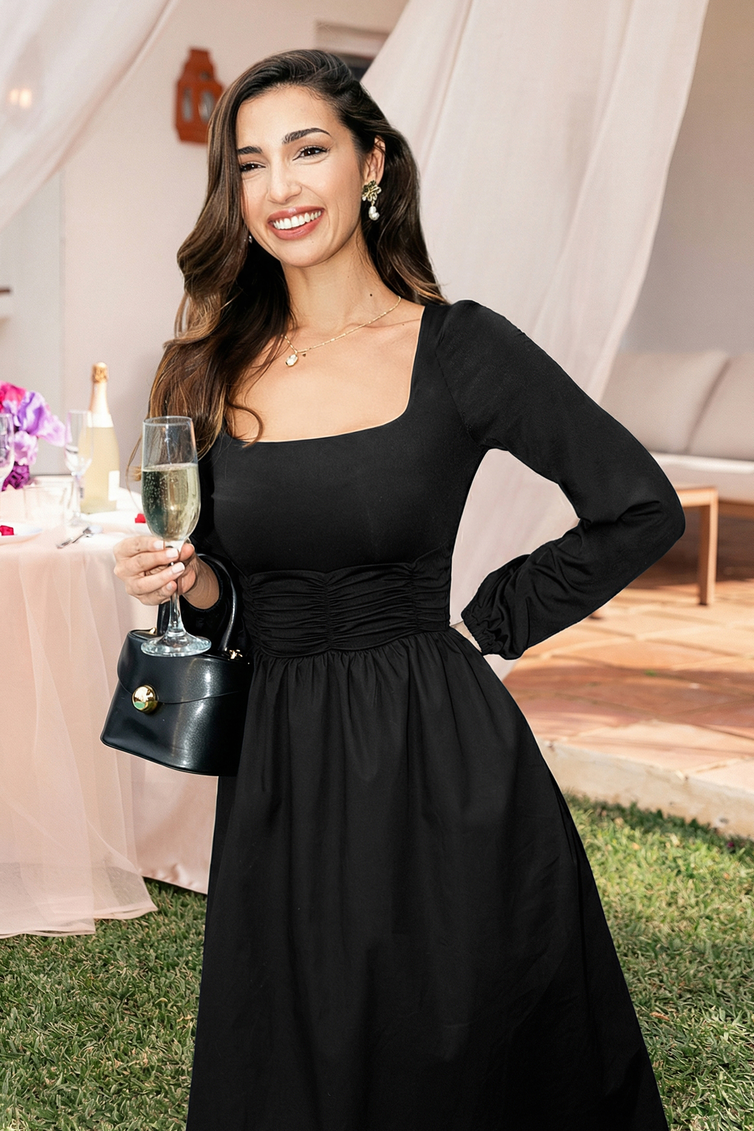 Preparati ad innamorarti del maxi abito nero Hopelessly Devoted! La scollatura quadrata e le maniche lunghe gli conferiscono un look senza tempo, mentre la vita arricciata e la lunghezza maxi lo rendono comodo da indossare tutta la sera.