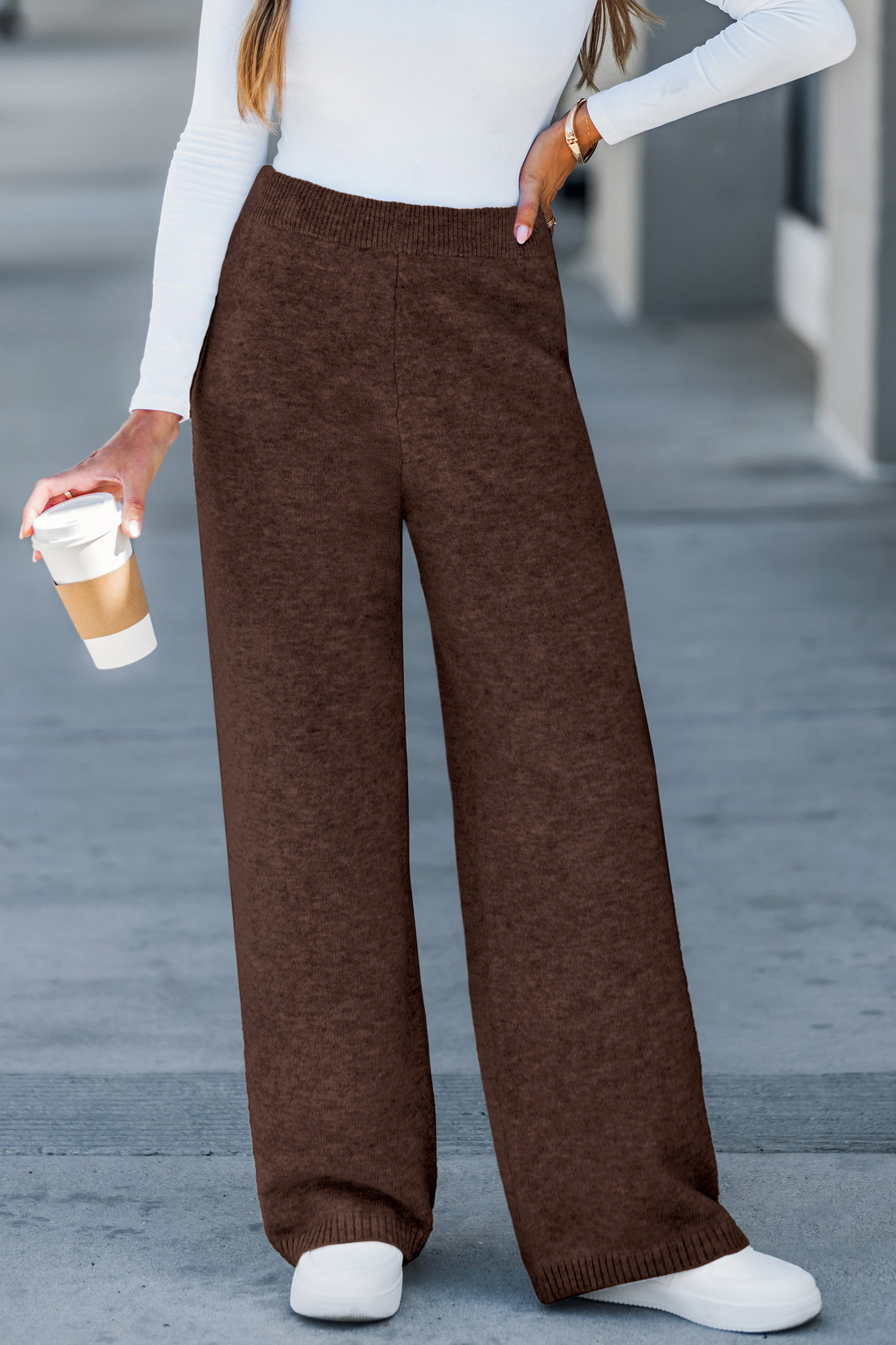 Rilassati con stile con i pantaloni marroni Hushed Tones! La loro gamba ampia e la morbida lavorazione li rendono perfetti per le giornate comode a casa o per i look casual del fine settimana.