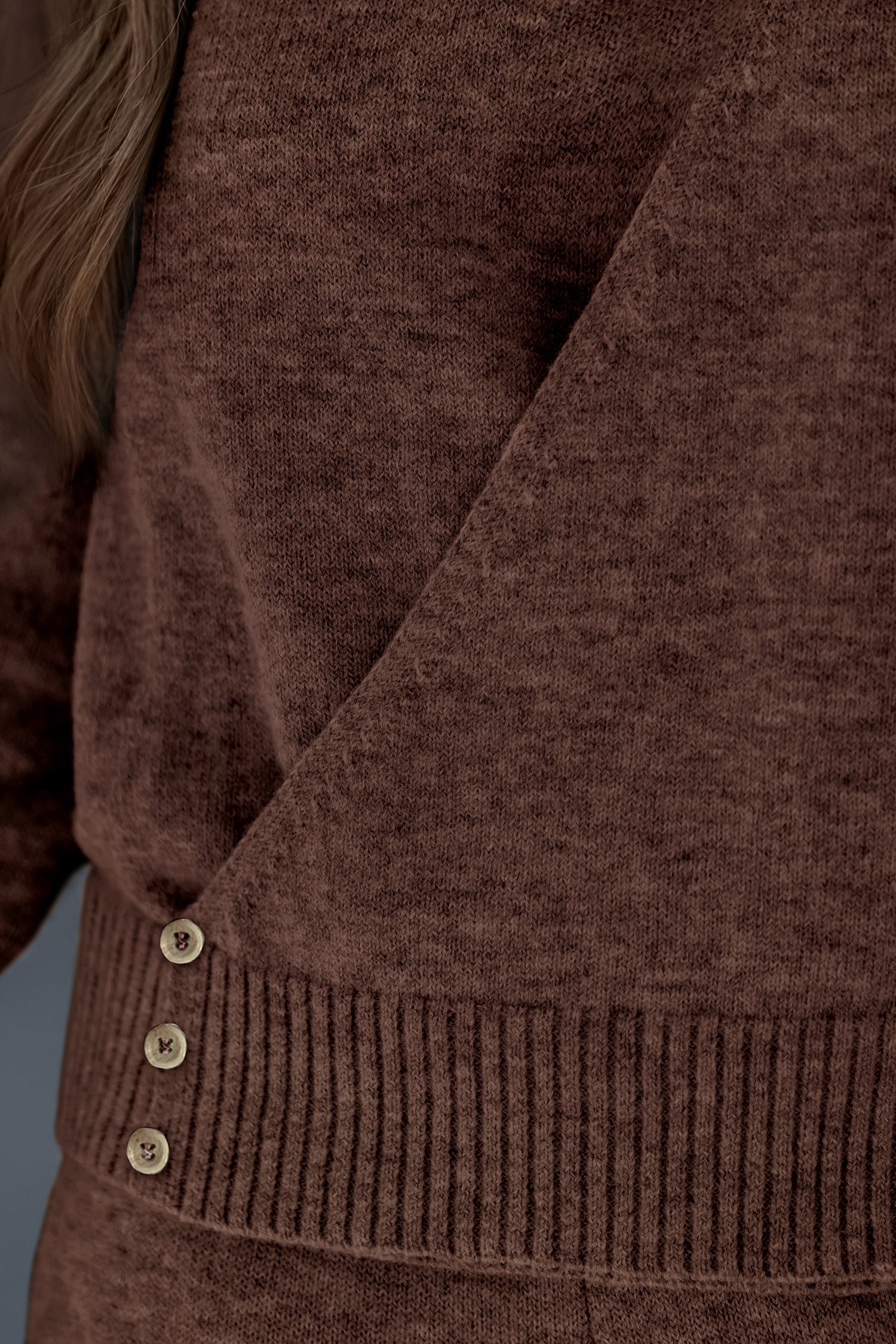 Il maglione marrone In the Know è moderno, elegante e disinvolto! Le maniche lunghe con scollo rotondo e i dettagli sovrapposti lo rendono perfetto da indossare a strati o da solo per un look contemporaneo ed elegante.