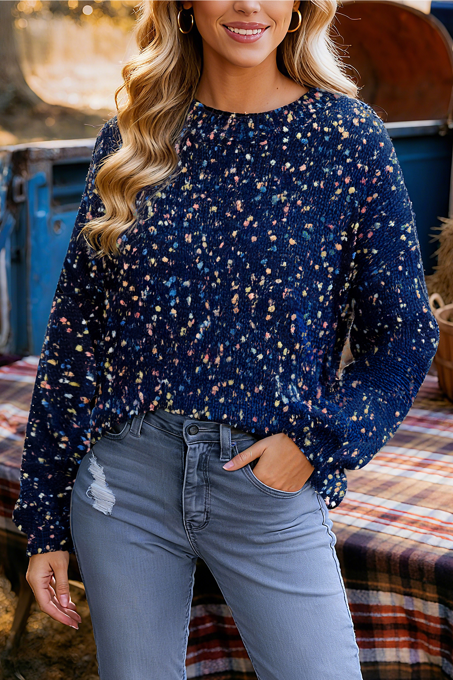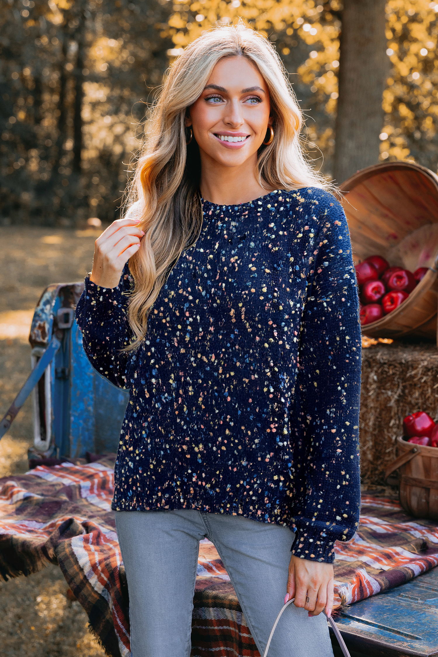 Il maglione blu Inside Scoop è perfetto per un look casual e accogliente! La vestibilità comoda con scollo rotondo e le maniche lunghe lo rendono il capo perfetto per creare strati eleganti e facili da indossare.