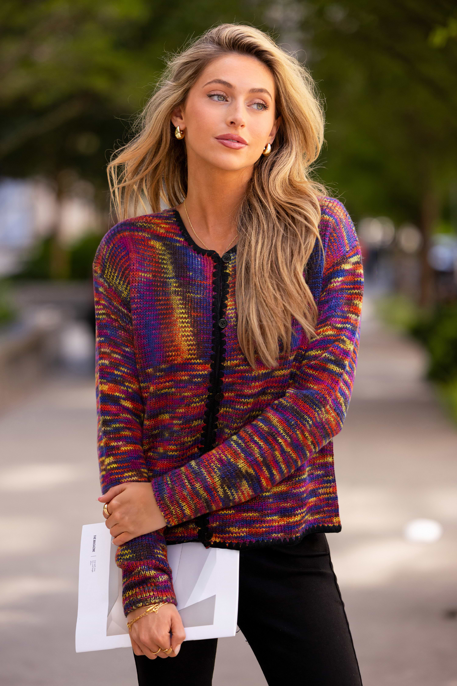 Il cardigan It's Surreal Rainbow trasmette pura energia positiva! Lo scollo rotondo e le maniche lunghe assicurano un look comodo, mentre la fantasia arcobaleno aggiunge un tocco di allegria a ogni capo.