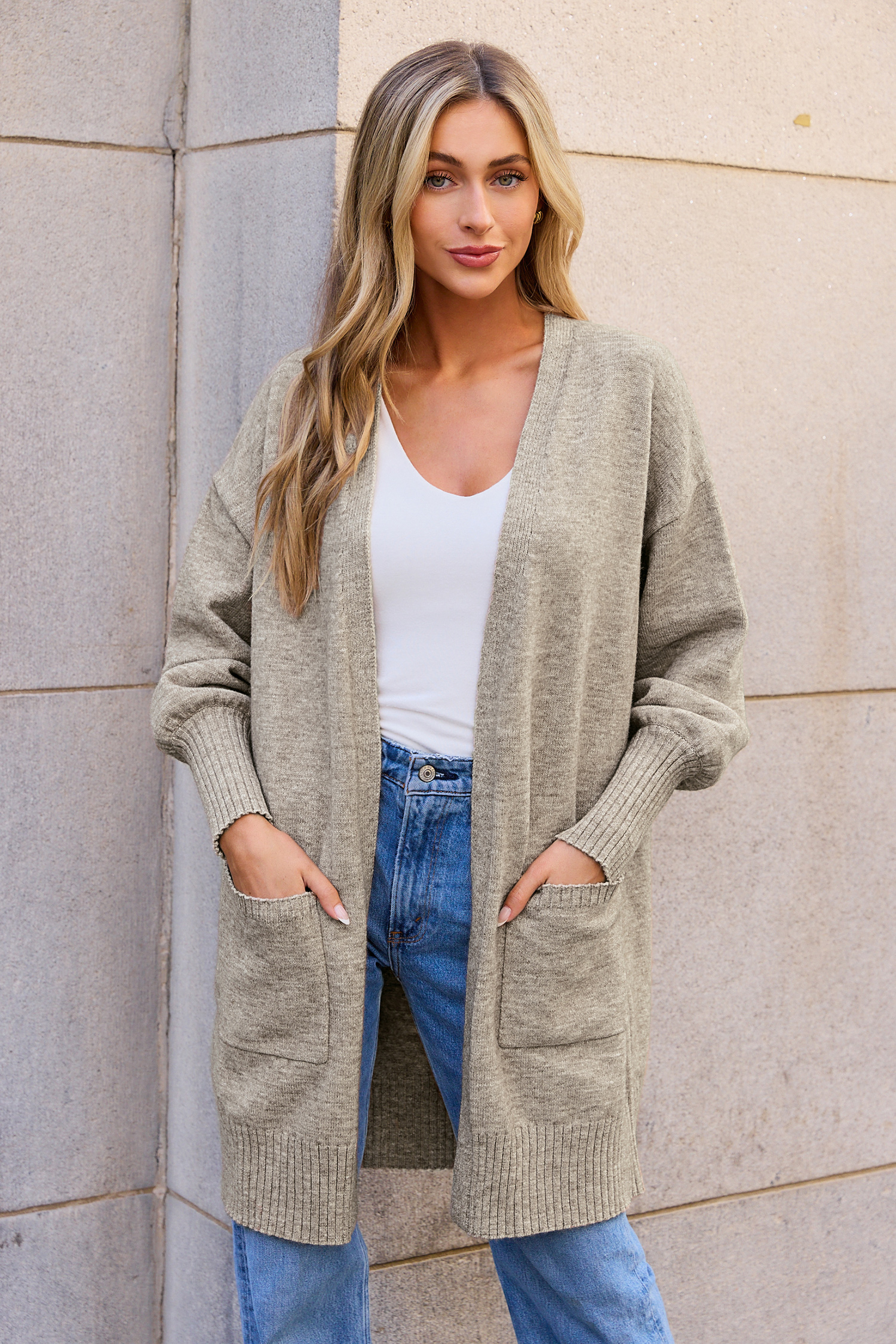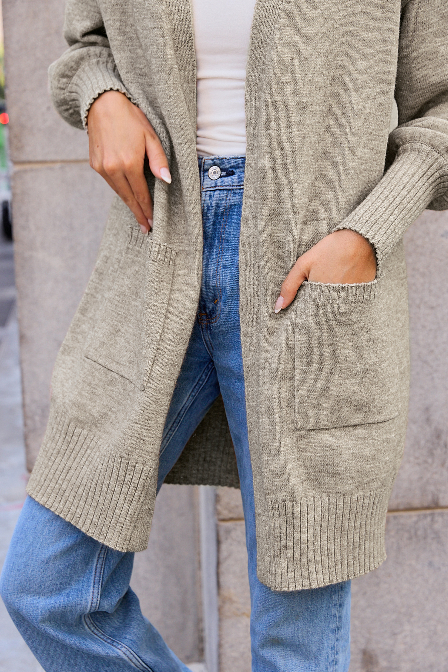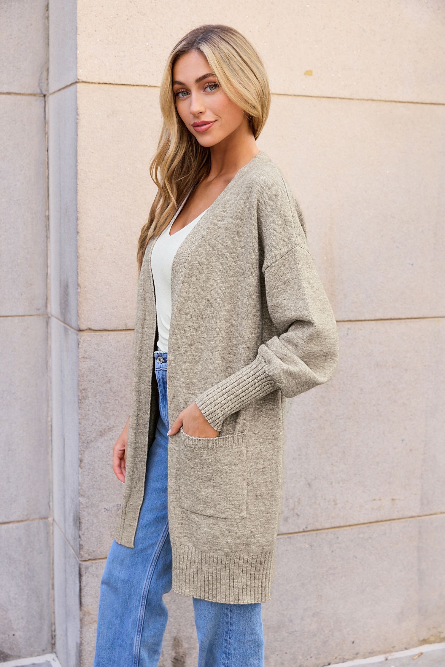 Cardigan lungo con maniche a sbuffo e apertura frontale in maglia