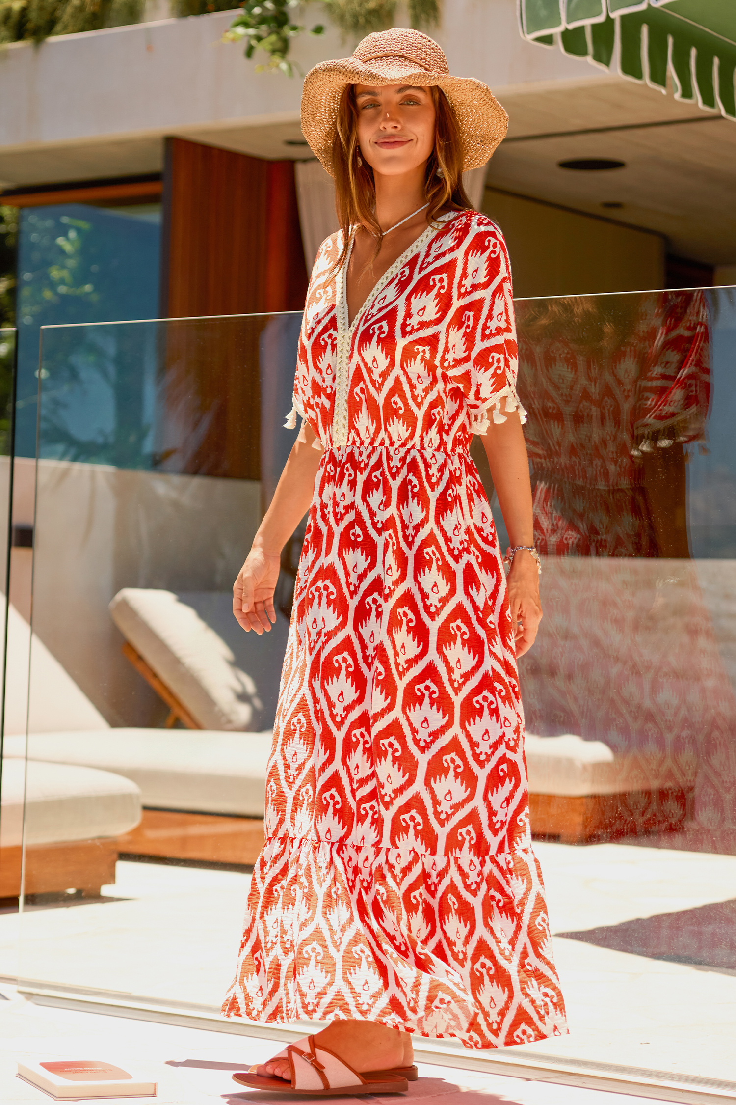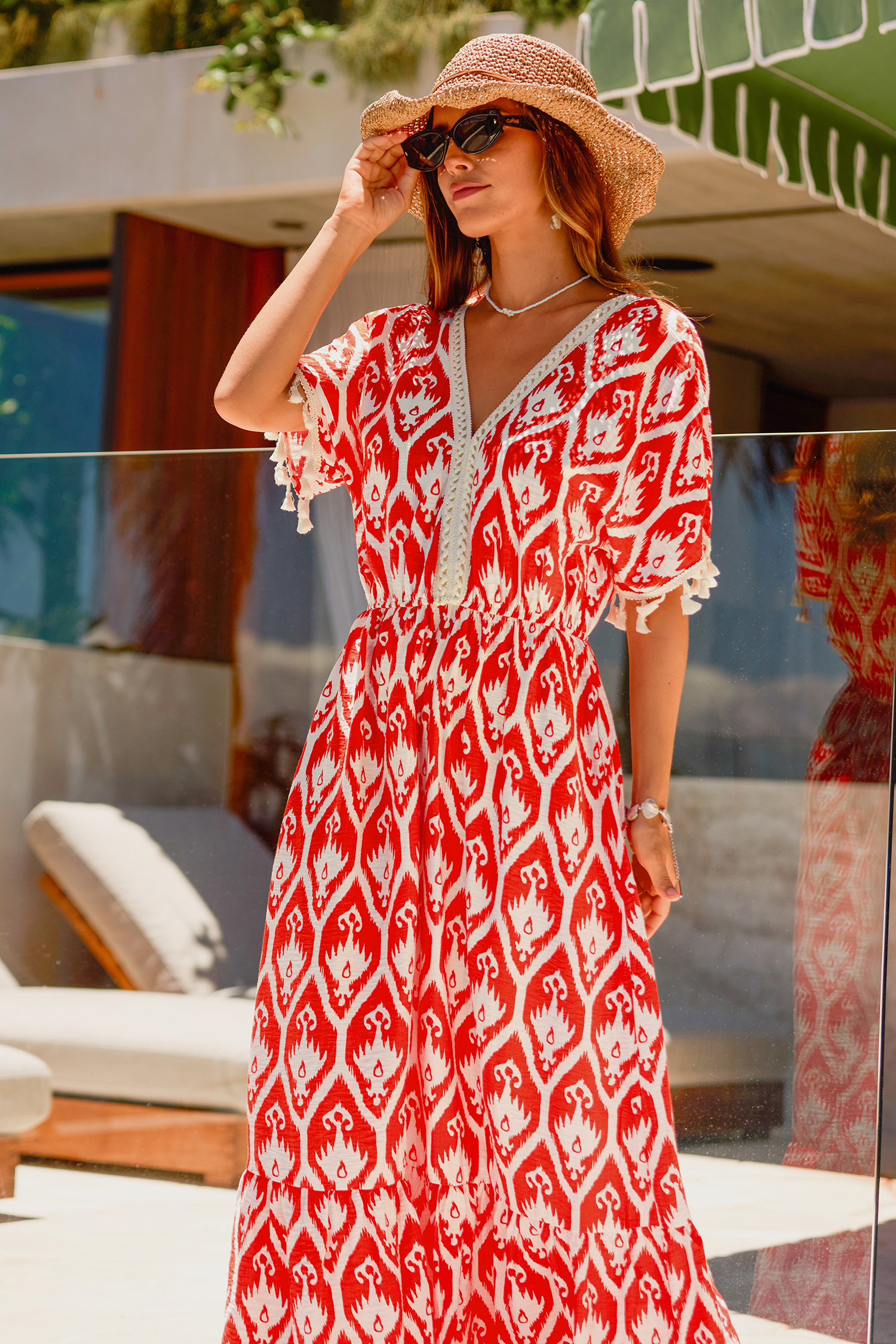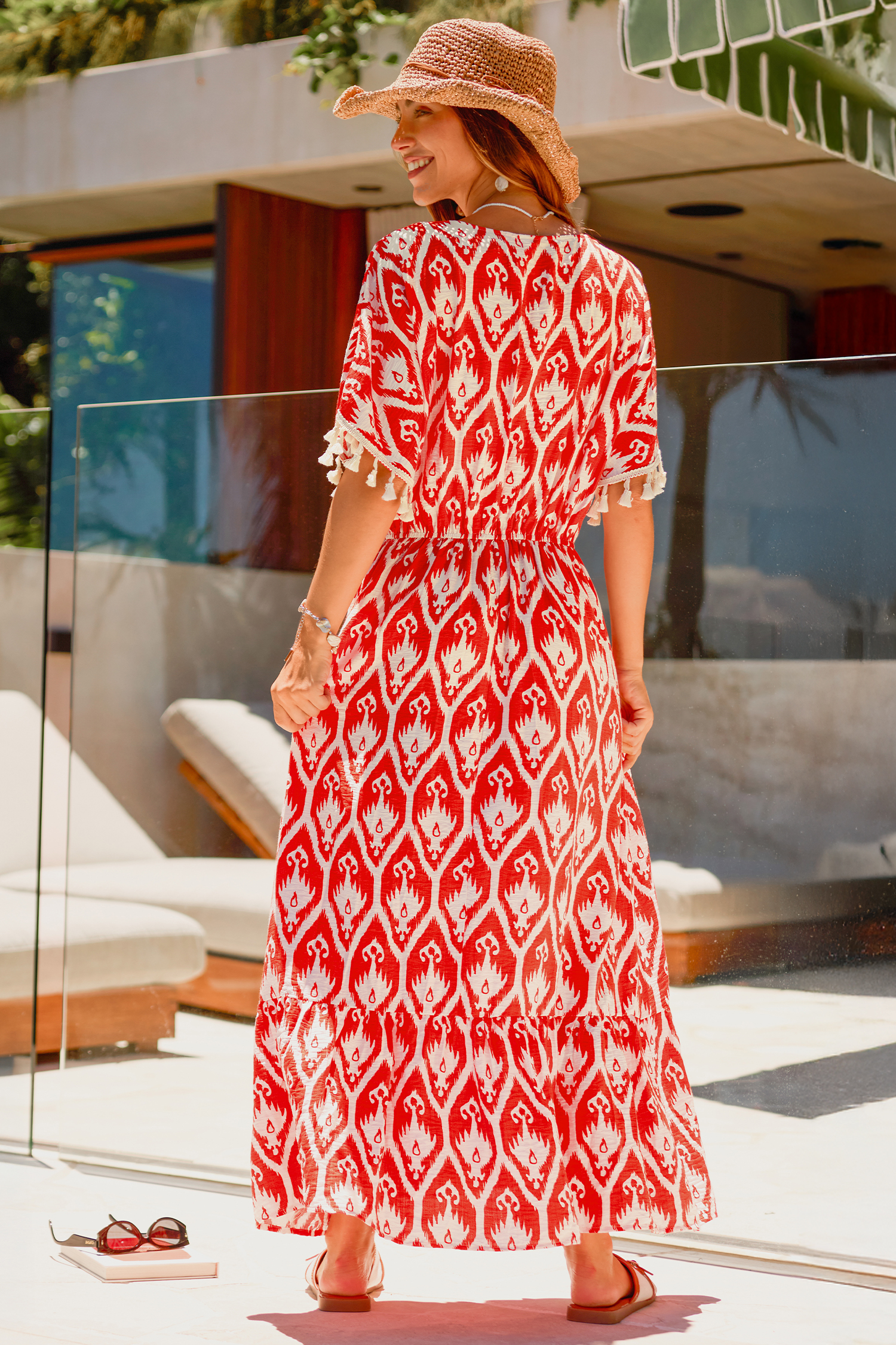 L'abito lungo decorato LA Sunset è perfetto per creare un look semplice e accattivante! Le maniche corte con scollo a V e la lunghezza maxi lo rendono fluido, perfetto per qualsiasi evento.