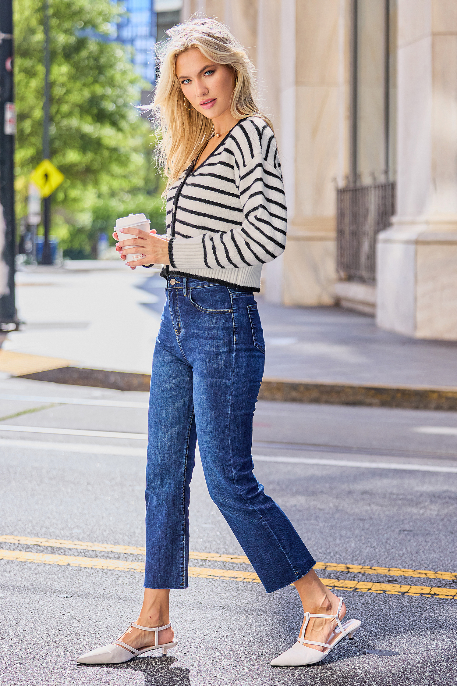 Il cardigan a righe Major Mood aggiunge un tocco di allegria a qualsiasi look casual! La scollatura a V dal taglio corto e la morbida lavorazione a maglia lo rendono il capo perfetto da indossare per uscire.