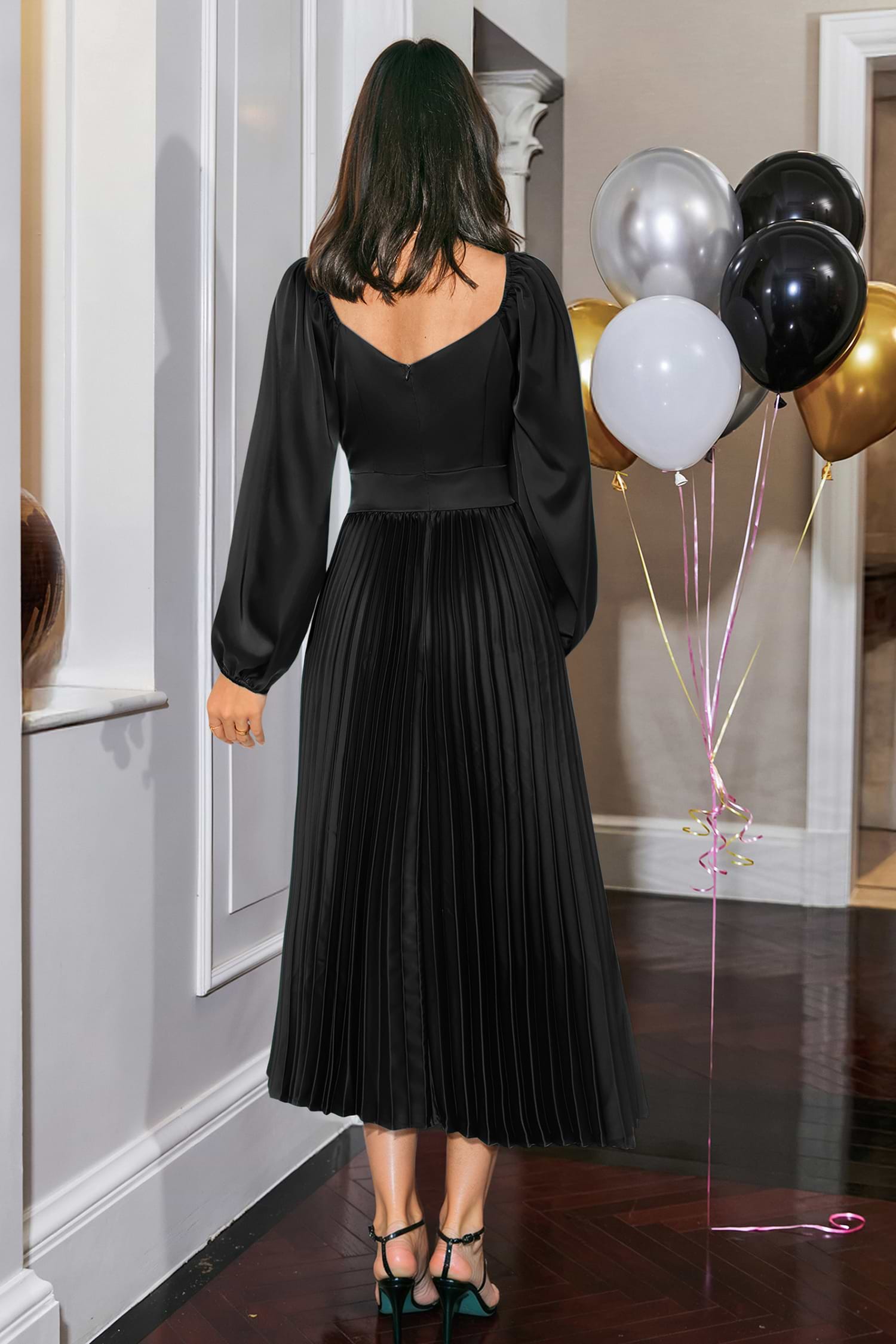 L'abito midi nero Midnight Tango è perfetto per serate indimenticabili! Con scollo a V, maniche lunghe e lunghezza midi plissettata, dona un'energia civettuola e sicura a ogni passo.