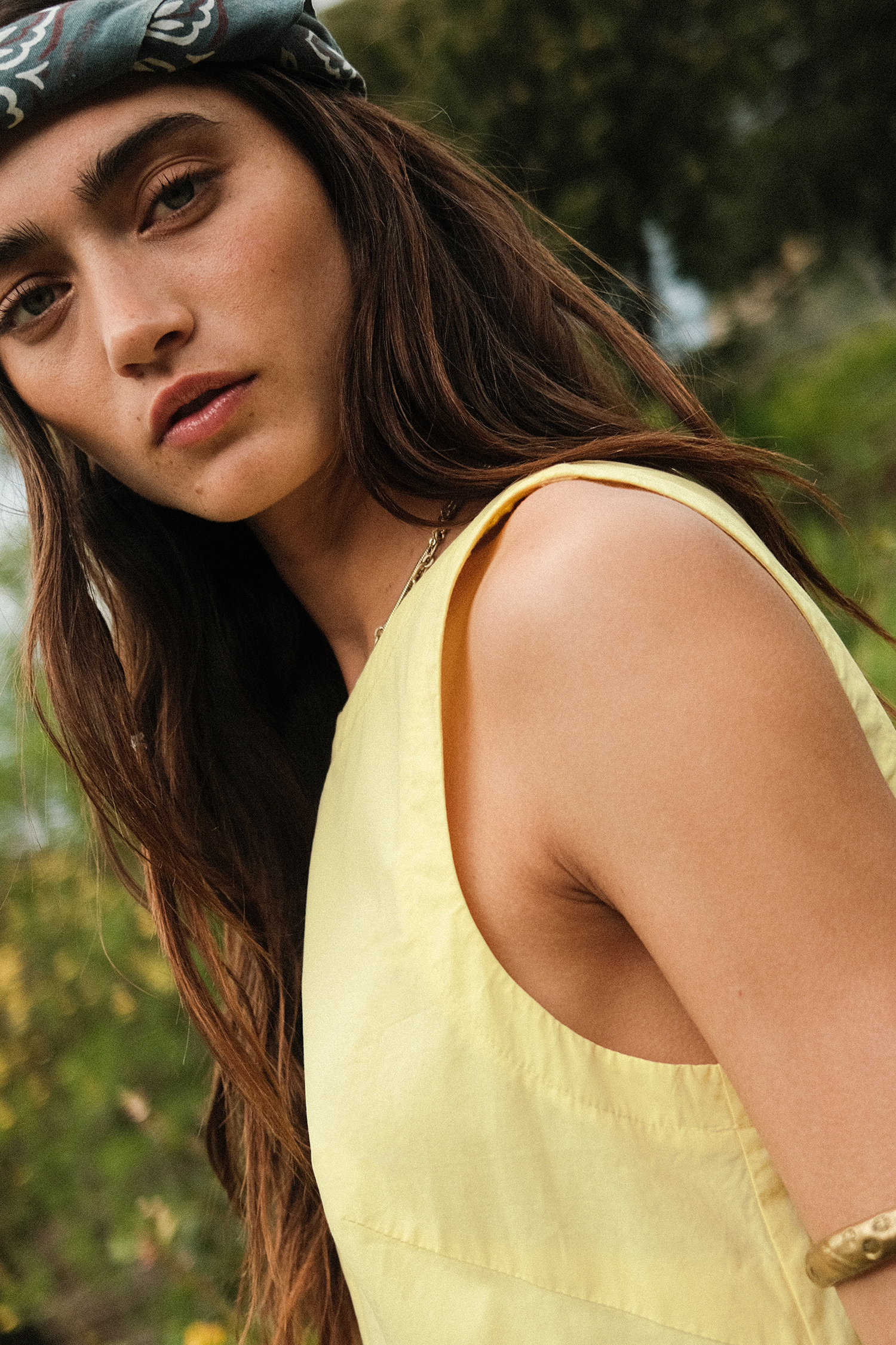 Pagliaccetto con tasca applicata sul collo rotondo giallo