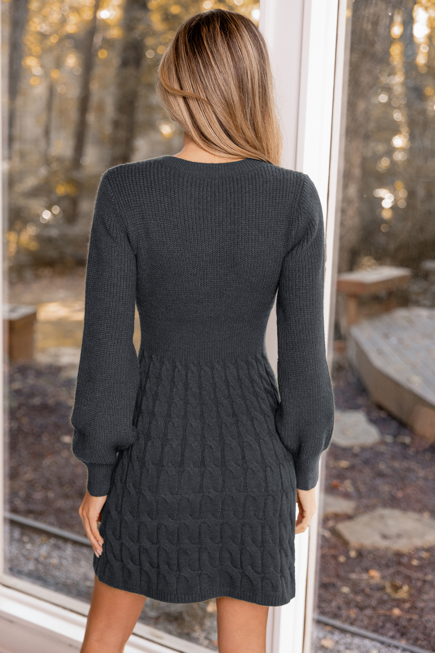 L'abito blu Morning Brew è un capo essenziale per l'autunno! Lo scollo rotondo e le maniche lunghe lo rendono perfetto da indossare a strati con i collant per uno stile casual e quotidiano.