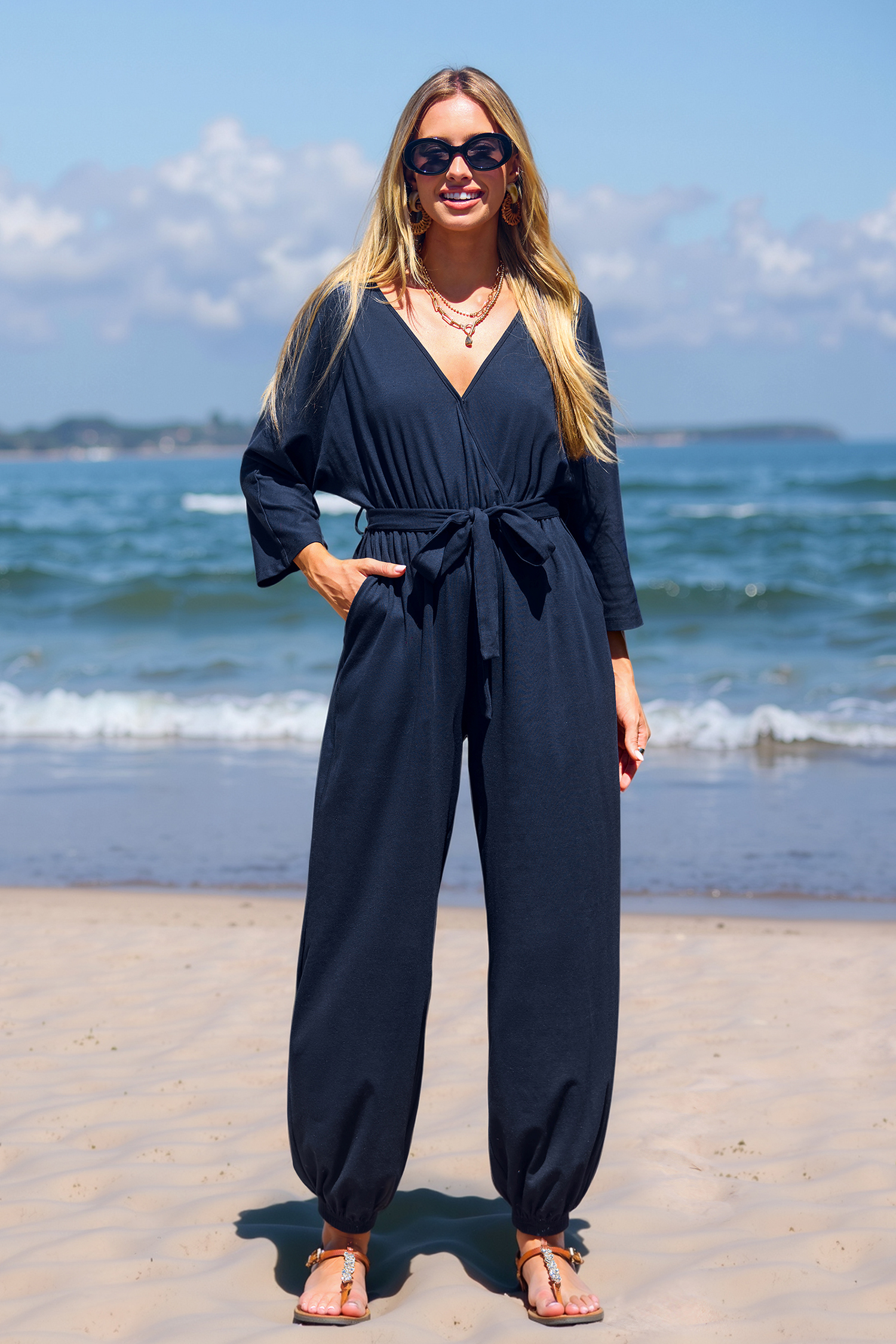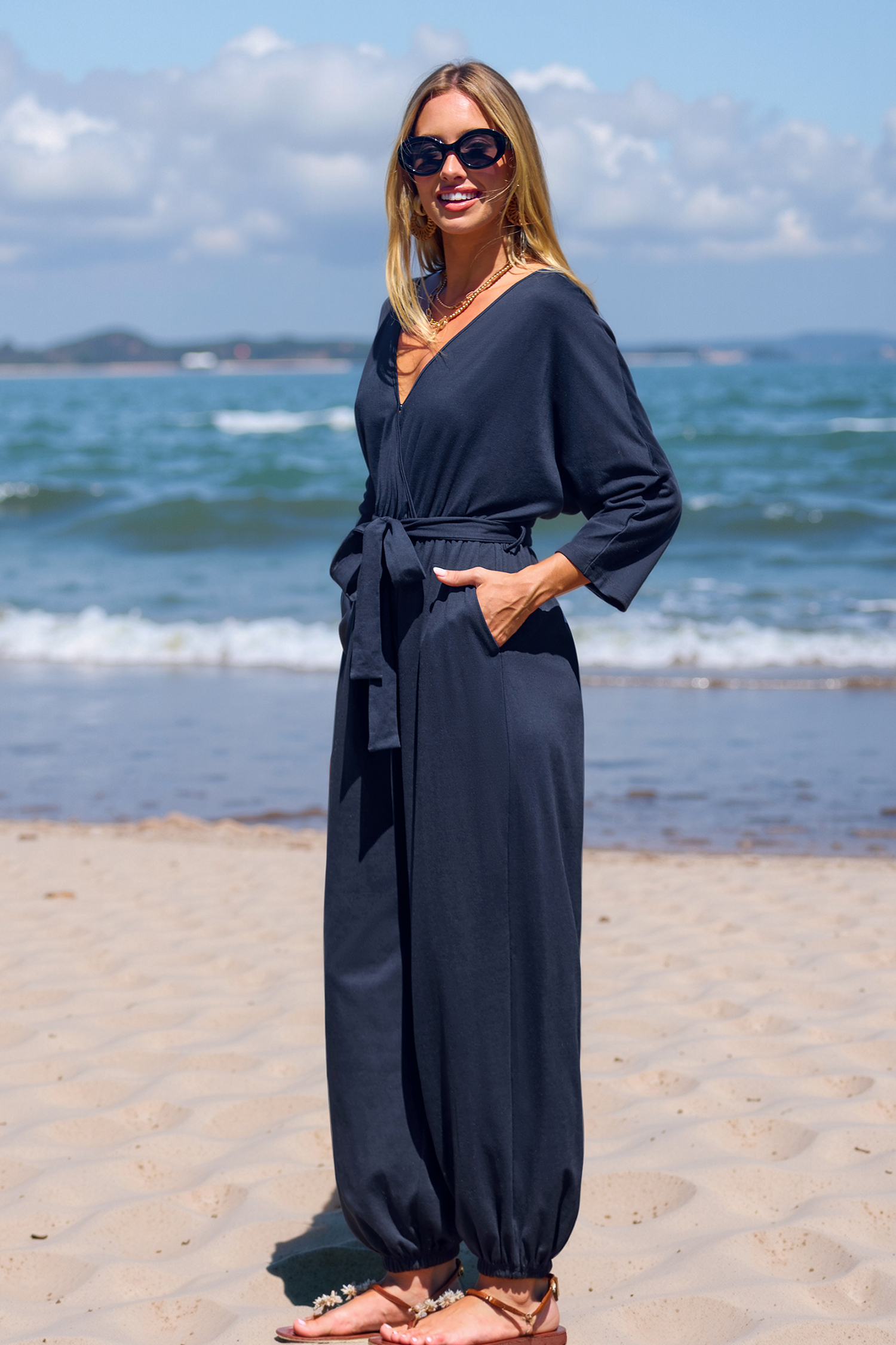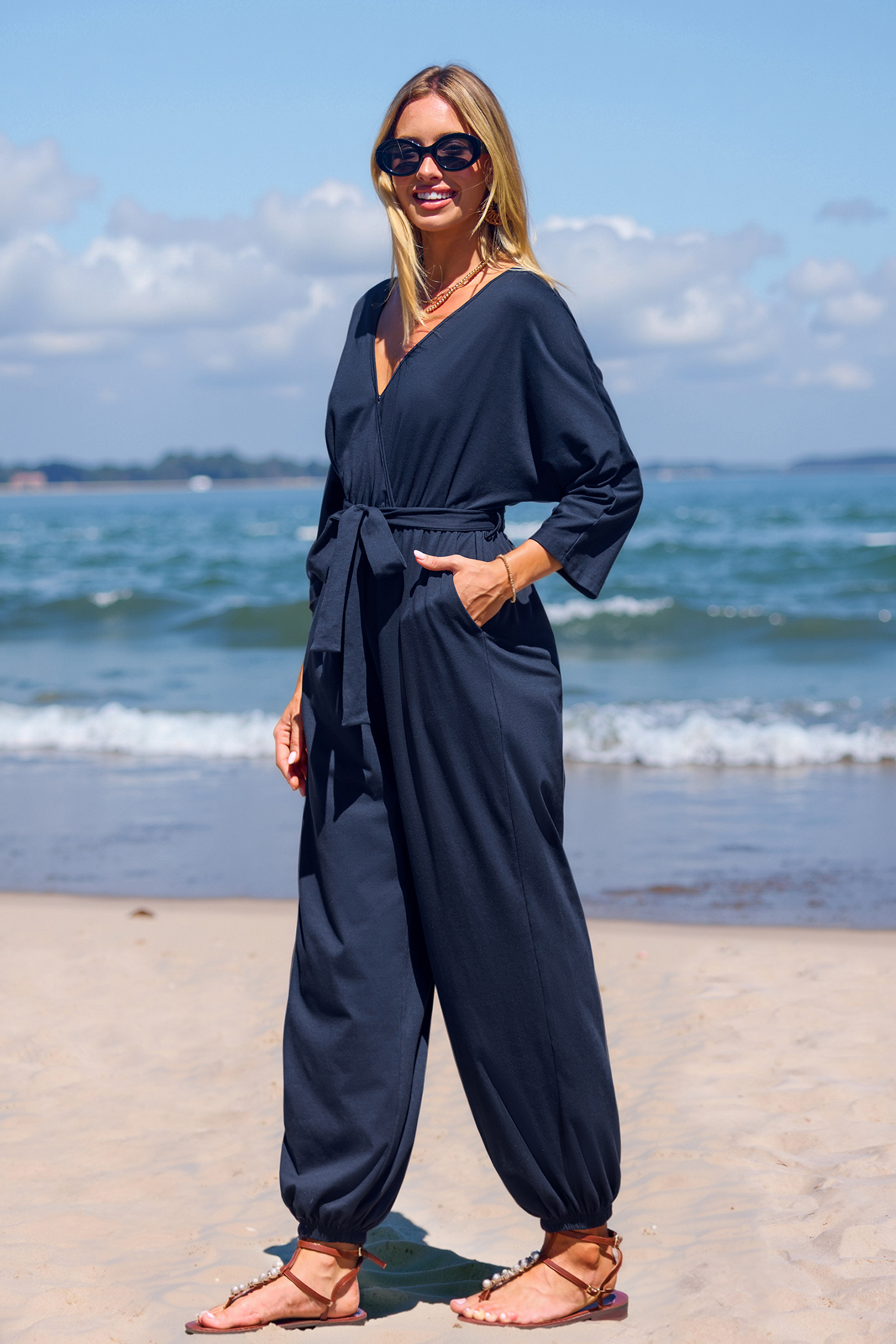 Tuta con gamba affusolata in jersey blu navy