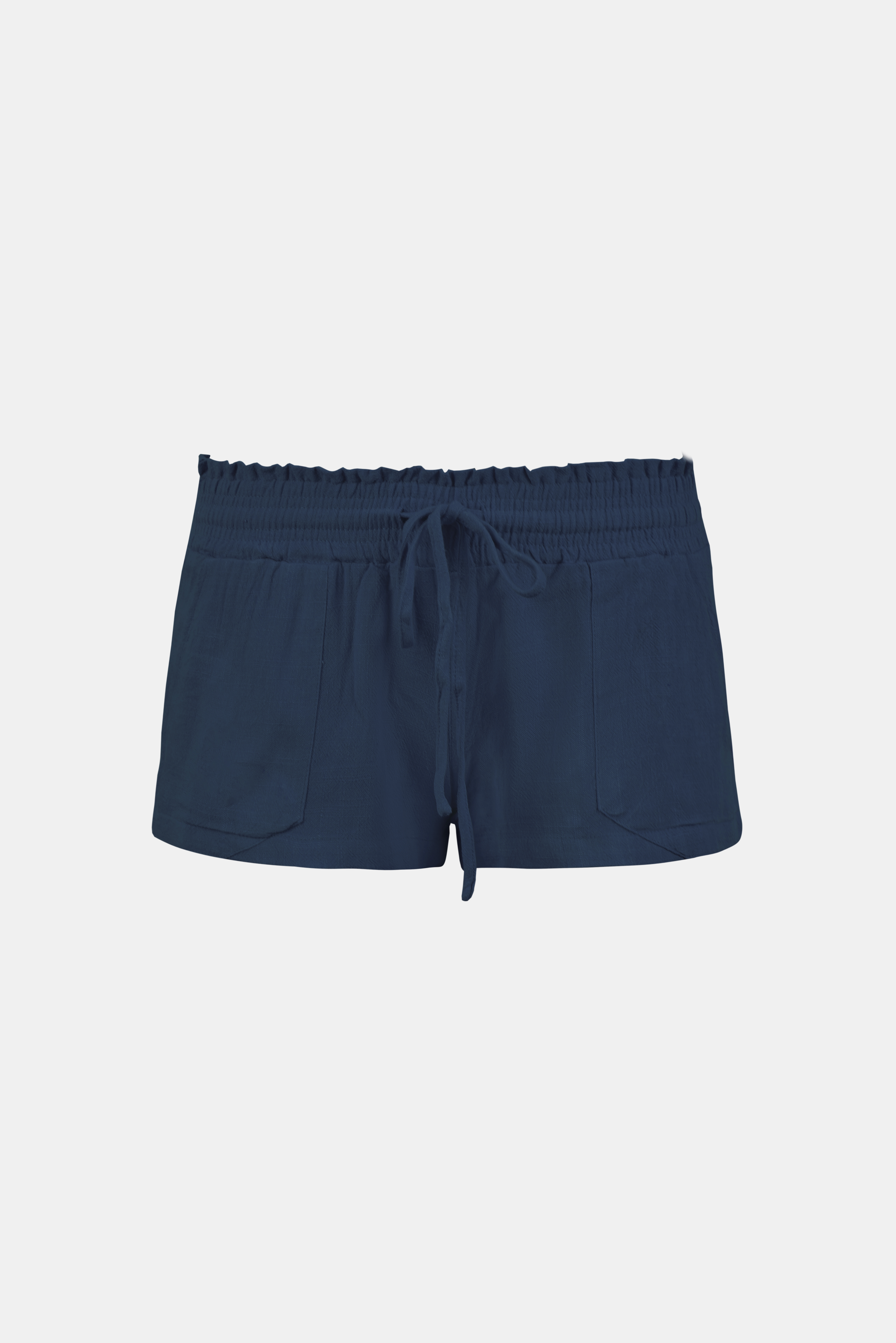 Pantaloncini a gamba dritta a vita bassa blu scuro con vita smock