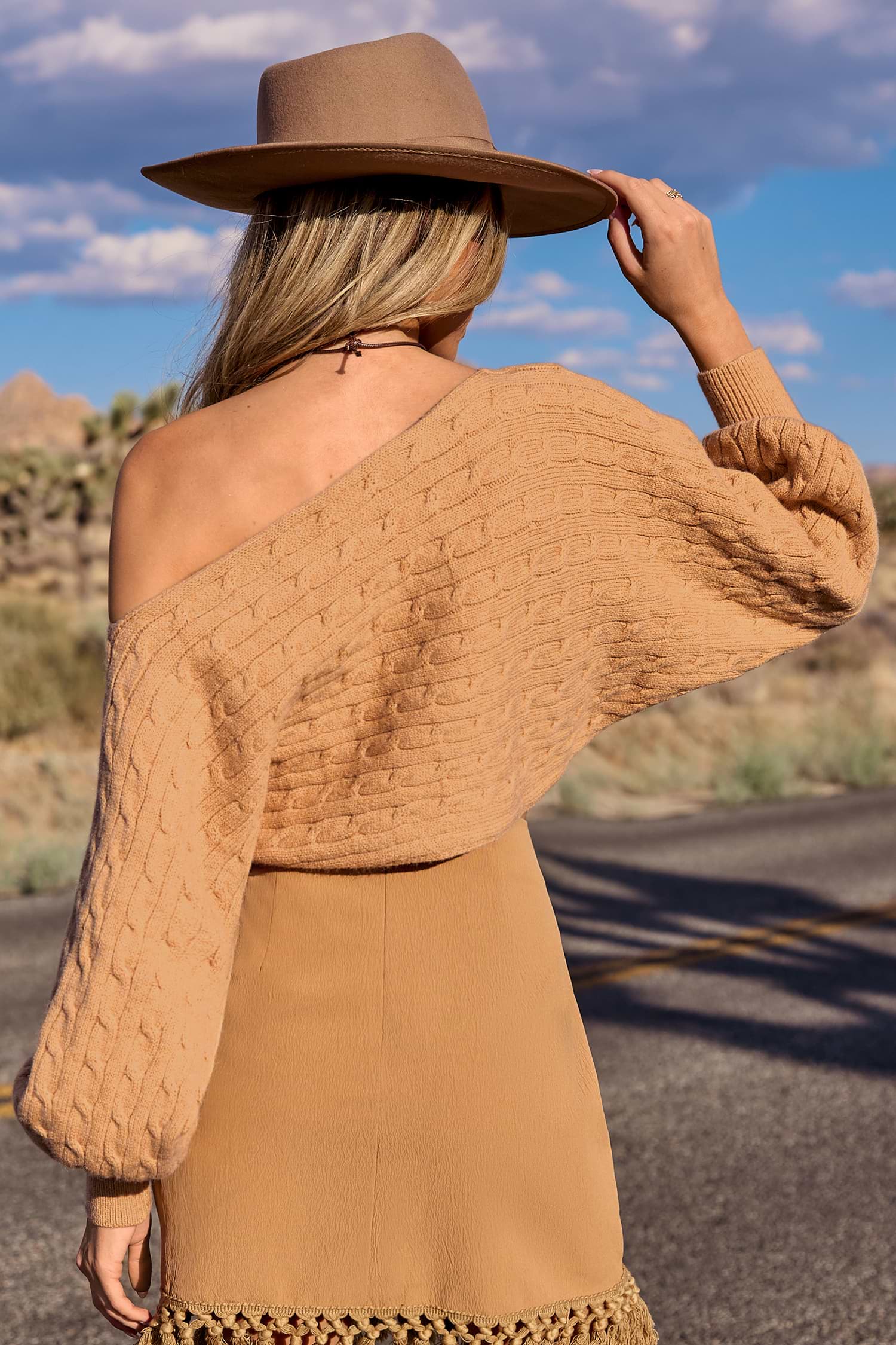 Maglione arancione con maniche larghe e spalle scoperte