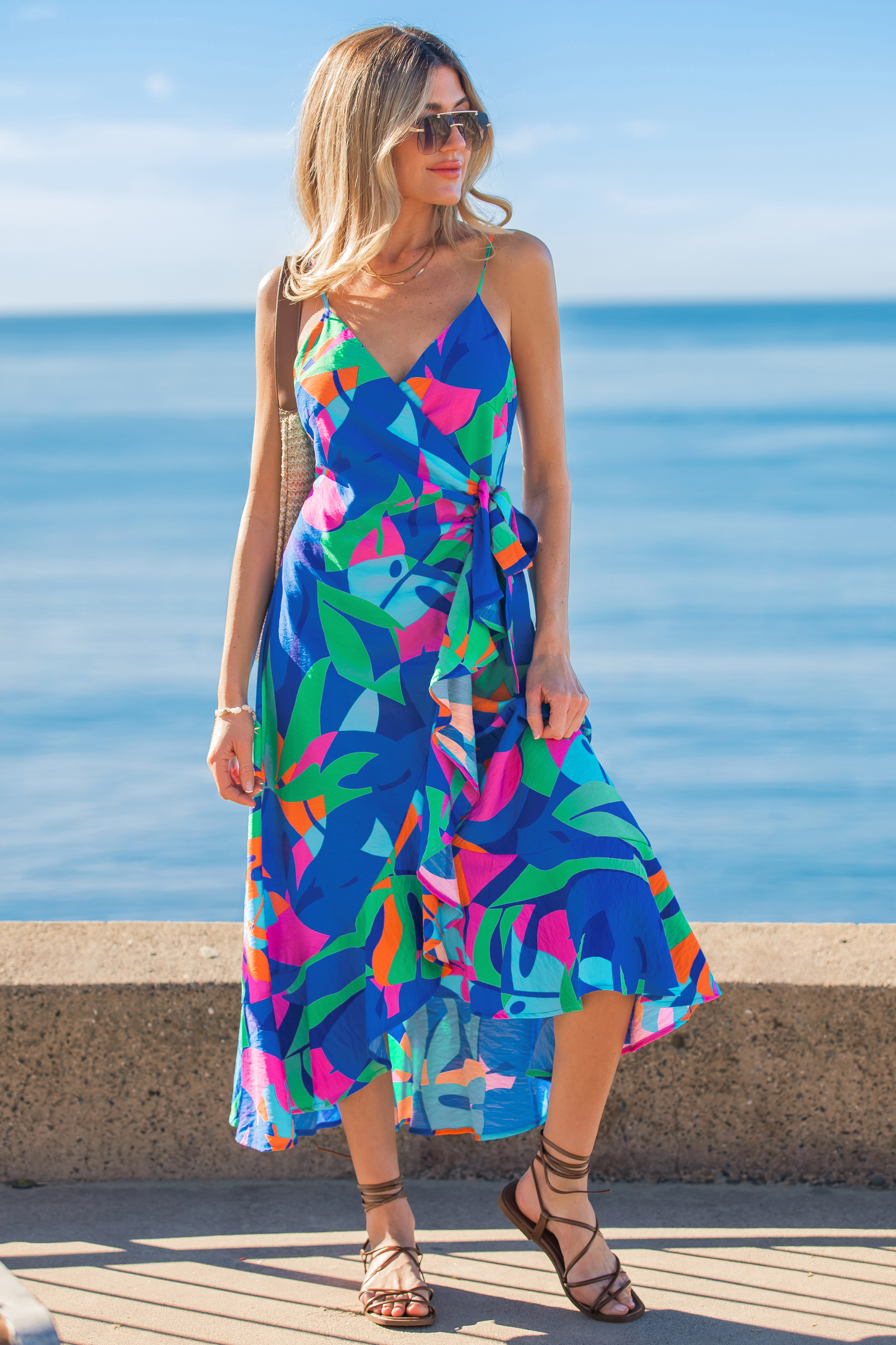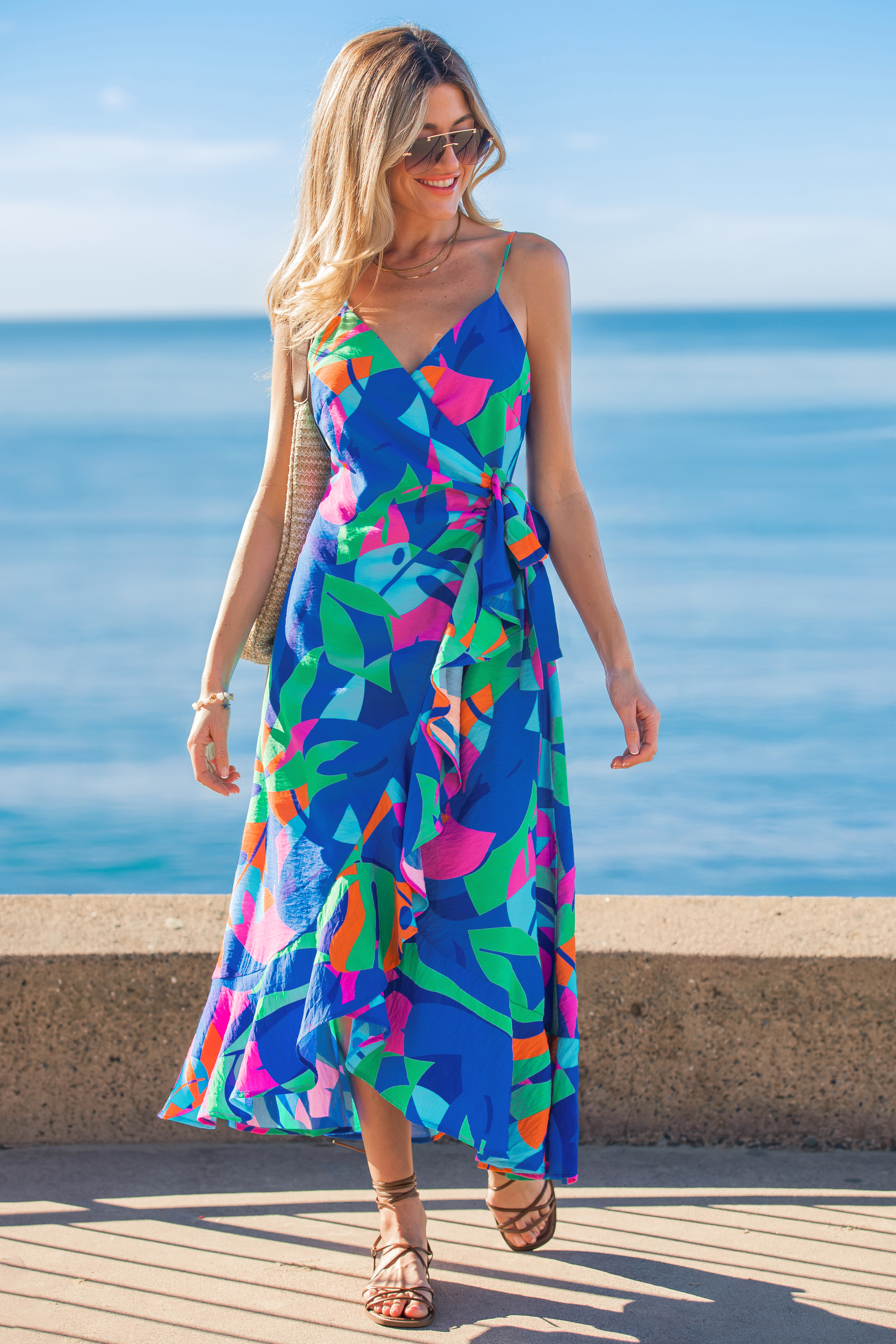 L'abito midi astratto Out of This World porta un'energia audace con un tocco giocoso! Il taglio senza maniche con scollo a V e le balze si fondono in una lunghezza midi per un look accattivante e divertente, perfetto per i programmi della stagione calda.