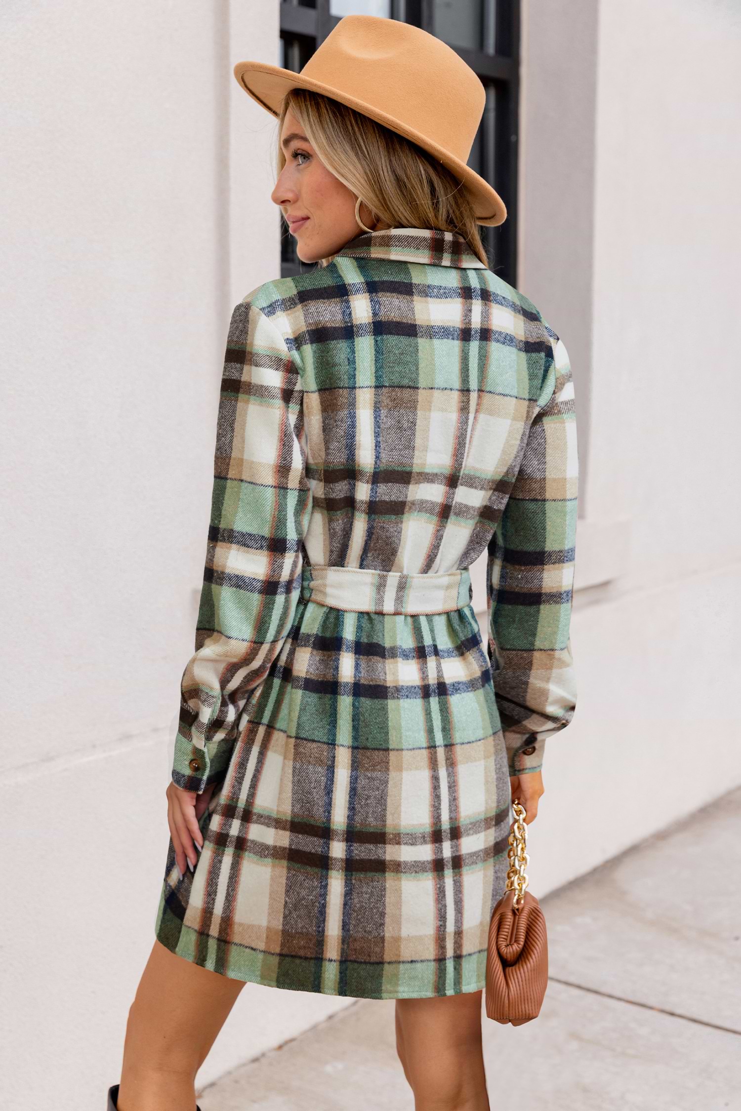 Il mini abito scozzese color crema pistacchio porta una ventata di freschezza e di allegria al tuo guardaroba! Le maniche lunghe con scollo a V e la cintura in vita creano un look disinvolto e lusinghiero.