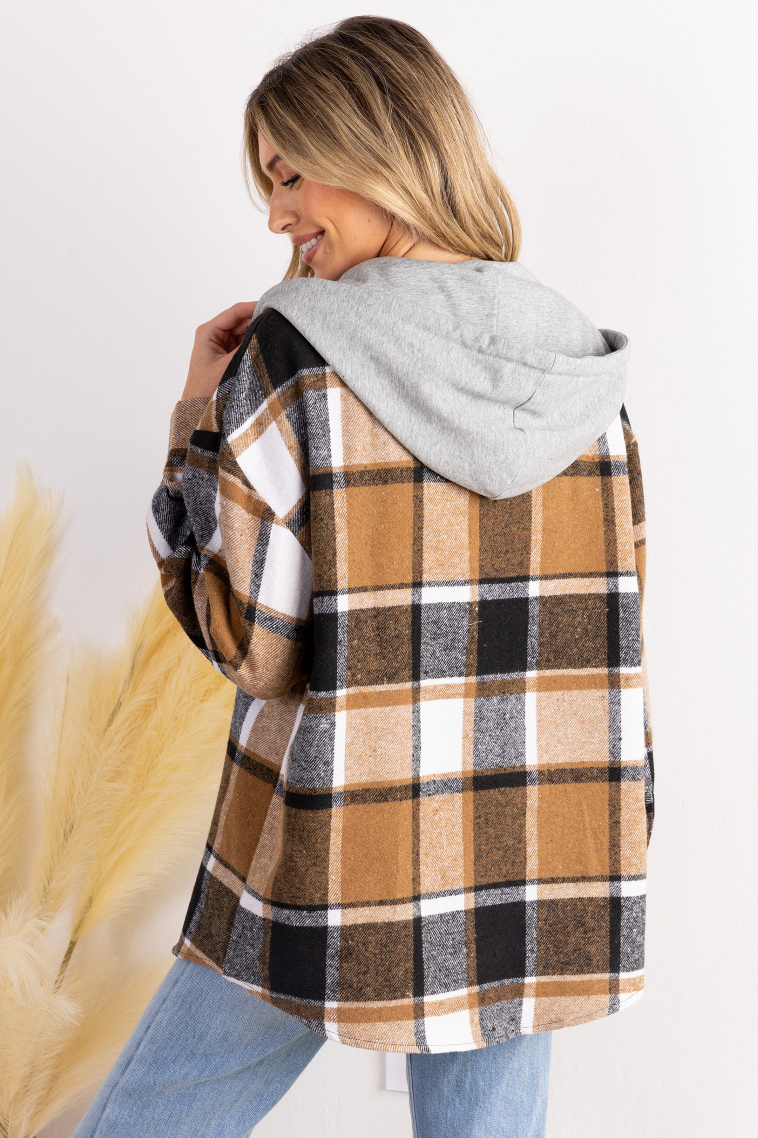 Giacca con cappuccio e coulisse a quadri e bottoni