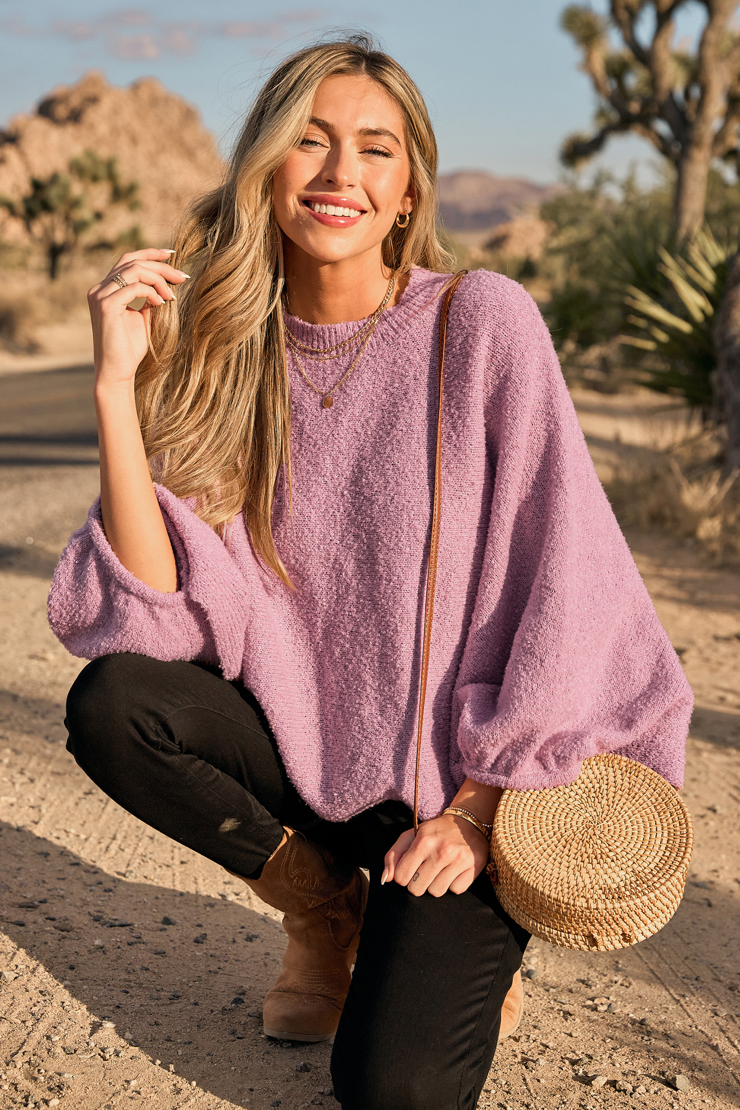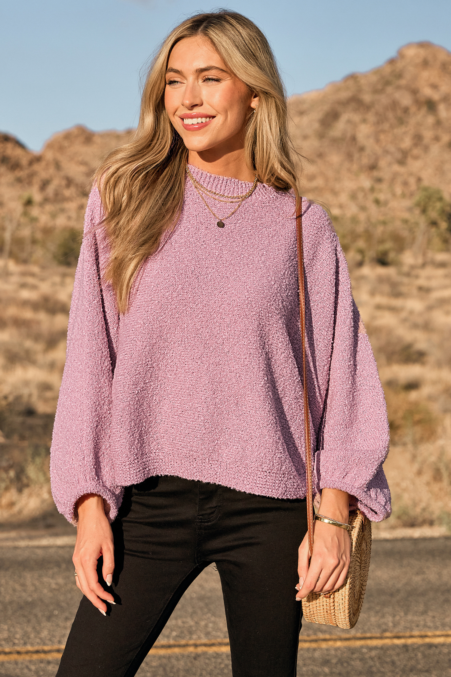 Aggiungi un tocco di colore alla tua collezione con questo top in maglia a maniche lunghe con scollo rotondo viola! La sua tonalità vivace e la maglia accogliente lo rendono la scelta perfetta per quelle giornate comode ed eleganti.