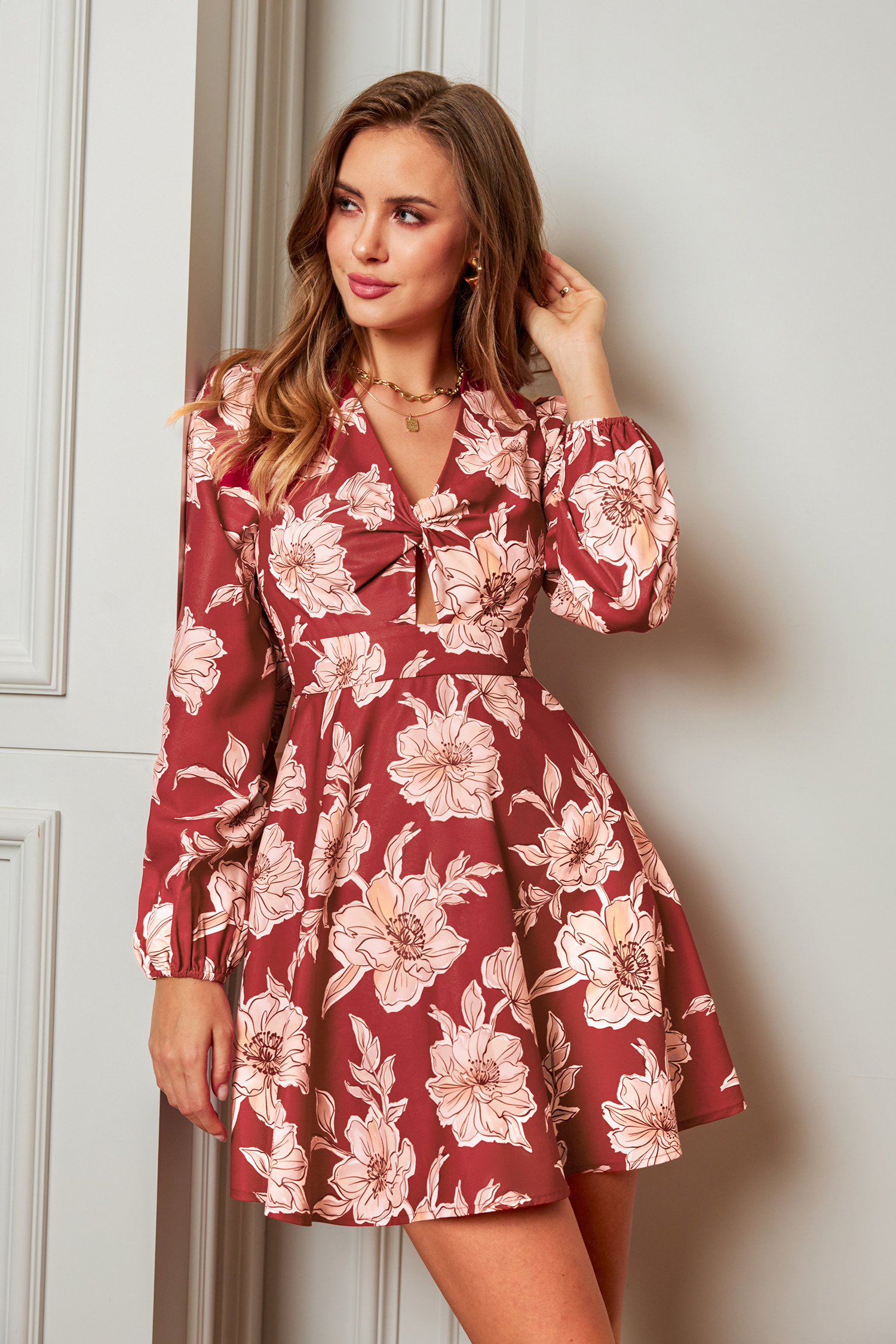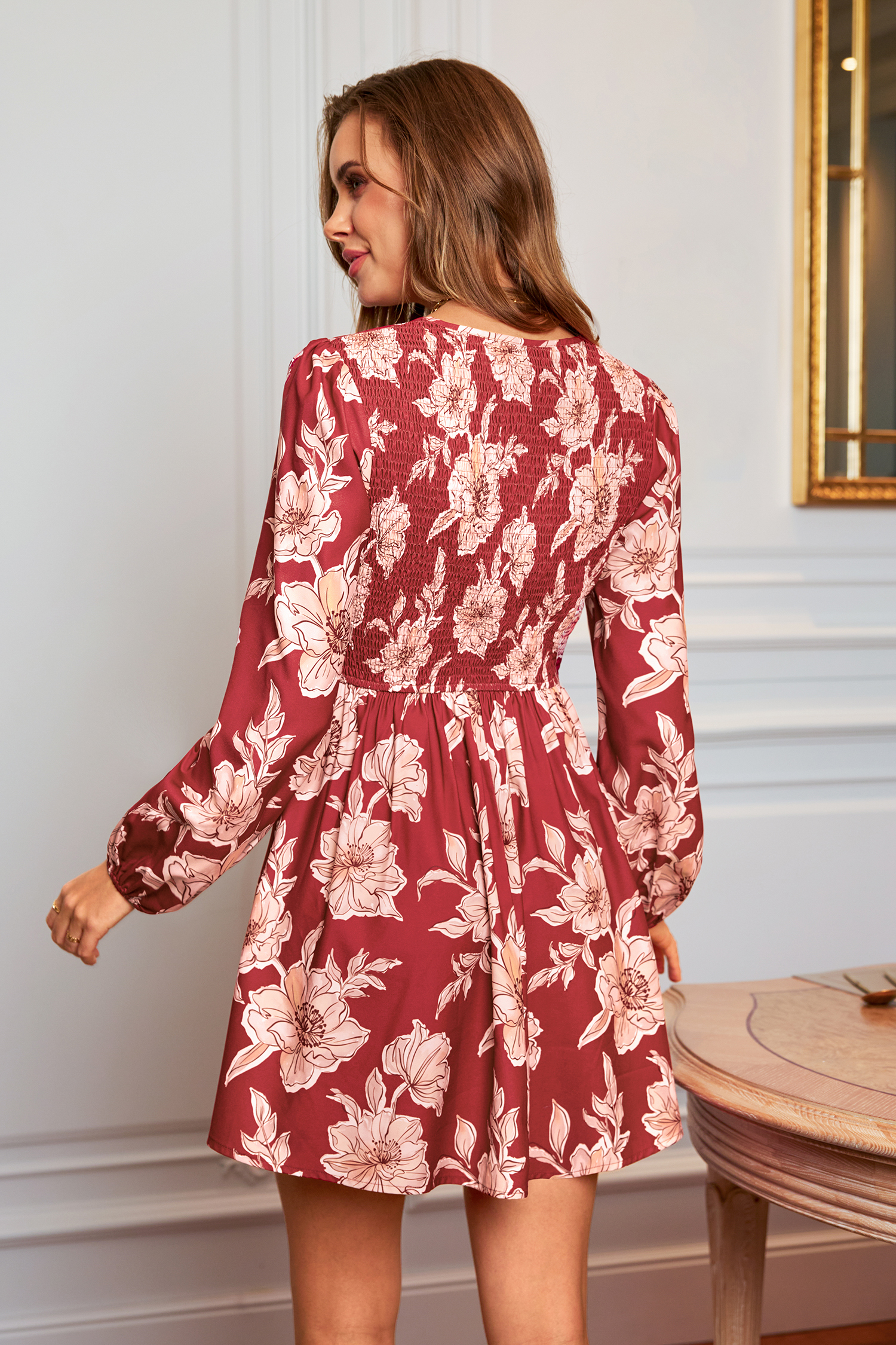 Fai il tuo ingresso con il mini abito floreale Ruby Blossom. Con audaci motivi floreali, un giocoso nodo frontale e eleganti maniche a sbuffo, sarai al centro dell'attenzione ovunque tu vada.