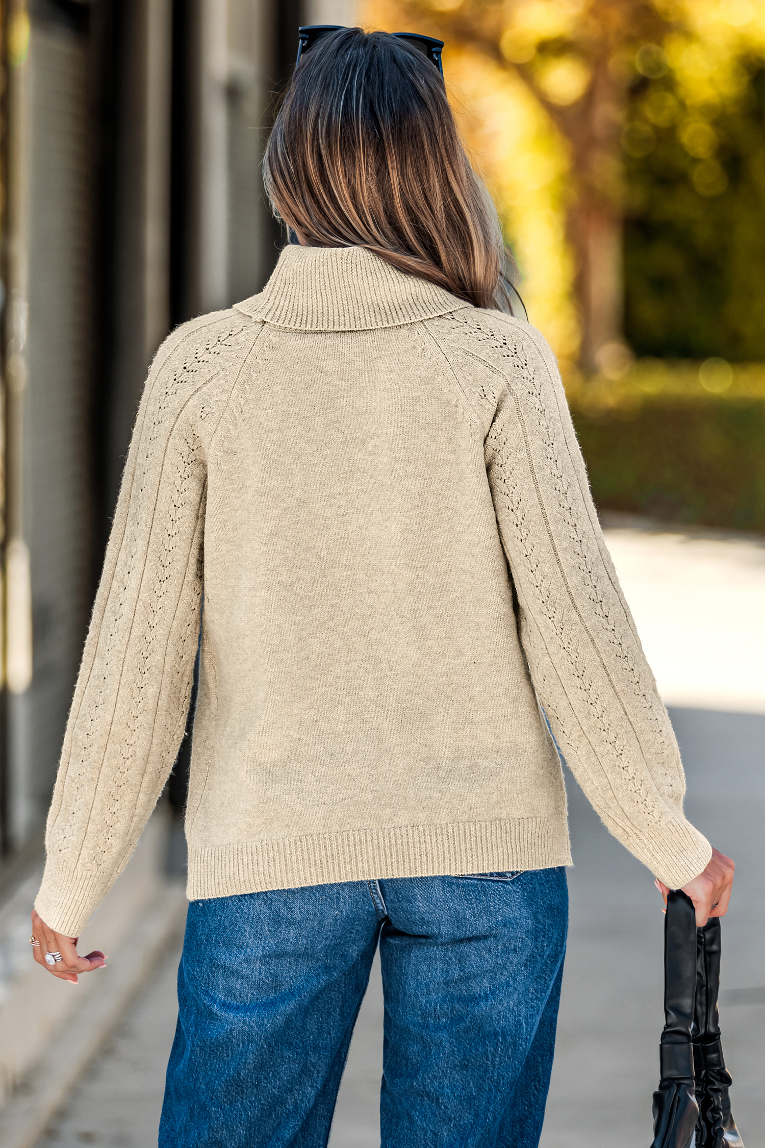 Il maglione beige So Worth It è il tuo nuovo capo preferito per un look caldo e sicuro! Il collo alto e le maniche lunghe lo rendono chic e disinvolto, mantenendoti al caldo e alla moda.