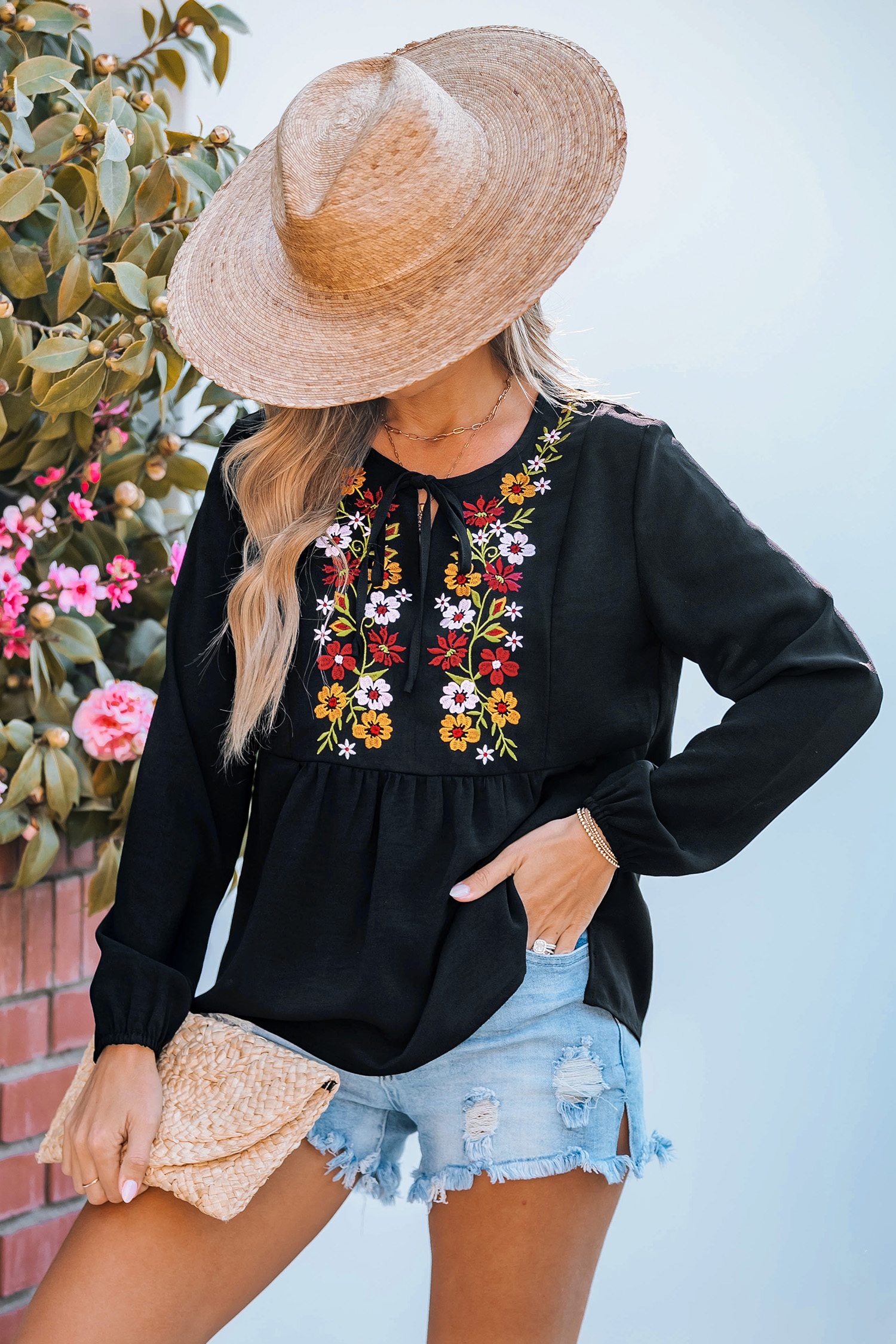 Top a maniche lunghe con ricamo Spring Blossom
