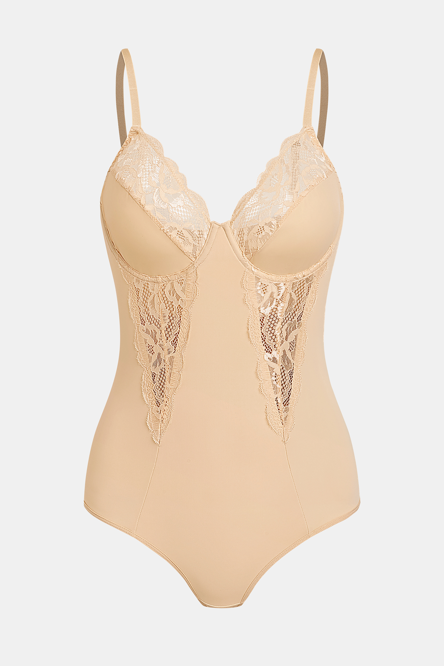 Il body modellante Stay Put Neutral Shapewear mantiene la tua forma impeccabile per tutto il giorno! Dotato di spalline regolabili, ferretto e supporto push-up, offre un effetto modellante con una leggera compressione per una vestibilità morbida e sicura.