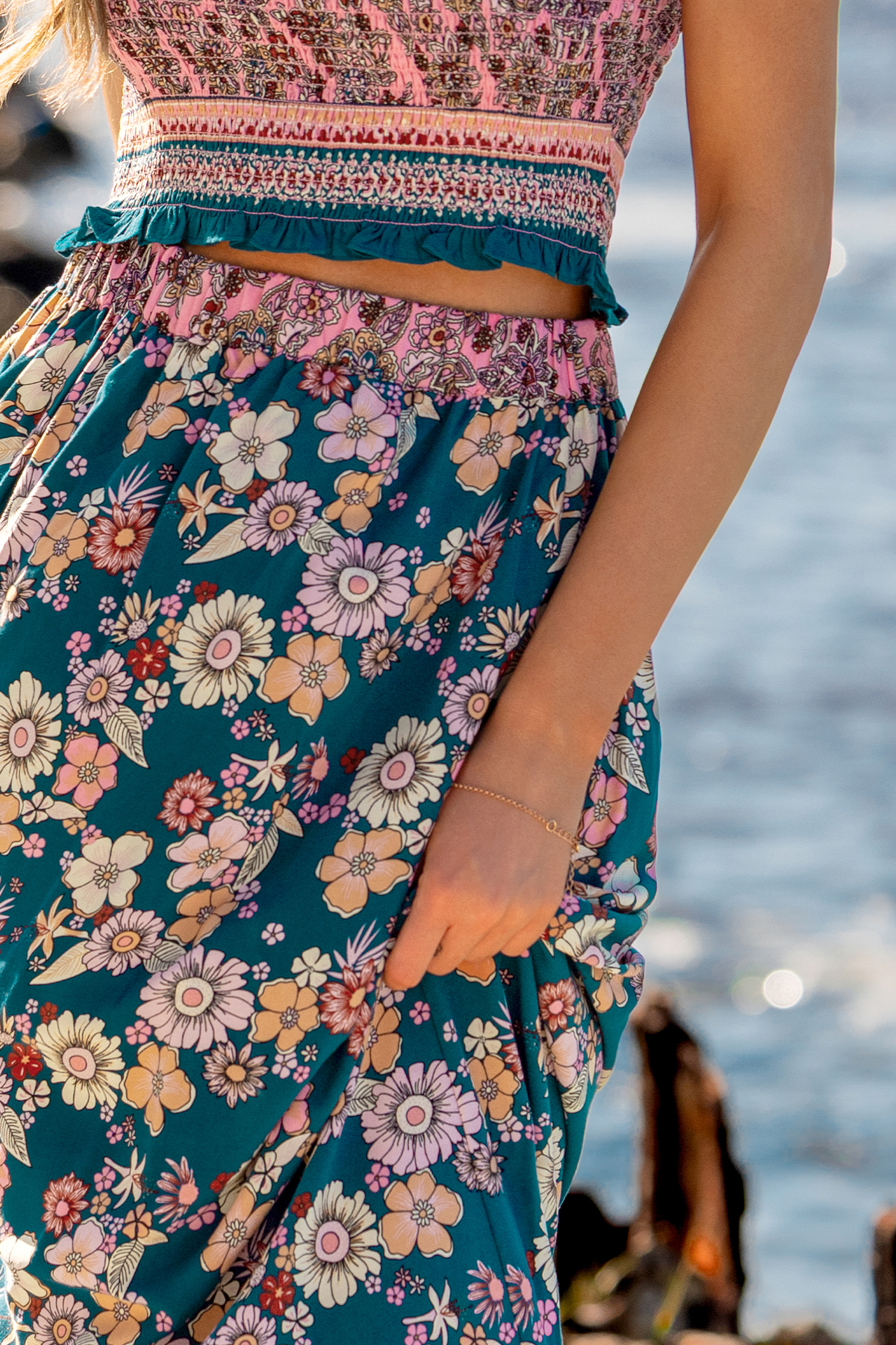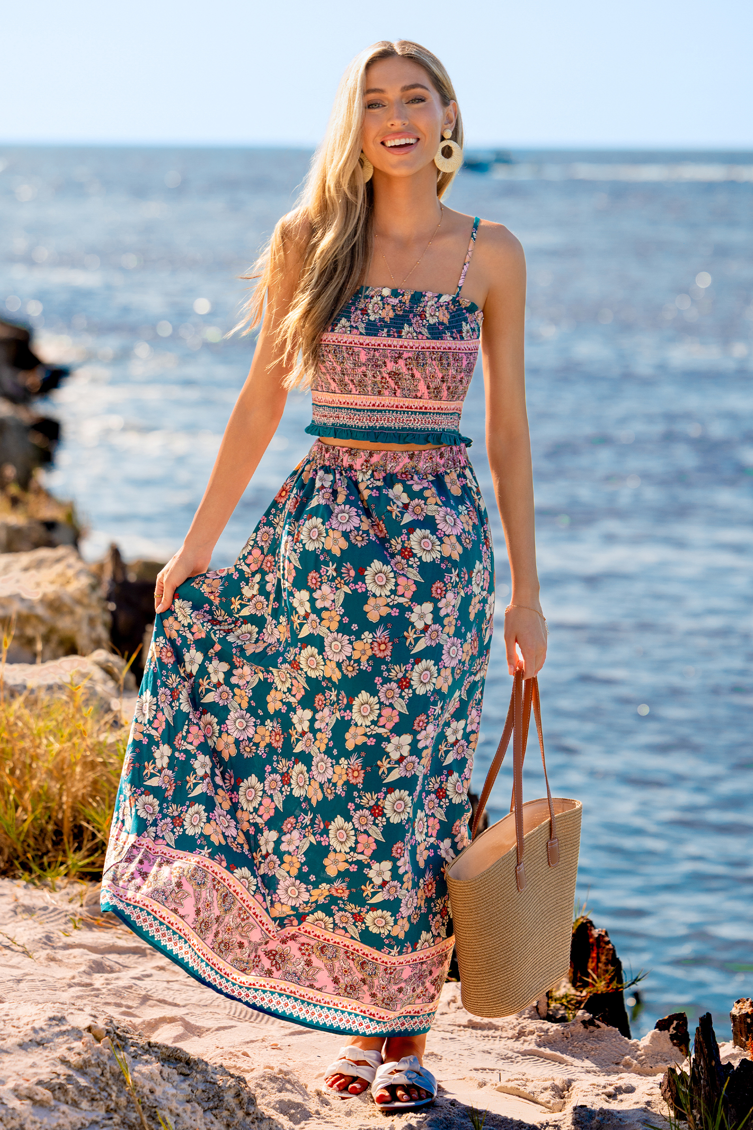 Fresca e ariosa, con un tocco di concretezza, la gonna lunga floreale Stone & Sky è perfetta per un look semplice e disinvolto! Elastico in vita e lunghezza fluida si uniscono per un look naturalmente arioso, perfetto per qualsiasi momento di sole.