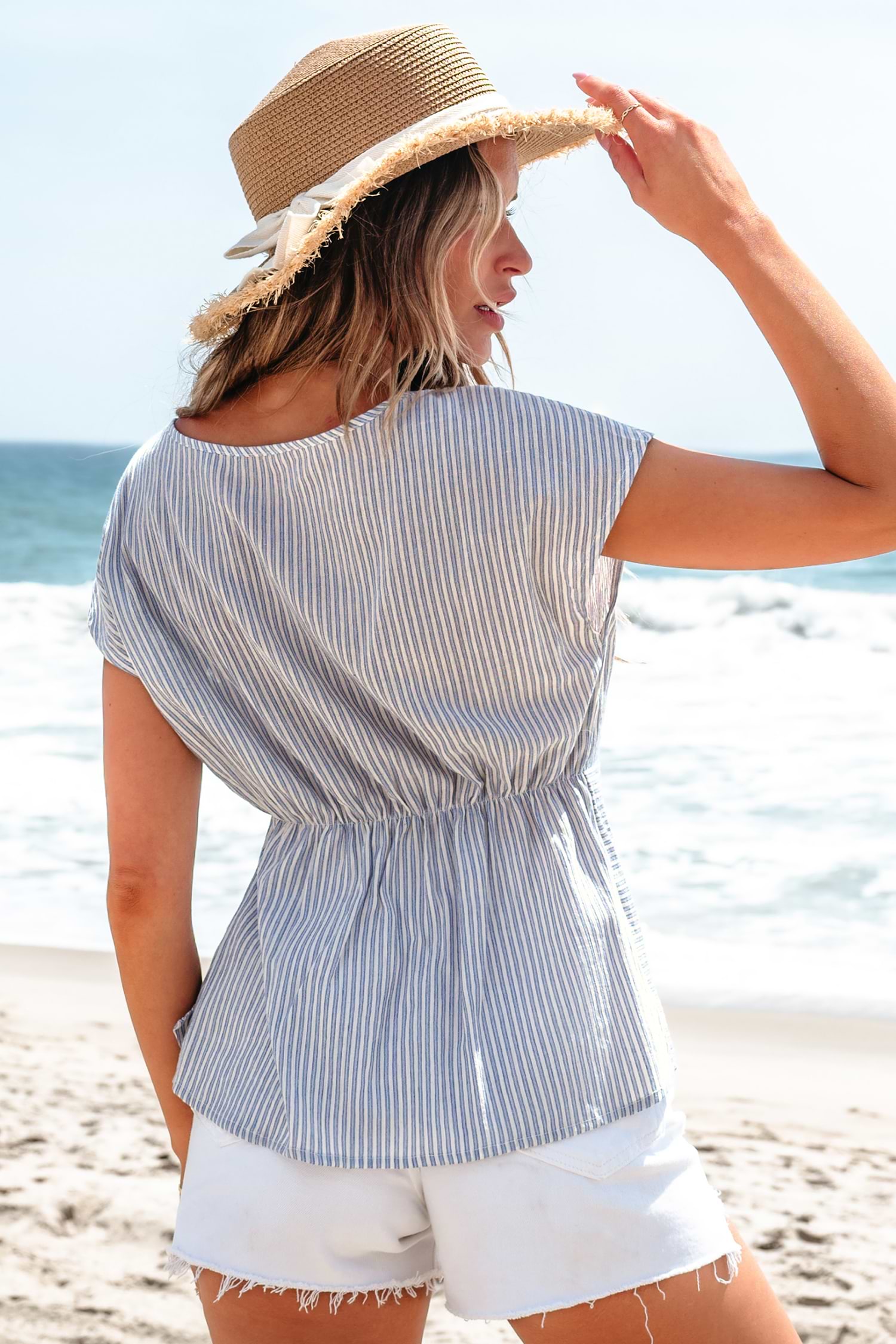 T-shirt twist a maniche corte in cotone a righe con scollo tondo
