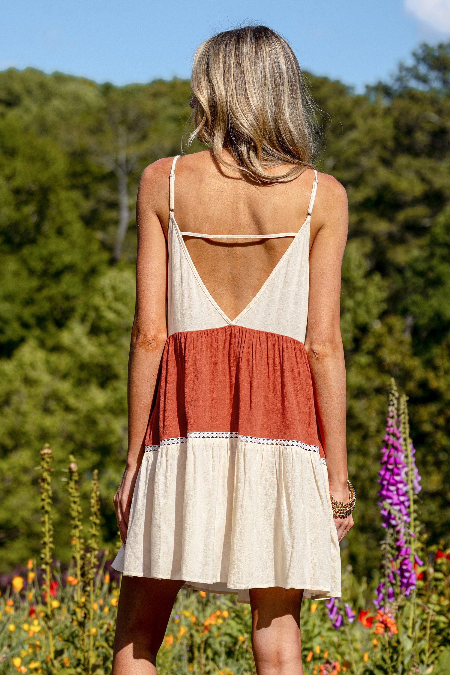 Mini abito color block a strati al tramonto